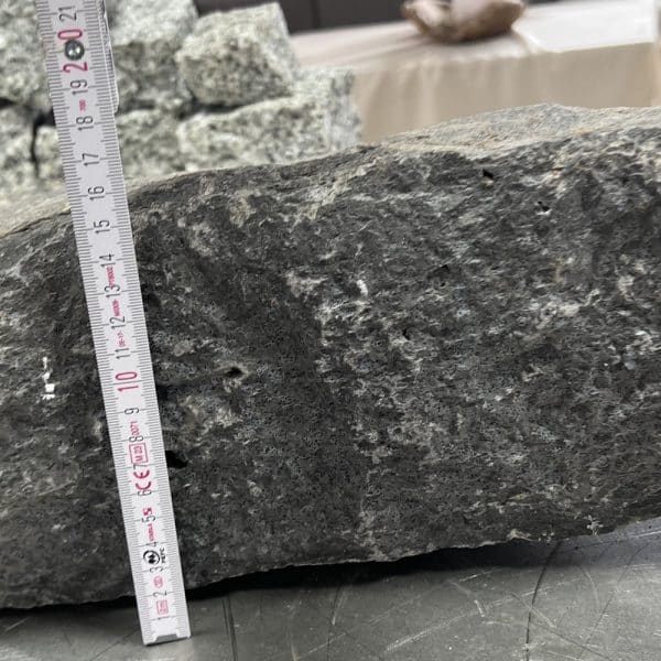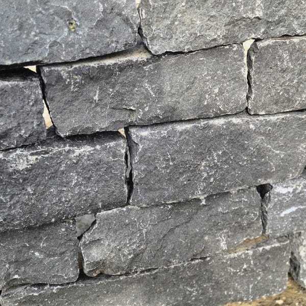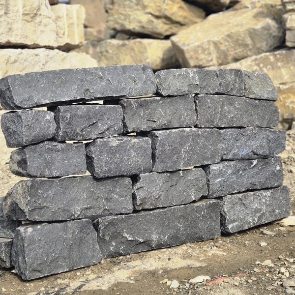 Dieser handgespaltene kleine Basalt Quader lässt sich mit seinen handlichen Gewichten einfach zu einem ansehnlichen Schichtmauerwerk setzen.
