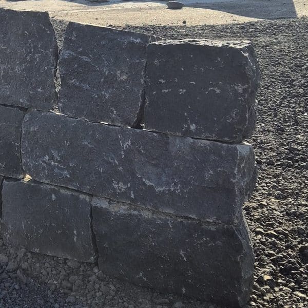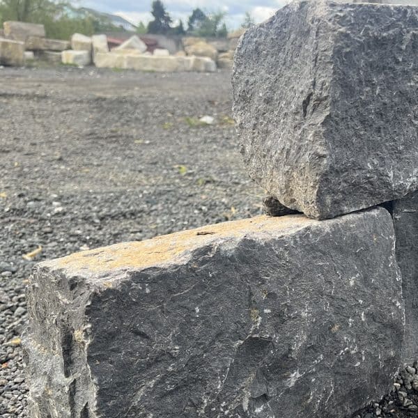 Dieser Naturstein Basalt Mauerstein wird in der Regel gekippt oder als Paletten-Ware geliefert.