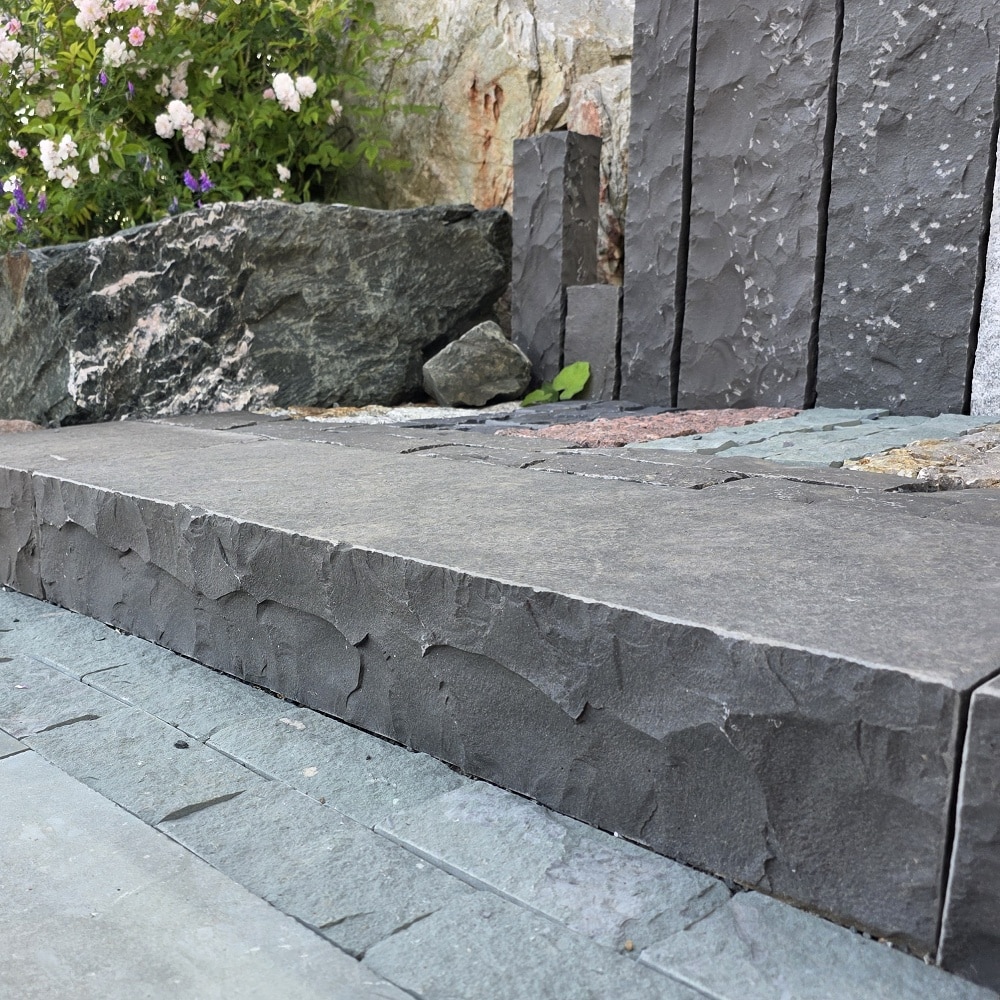 Basalt anthrazit Naturstein Blockstufe schwarz 100
