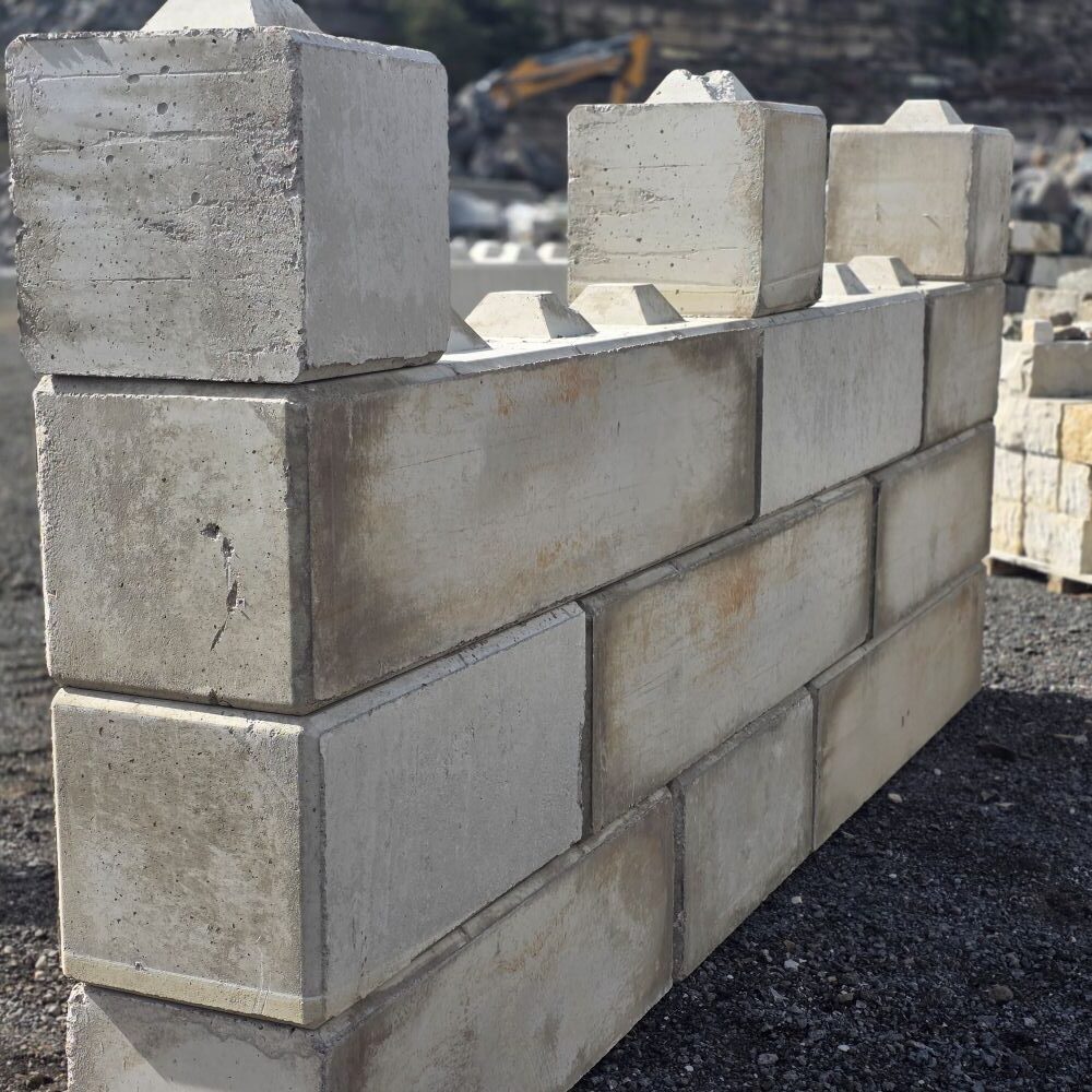 Die Kombination mit 80 cm x 40 cm großen Steinen eignet sich ideal für höhere Mauern, die wenig Last tragen – z. B. bei Schüttboxen, Sichtschutz oder leichten Abtrennungen.