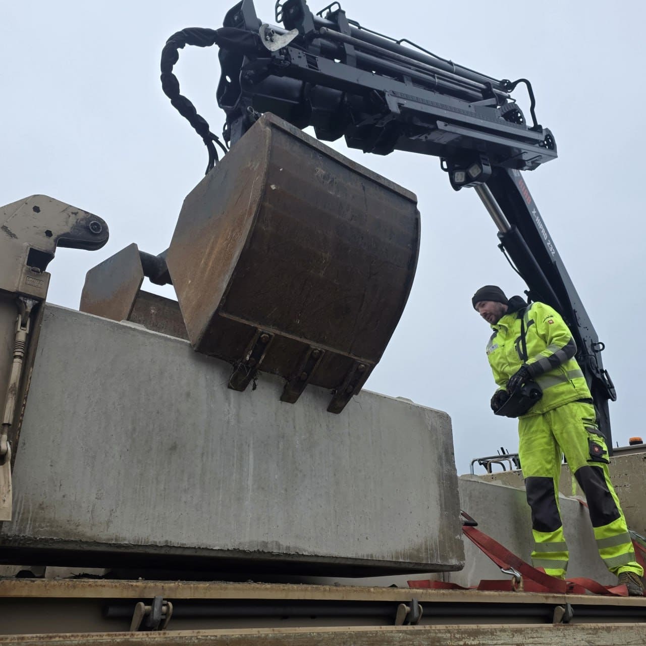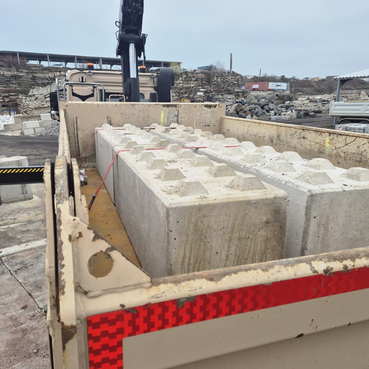 Für den Transport und die Montage bieten wir passende Hebevorrichtungen an. Gegen Aufpreis können wir die Steine mit Aussparungen für Gabelstaplerzinken oder Radladergabeln fertigen.