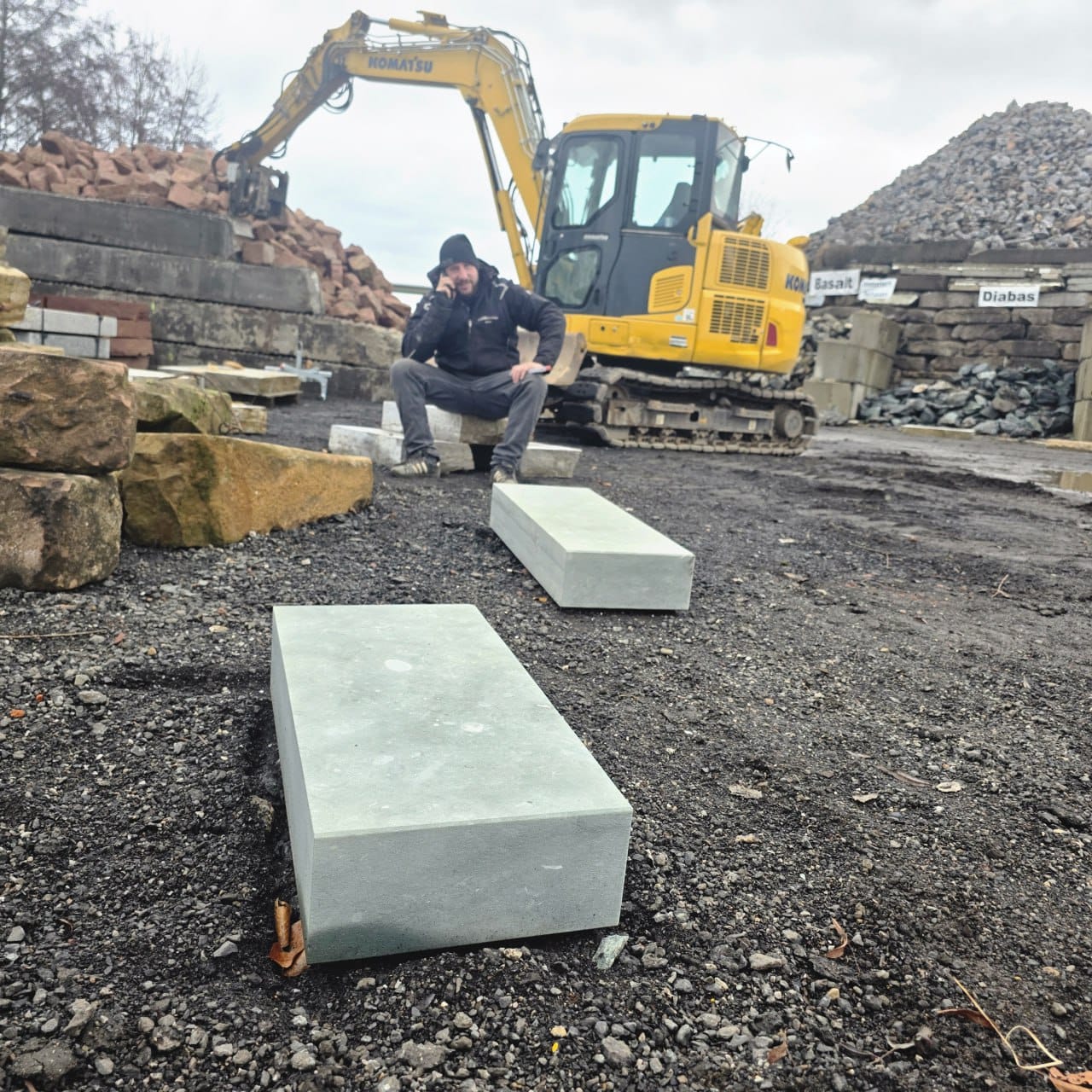 Passend zu den Steinstufen erhalten Sie bei uns auch Terrassenplatten, Mauersteine, Pflastersteine und Natursteinquader aus dem gleichen Material.