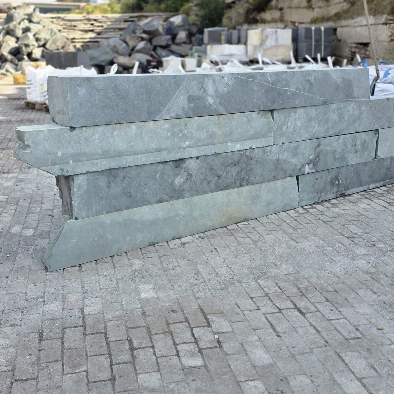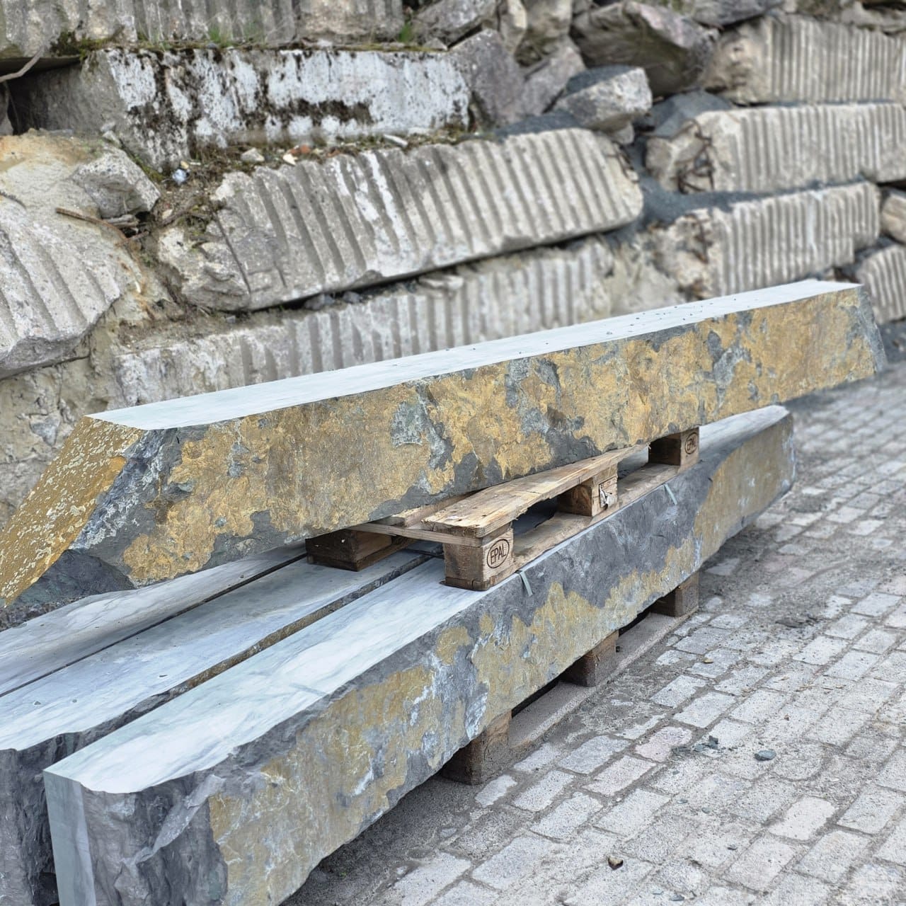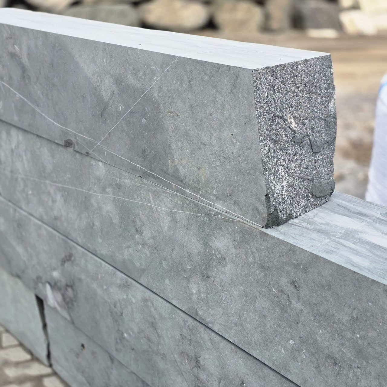 Sie sind an Ober und Unterseite sauber geschnitten und lassen sich so einfach aufeinander Schichten. Durch ihre Längen von einem bis zu drei Meter lassen sich diese besonderen Steinquader besonders einfach zu einem wunderbaren Mauerverbund aufschichten. Große Versätze bringen Leben und Stabilität in Ihre Natursteinmauer.