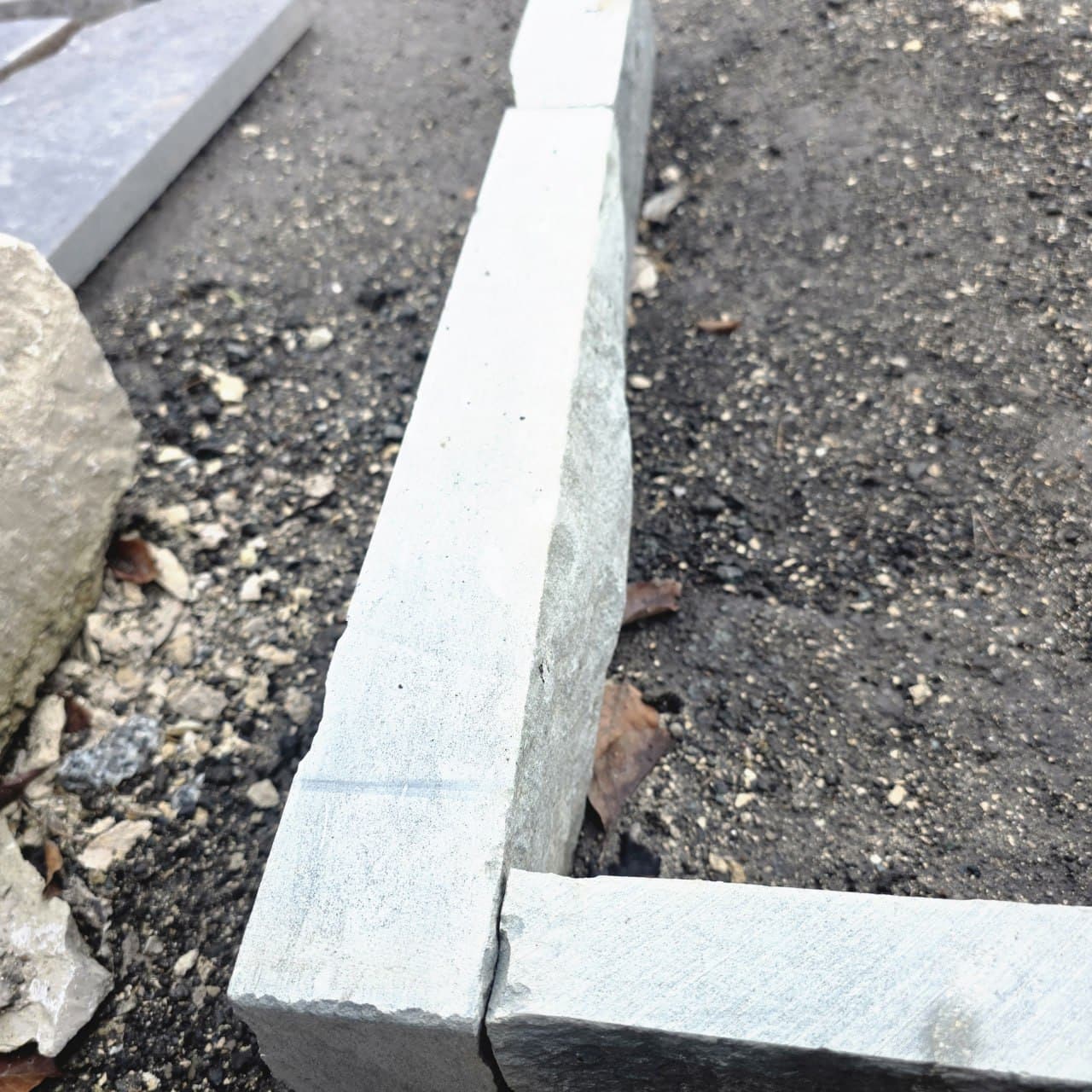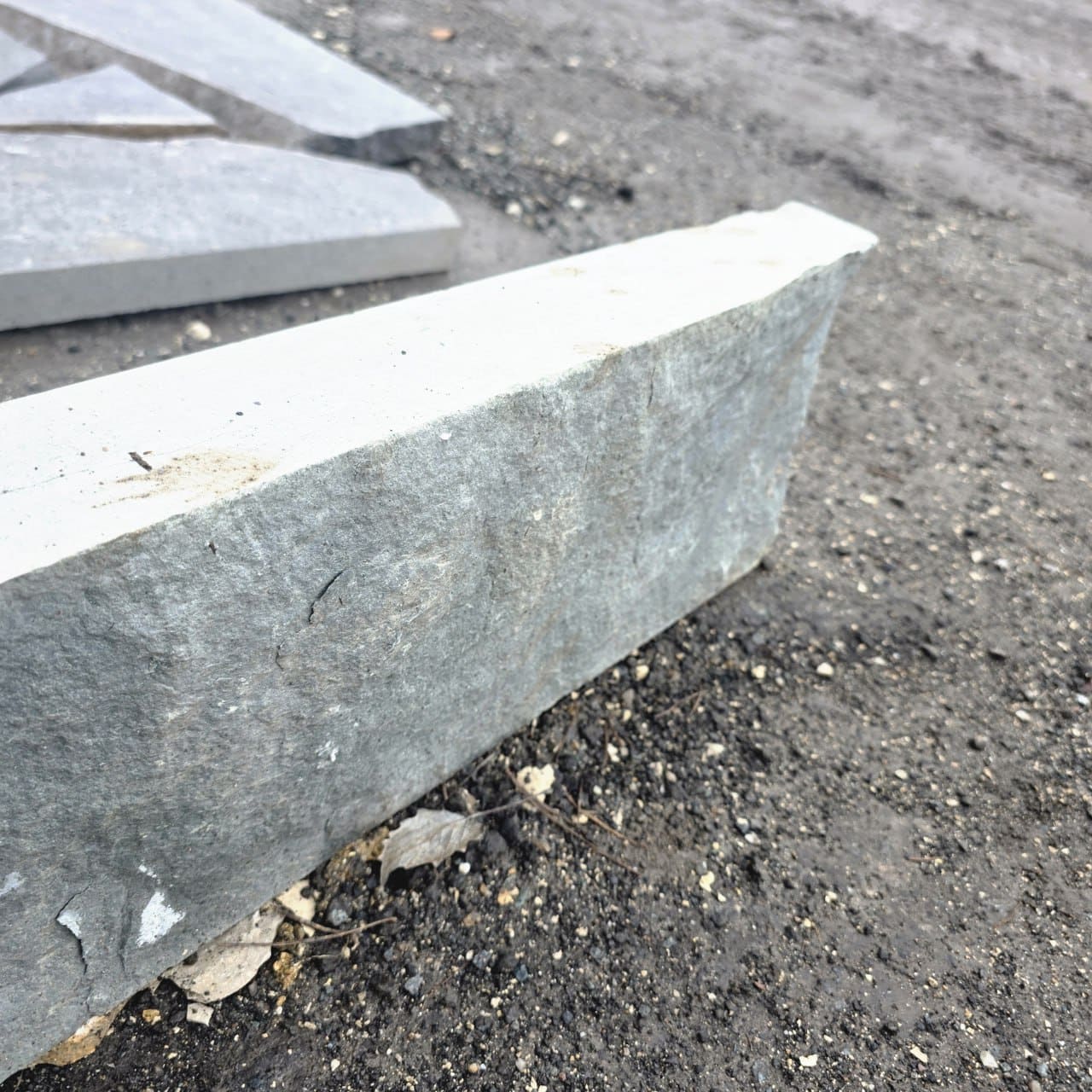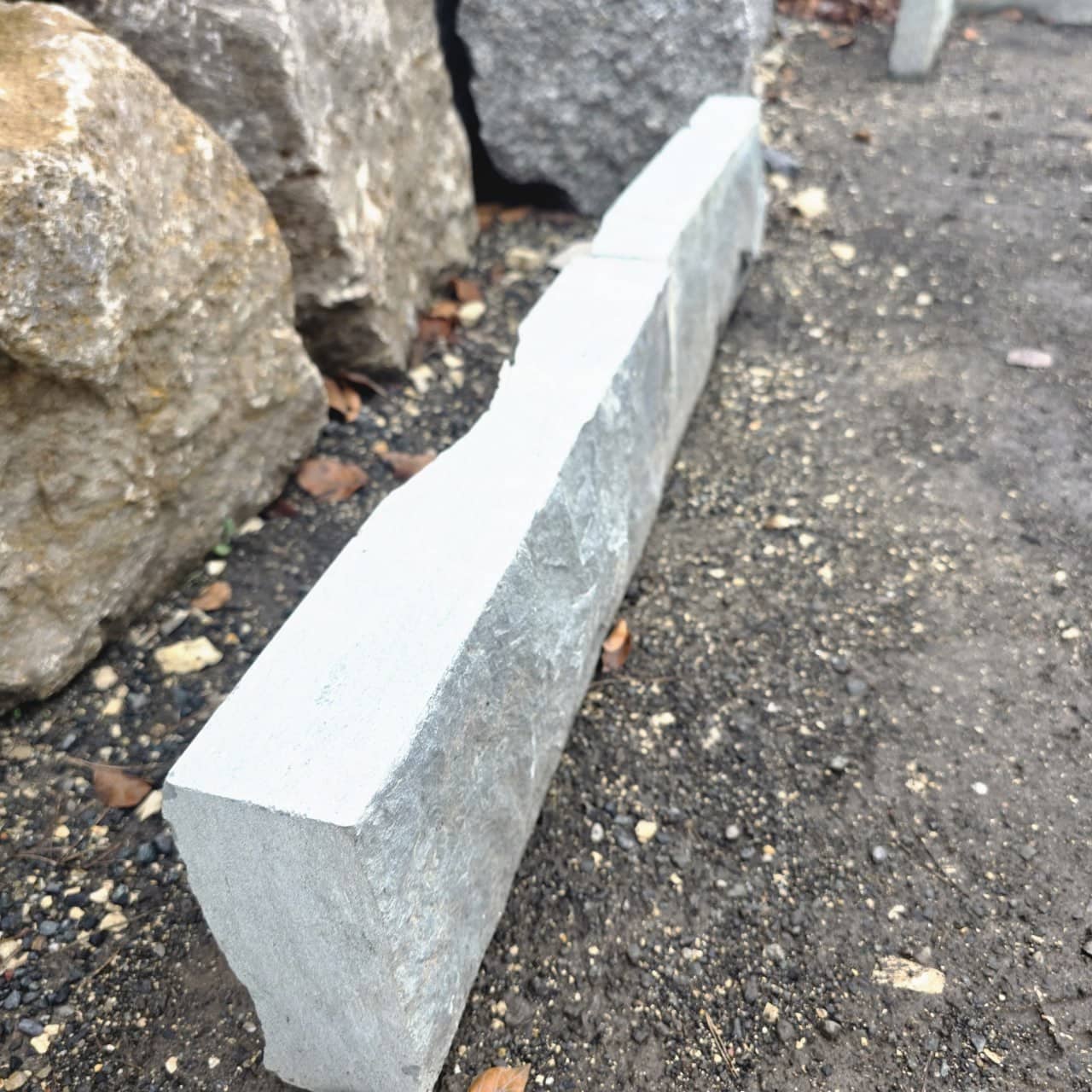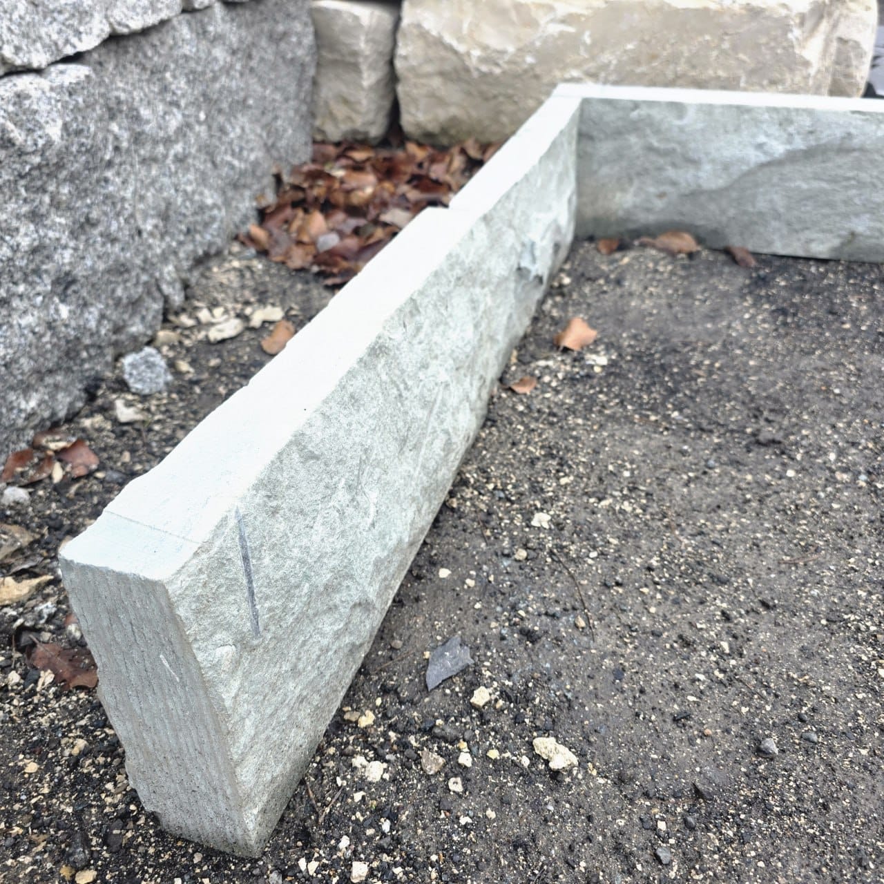 Diese grün-grauen Naturrandsteine sind eine ideale Einfassung für Rasenflächen, Laufwege oder Pflasterflächen. Auch Flächen mit wassergebundener Wegedecke oder Pflanzbereiche lassen sich bestens mit diesem modernen Stein umranden.