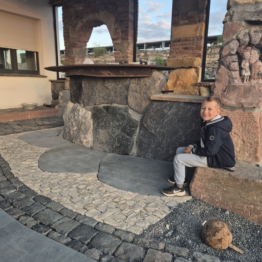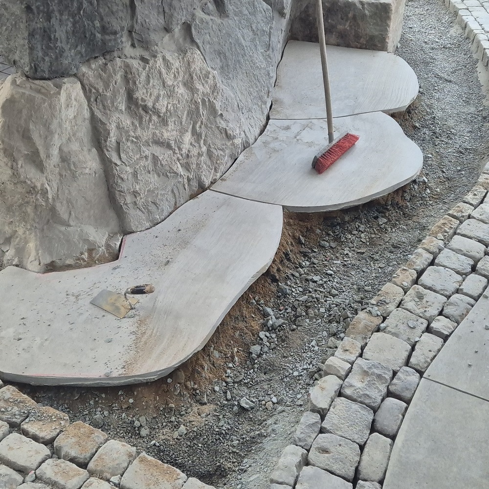 Die Reinigung der Natursteinflächen ist unkompliziert. Säubern Sie die Flächen einfach mit Wasser und Besen.