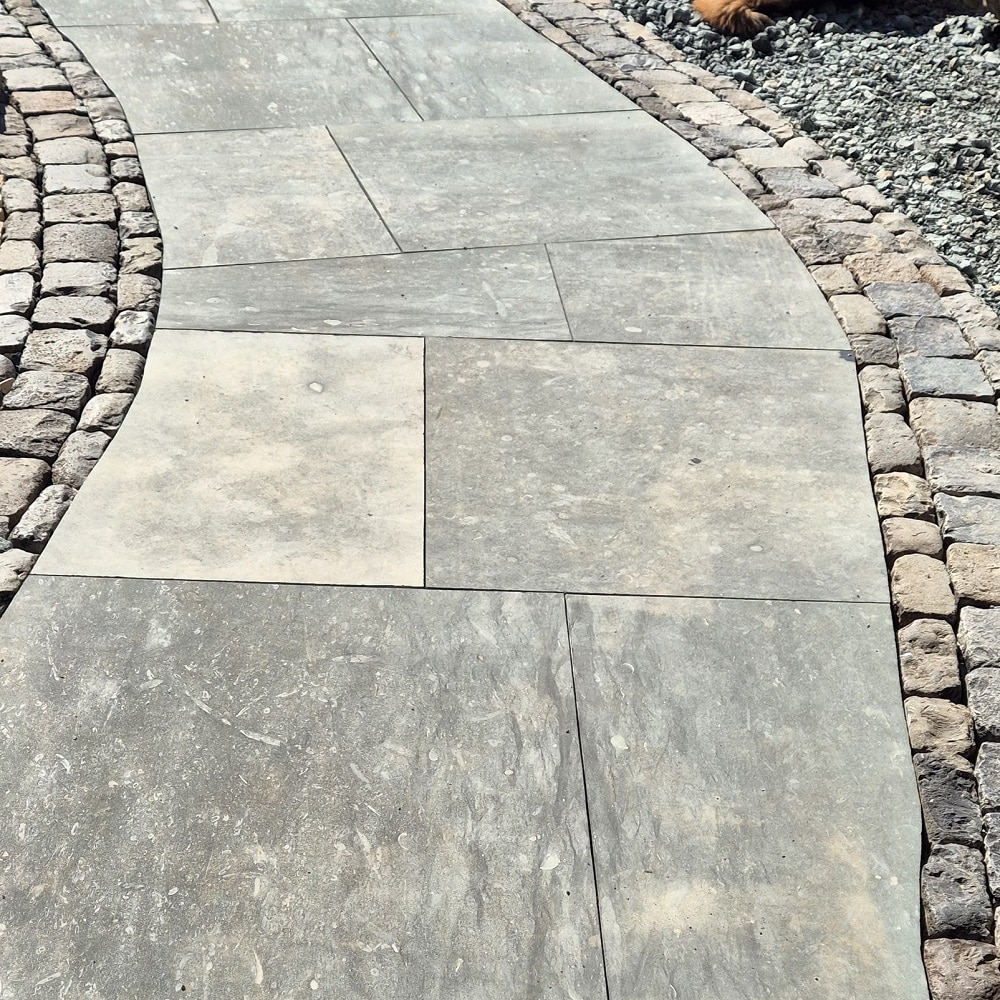 Beim Verbauen der Dolomit Polygonalplatten entstehen so wundervolle, lebendige Bodenflächen, die gleichzeitig mit Ihrer Trittsicherheit überzeugen.