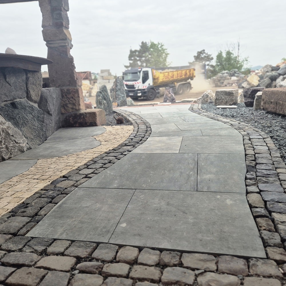 Kommen Sie gern bei uns vorbei und schauen sich die Tollen Steinplatten in Natura an. Neben Sofort Lieferbarer Verkaufsware haben wir eine große Musterfläche für Sie parat.