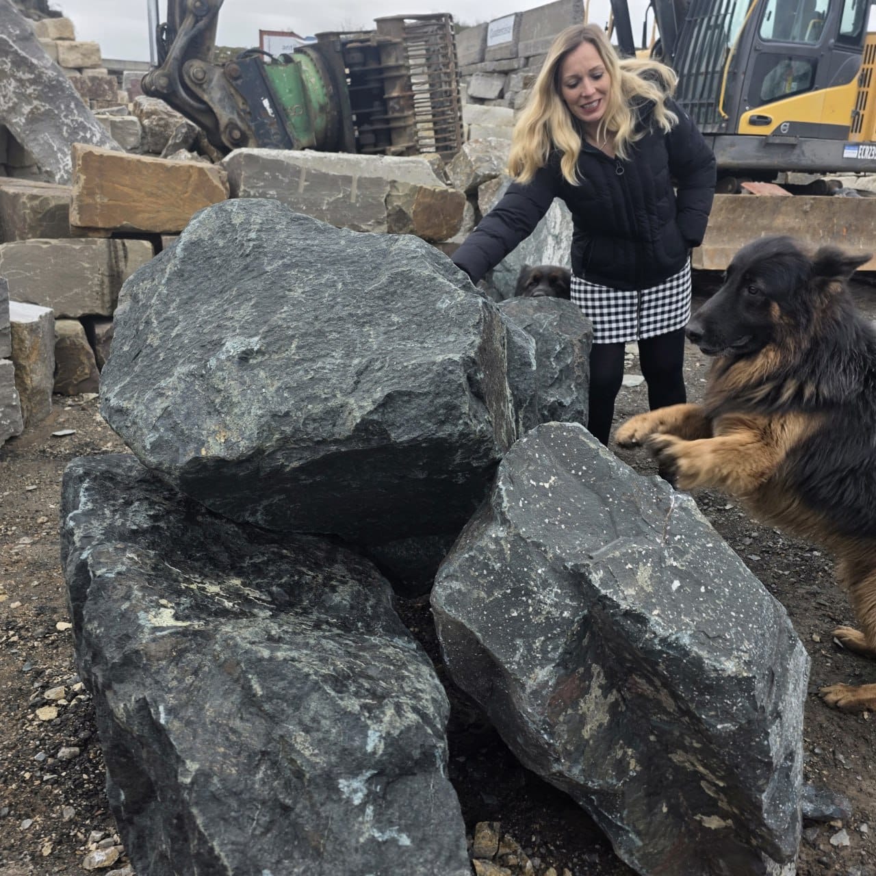 Selten sieht man so einen schönen dunklen Naturstein, das macht ihn bei unsren Kunden so interessant. Hier kann vielseitig mit den Bruchsteinen im Außenbereich gearbeitet werden.