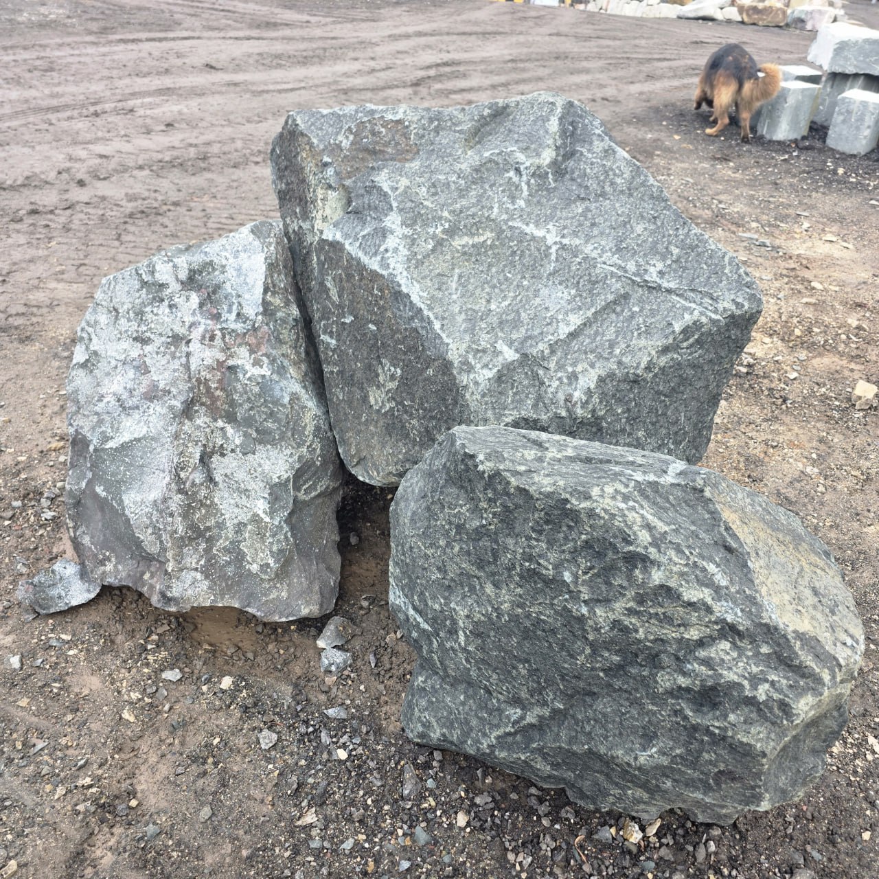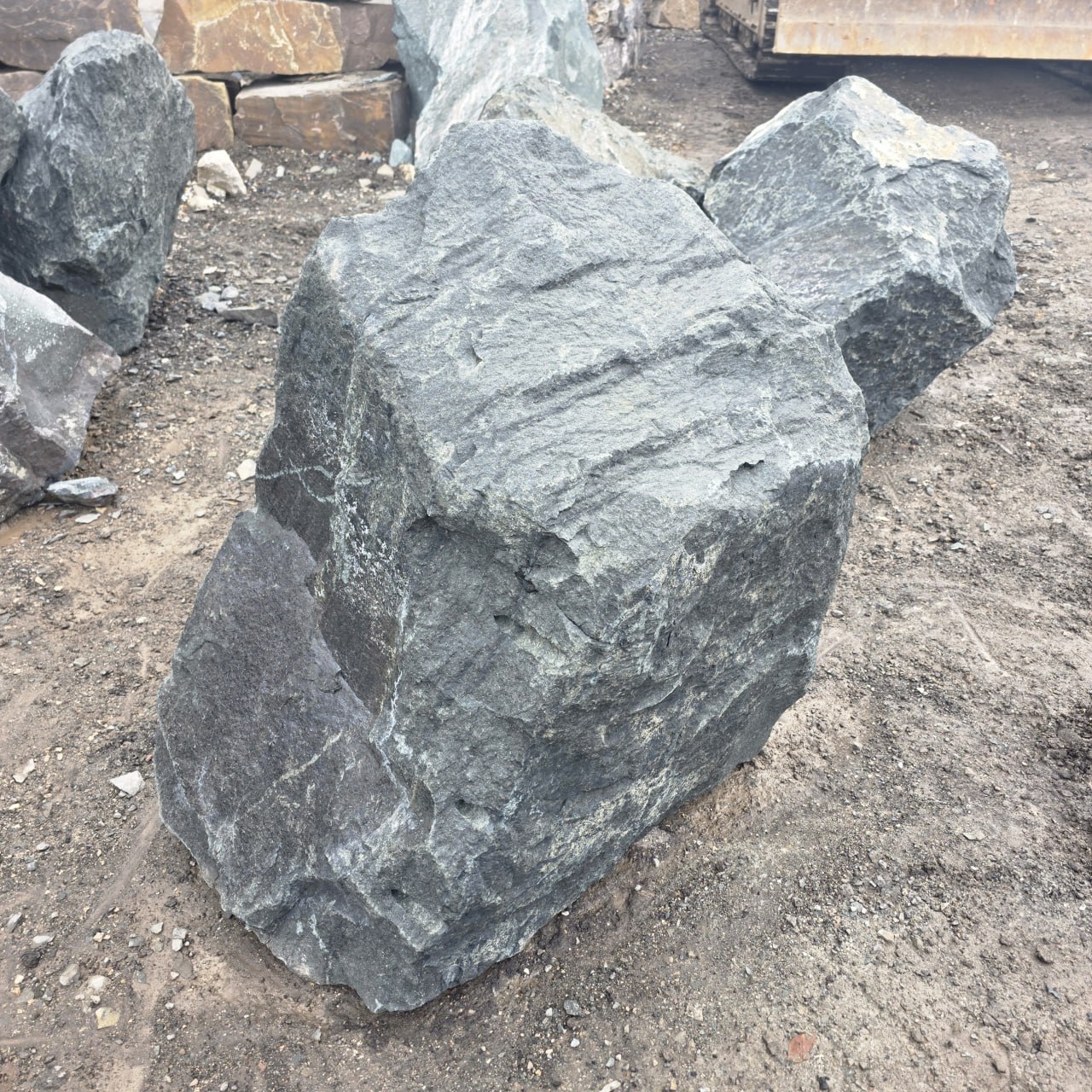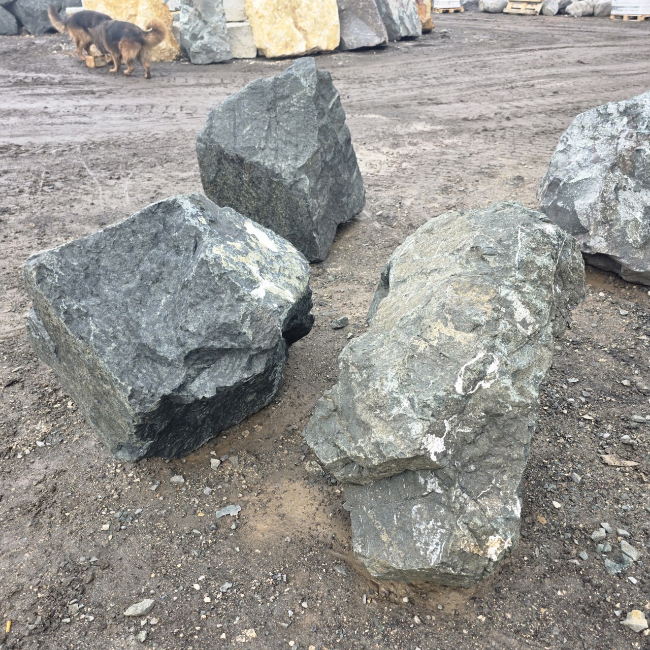Beim Abkippen können allerdings Ecken abbrechen und die Steine ​​beschädigt werden. Dabei sollten Sie beachten, dass dieser tolle Findling bis er auf Ihrer Baustelle ankommt schon mindestens drei Mal mit Geräten wie Baggern oder großen Radladern aufgeladen und anschließend wieder abgekippt wurde.