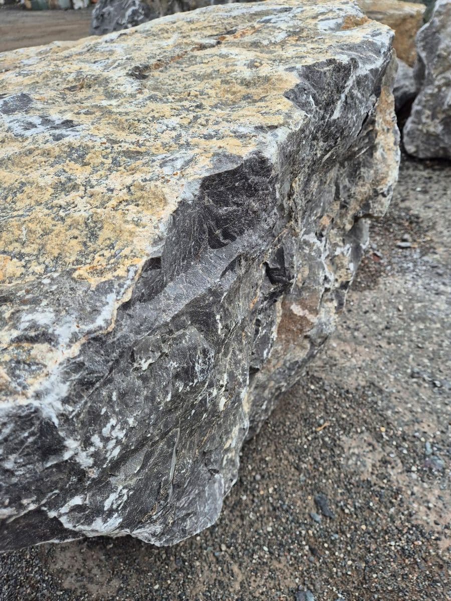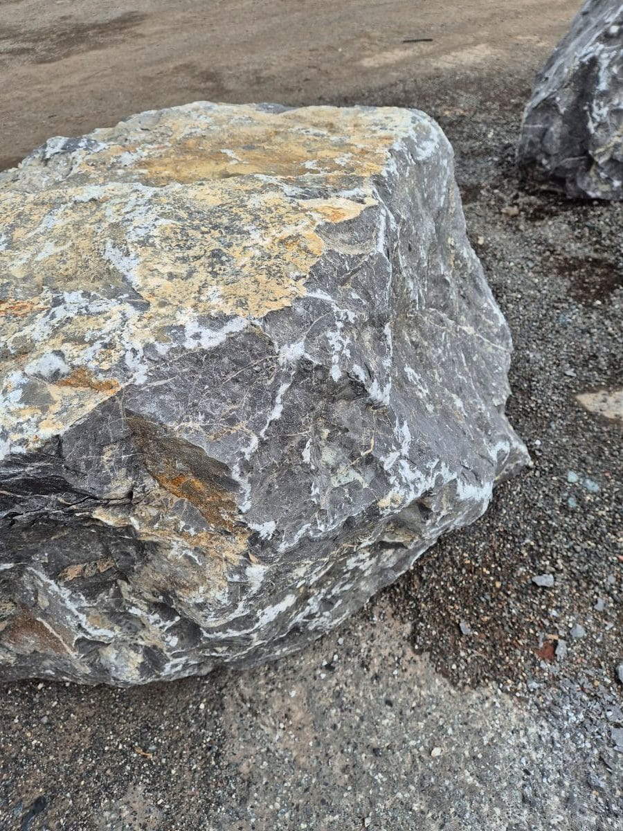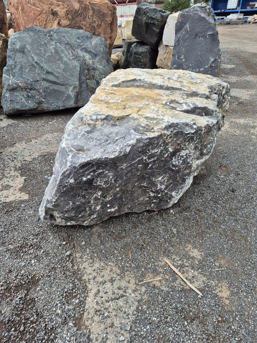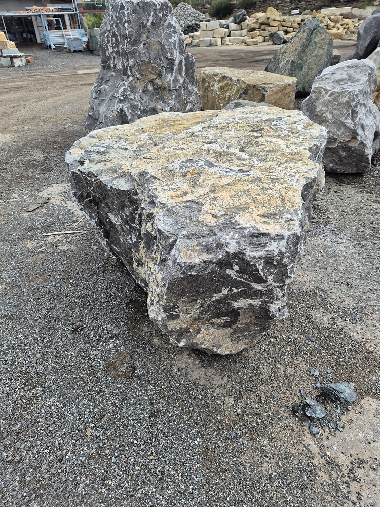 Der schicke Sitzstein ist ein markanter Kalksteinblock, der wirkt, als hätte ihn ein Gletscher persönlich vor Ihrer Haustür abgelegt. Die grau-beigen Strukturen, die kantige Form und die rauen Bruchflächen verleihen ihm eine Ausstrahlung, die sofort an uralte Landschaften und geologische Kräfte erinnert.