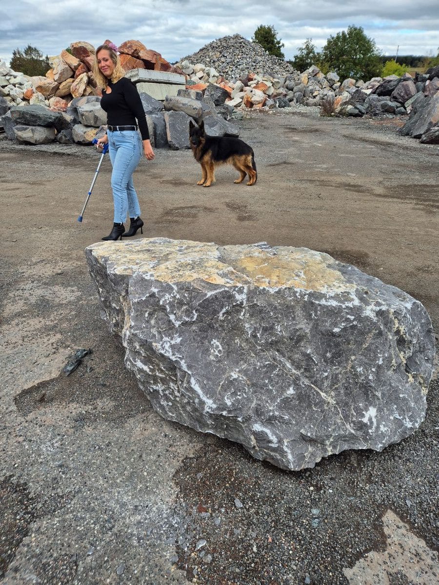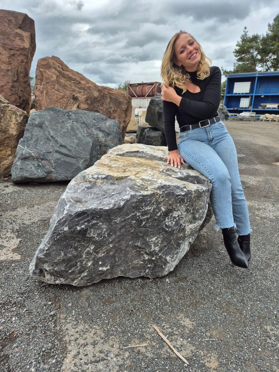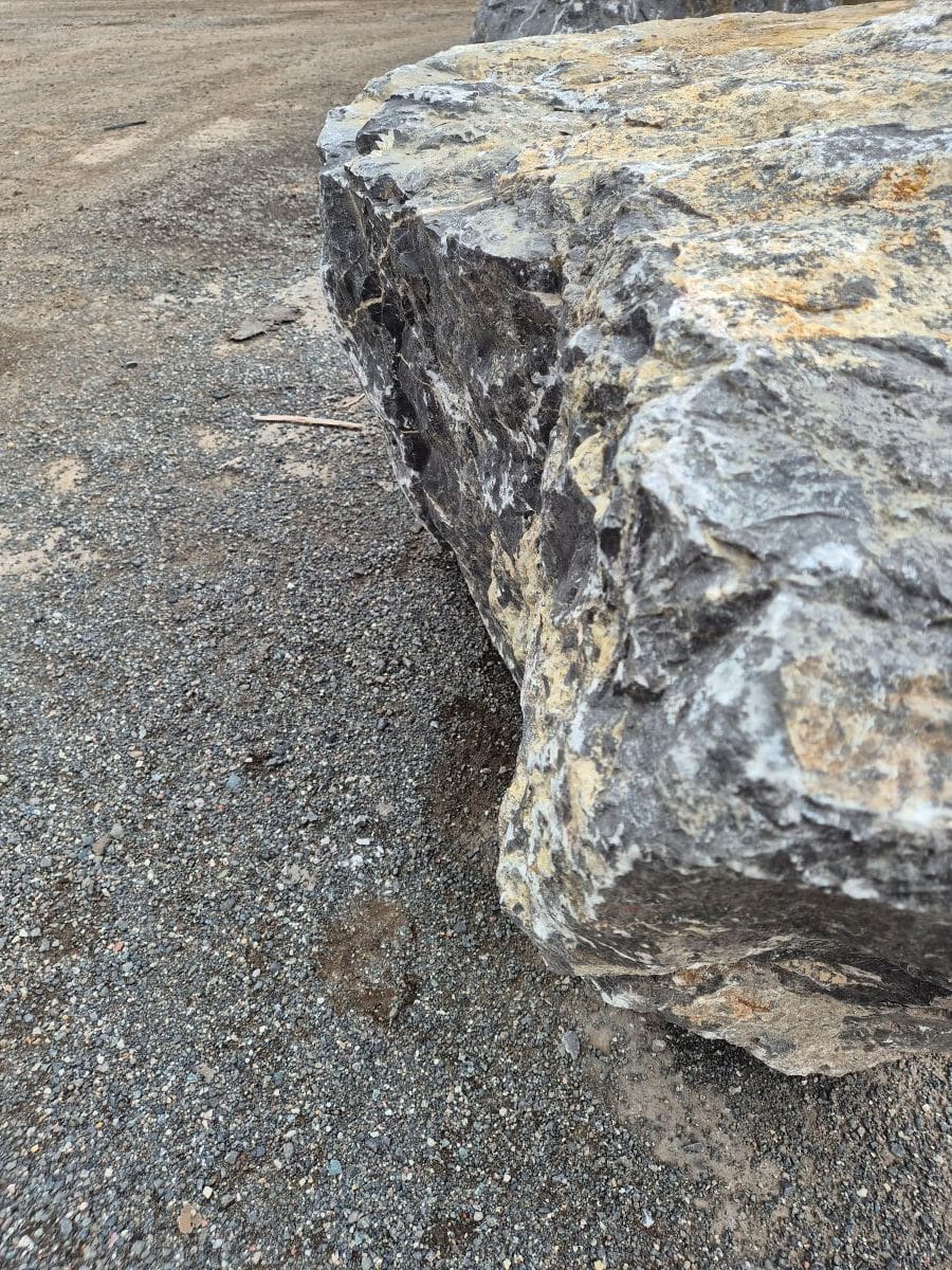 Der schicke Sitzstein ist ein markanter Kalksteinblock, der wirkt, als hätte ihn ein Gletscher persönlich vor Ihrer Haustür abgelegt. Die grau-beigen Strukturen, die kantige Form und die rauen Bruchflächen verleihen ihm eine Ausstrahlung, die sofort an uralte Landschaften und geologische Kräfte erinnert.