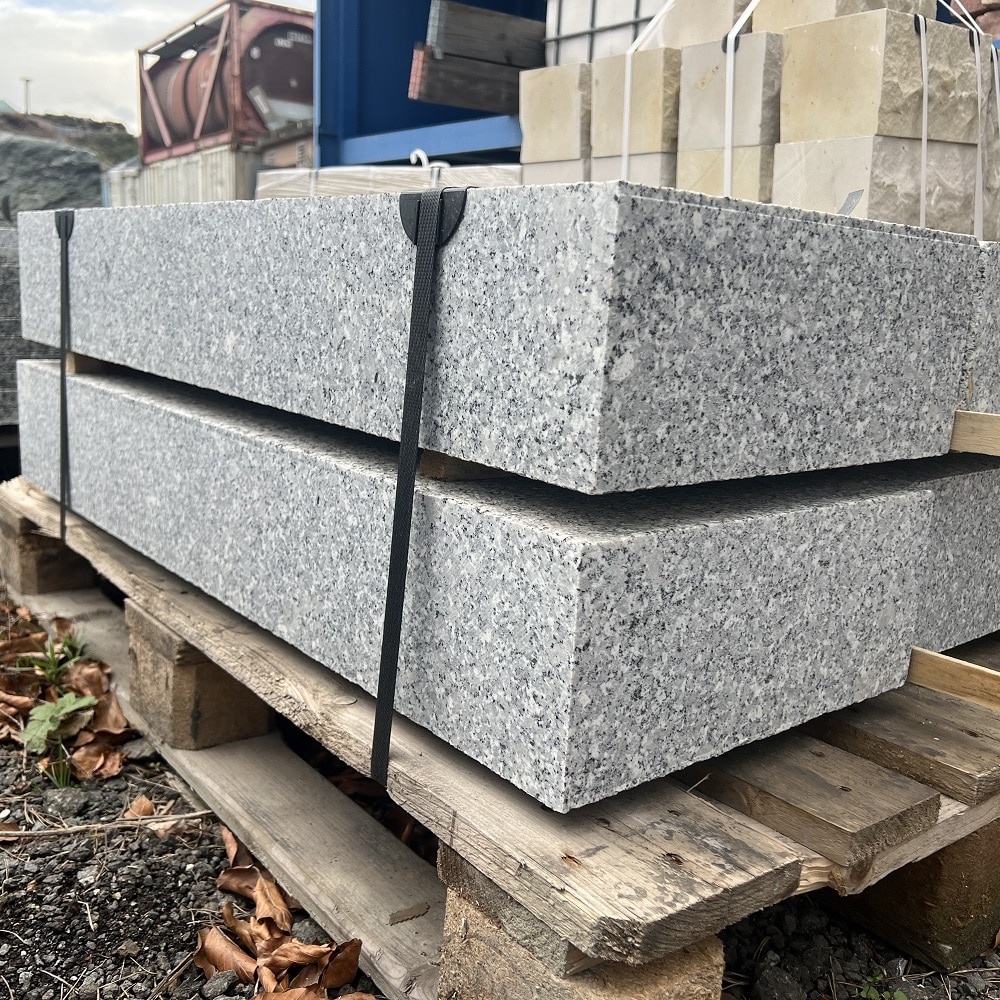 Granit grau Blockstufe 60 – 150 gesägt OF geflammt