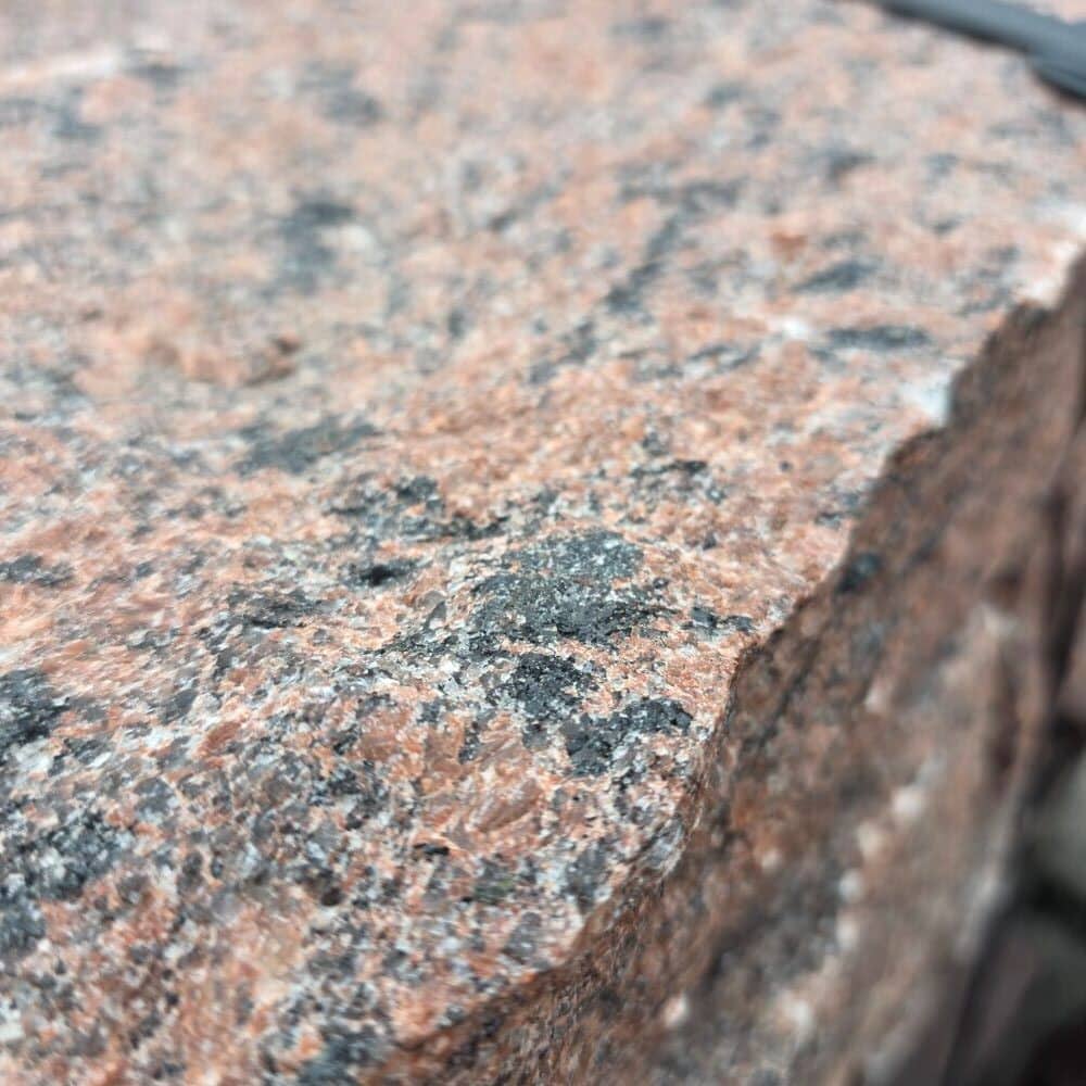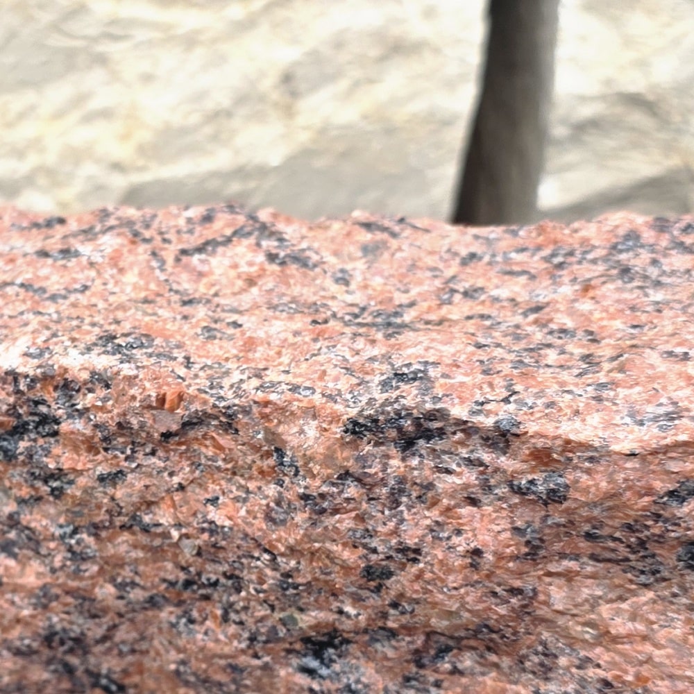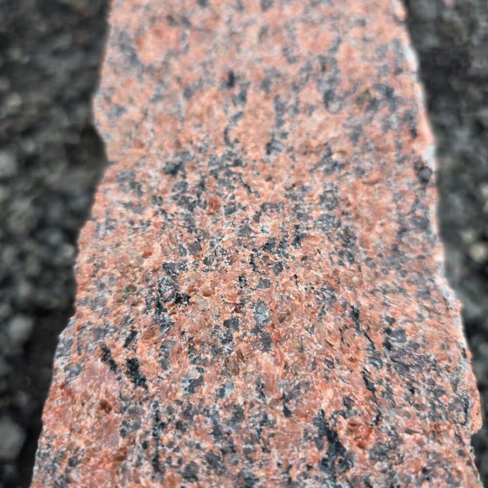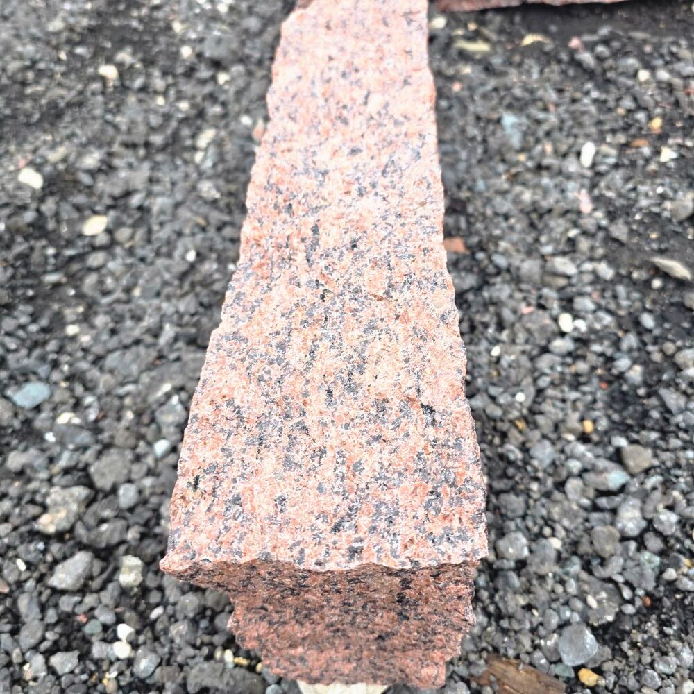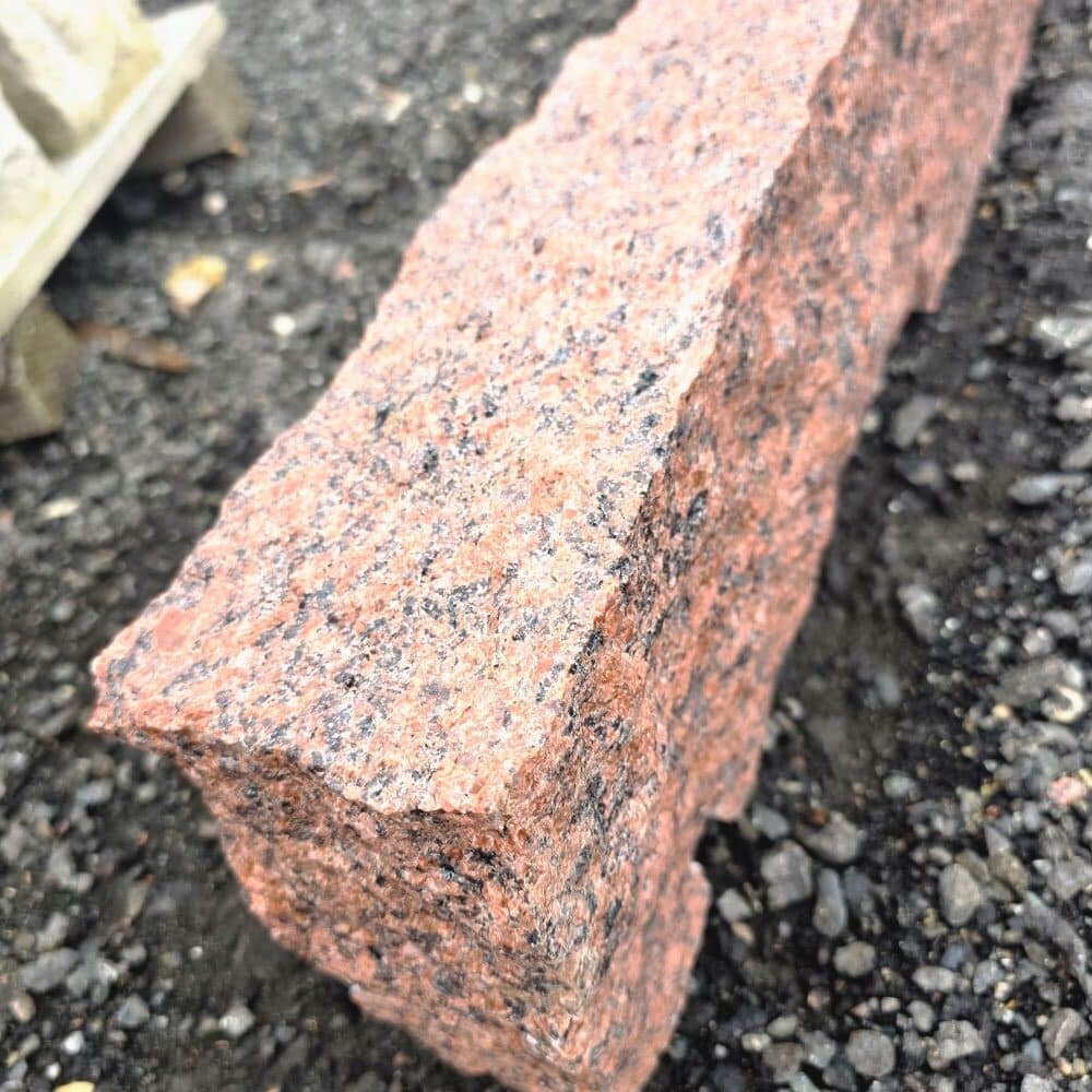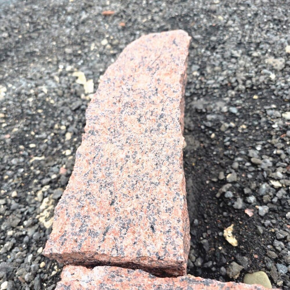 🪨 Dieser gespaltene Randstein aus dunkelrotem Granit ist etwas ganz Besonderes.