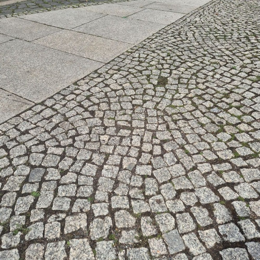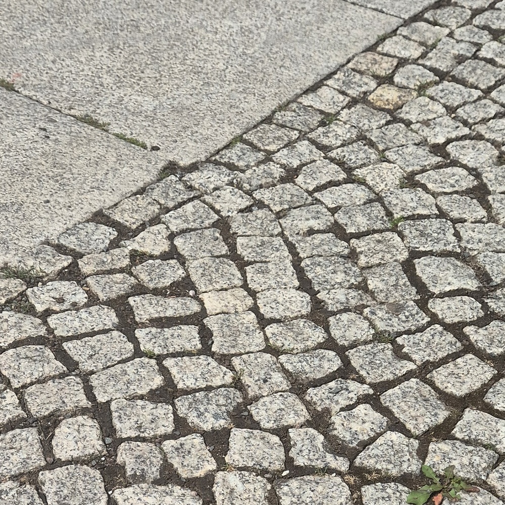 Abweichende Größe und Farbe von einzelnen Pflastersteinen.