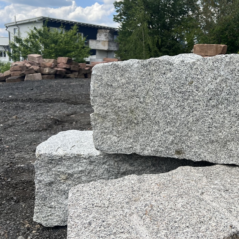 Im Umkreis von 50 bis 100 Km um unseren Standort in Langgöns werden diese kantigen Quadersteine in der Regel lose gekippt. Je nach benötigtem Gewicht und Abladestelle, bieten wir Ihnen das passende Fahrzeug an.