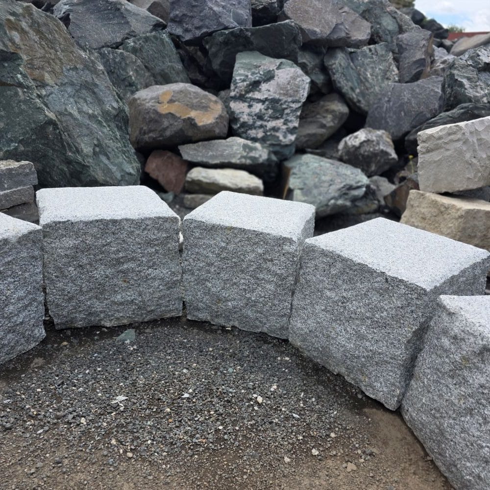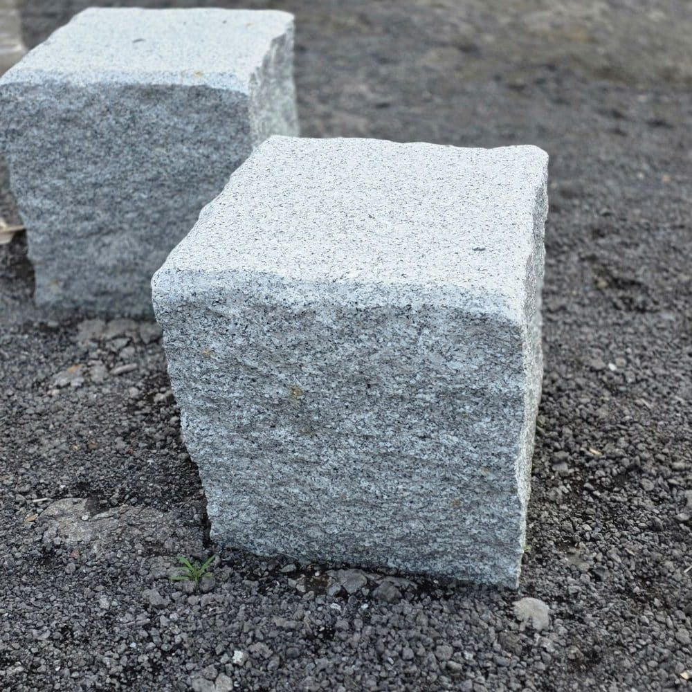 Granitwürfel grau 50 gesägt, gefaste K. gestrahlte OF