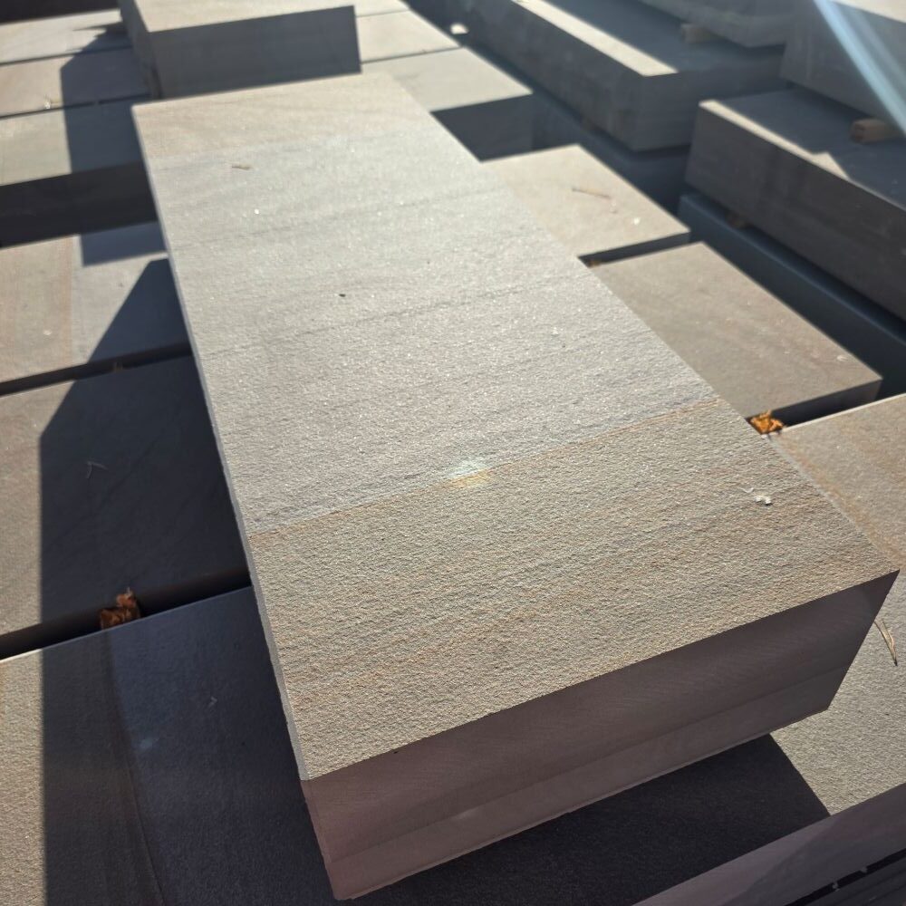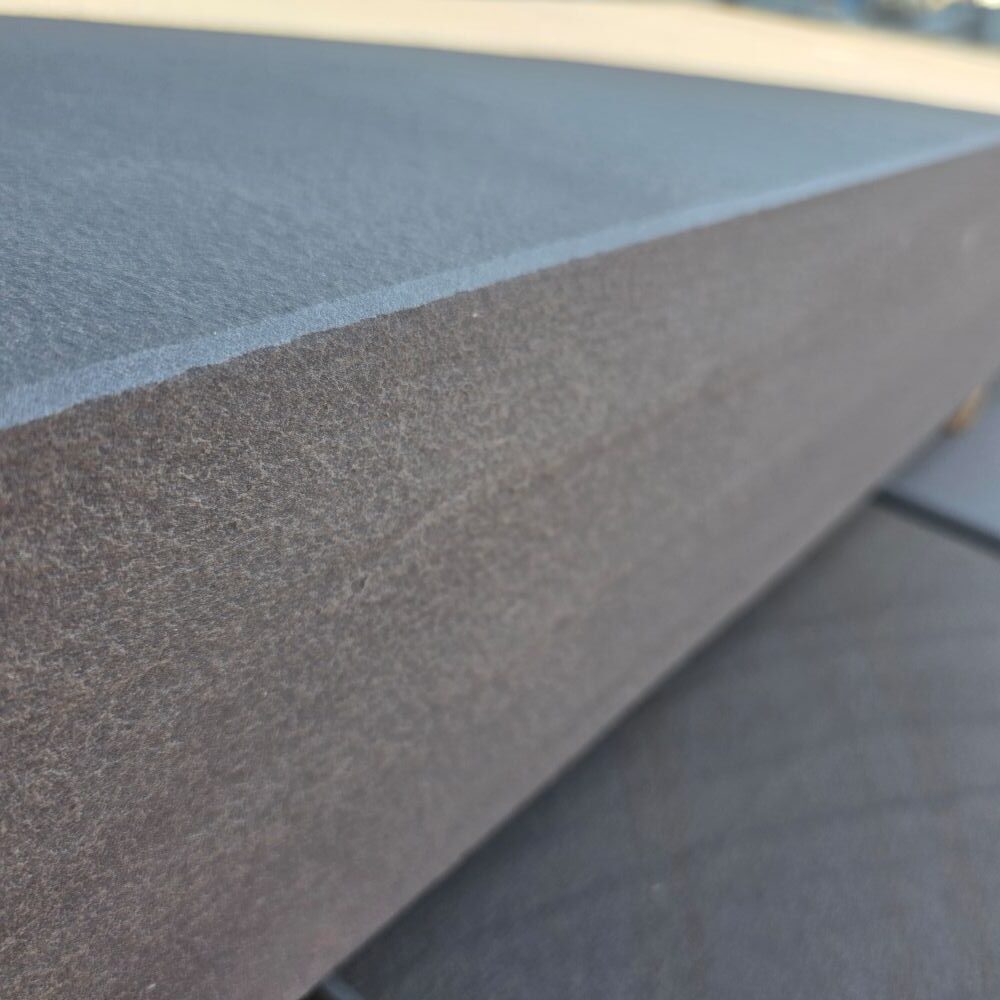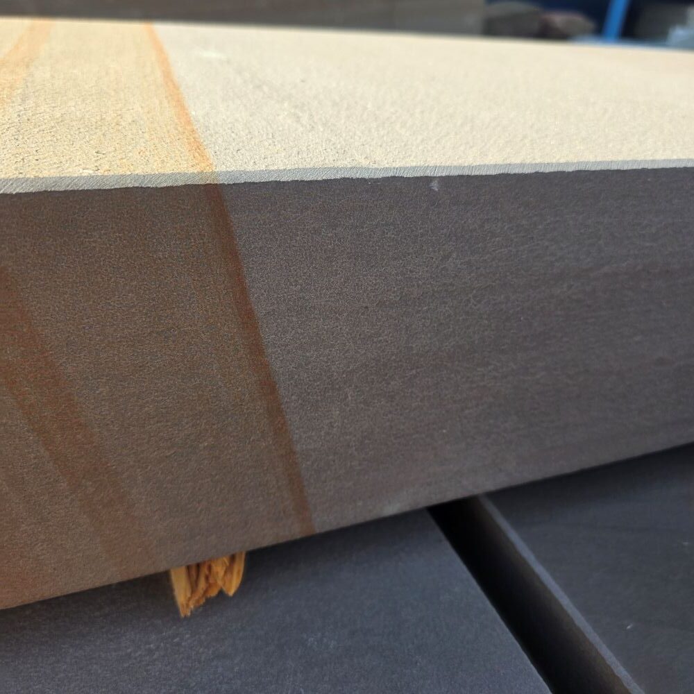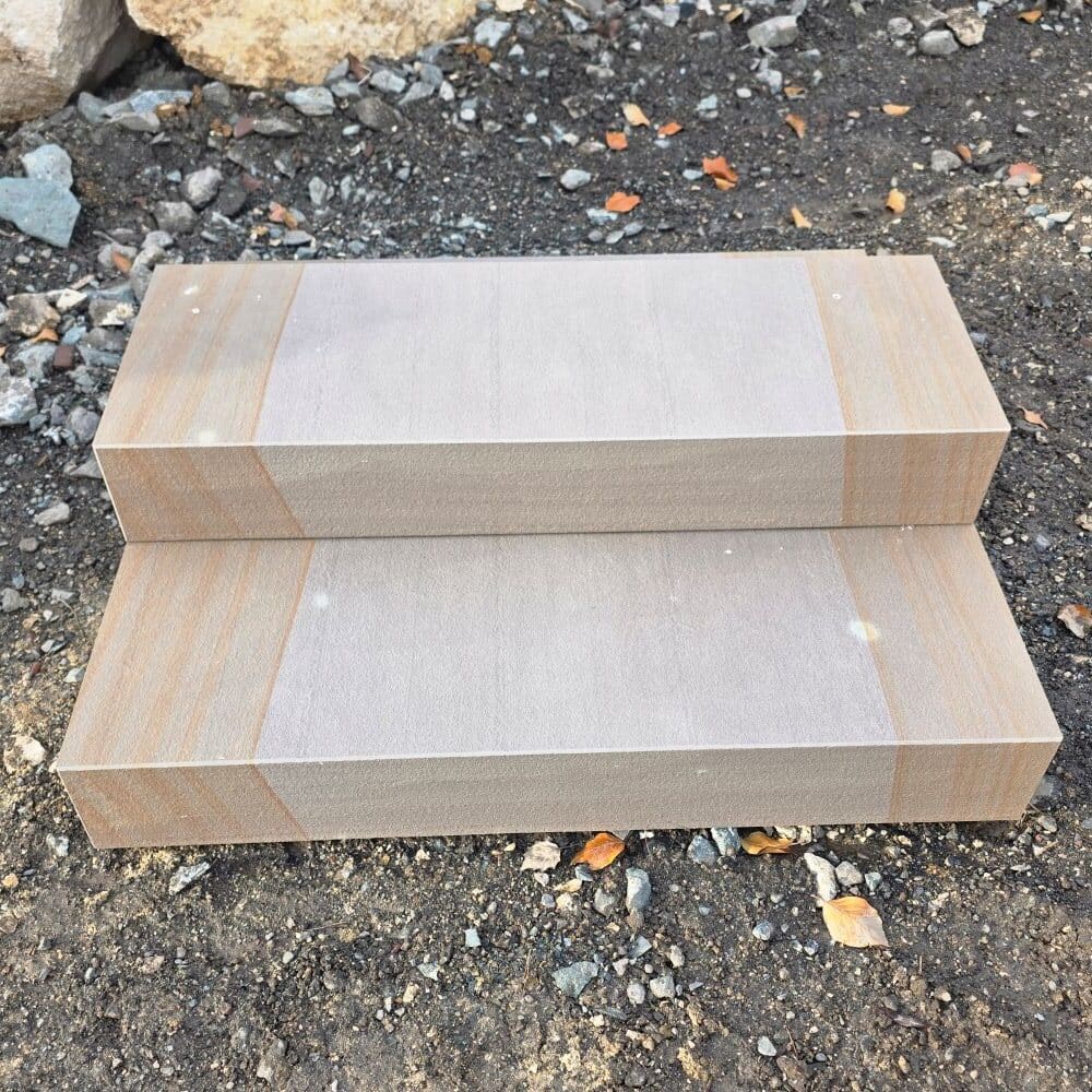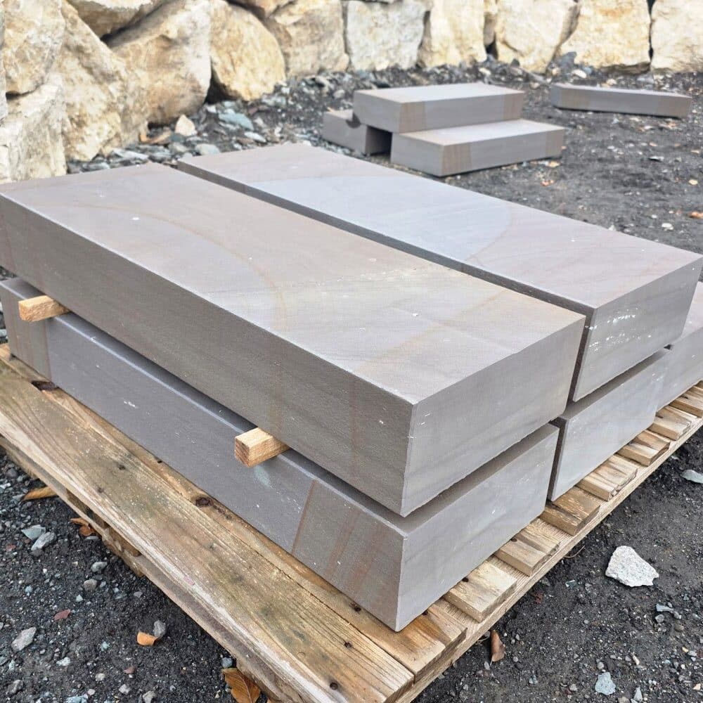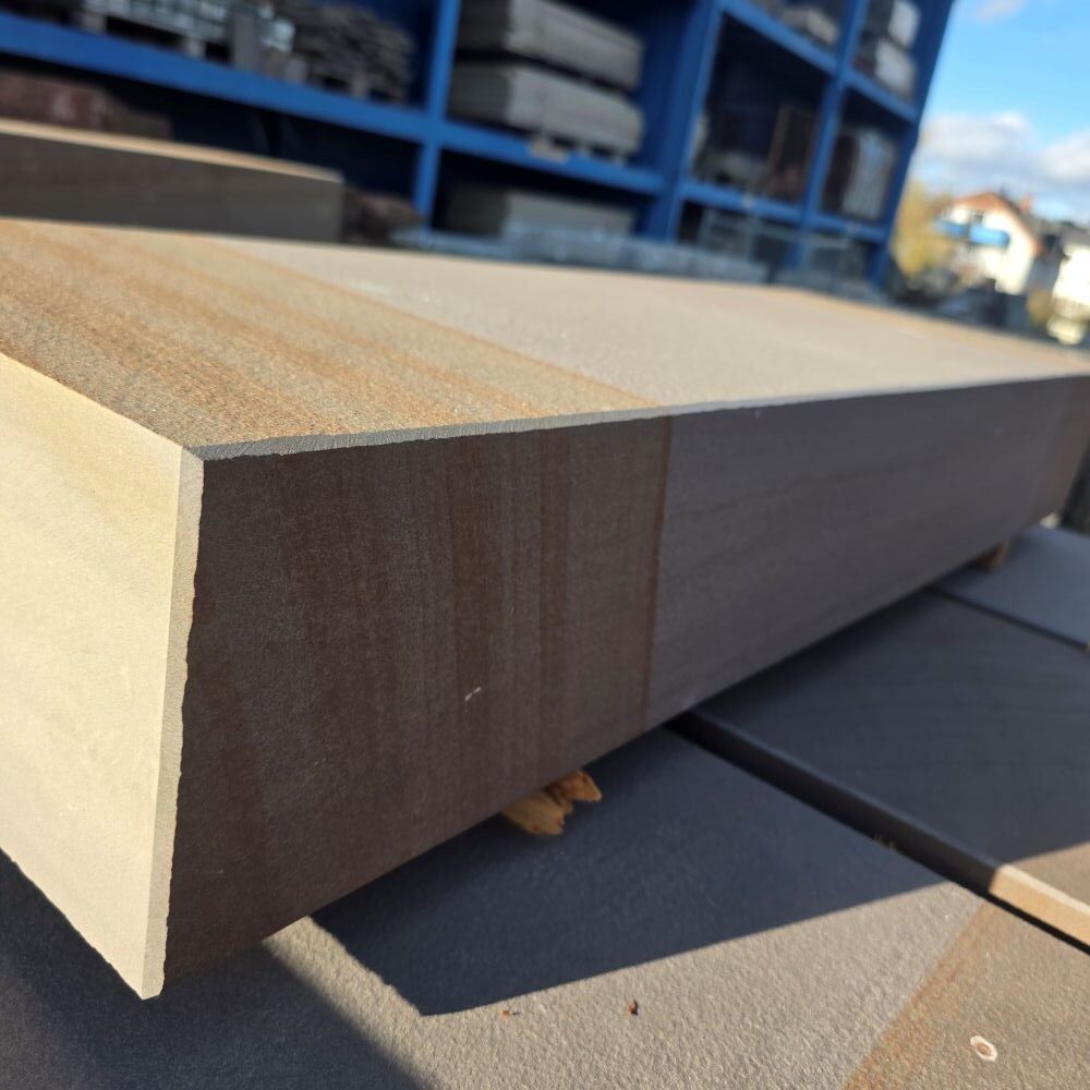 Die Steinstufe made in Germany ist maßhaltig gesägt, die Ansichtsseiten wurden geflammt!