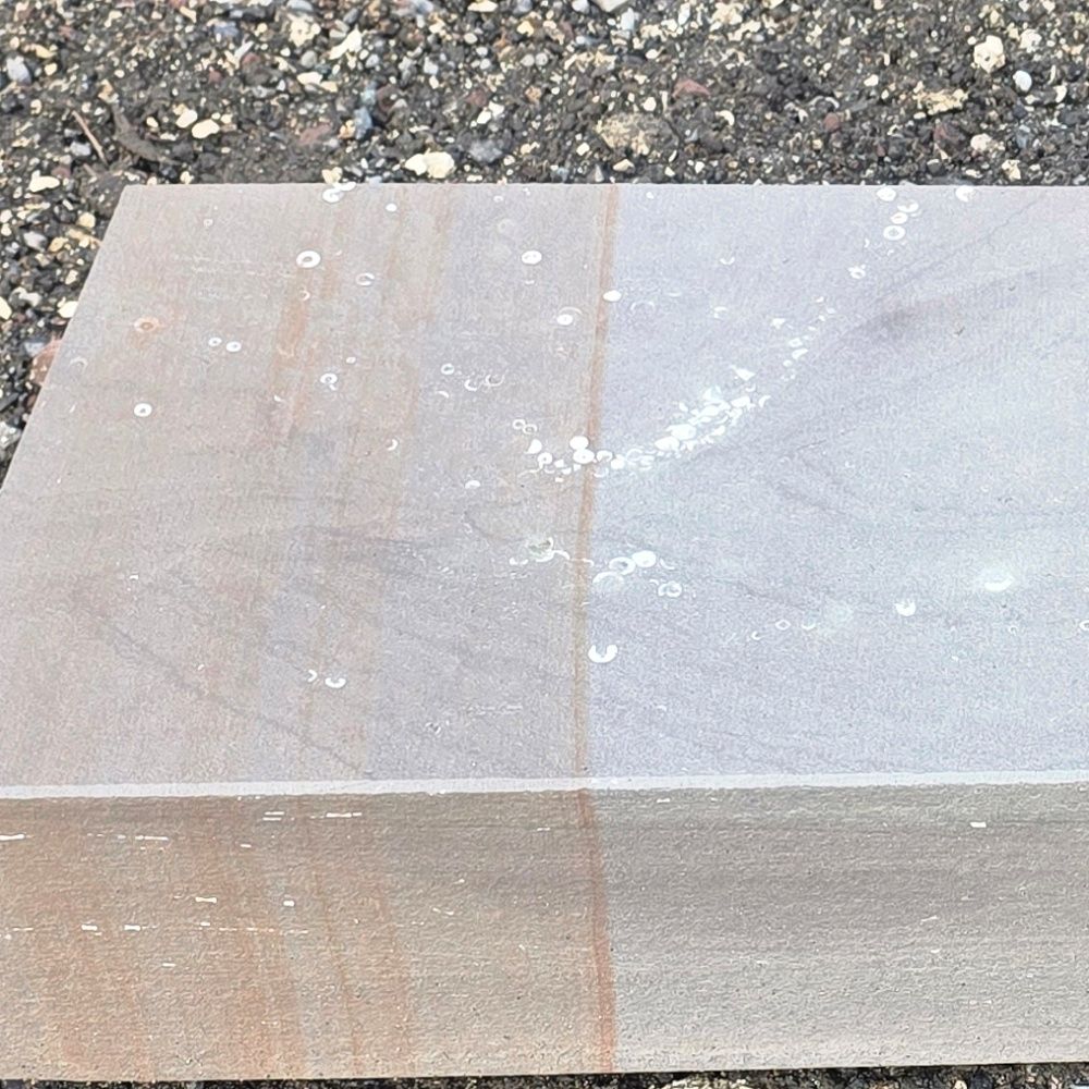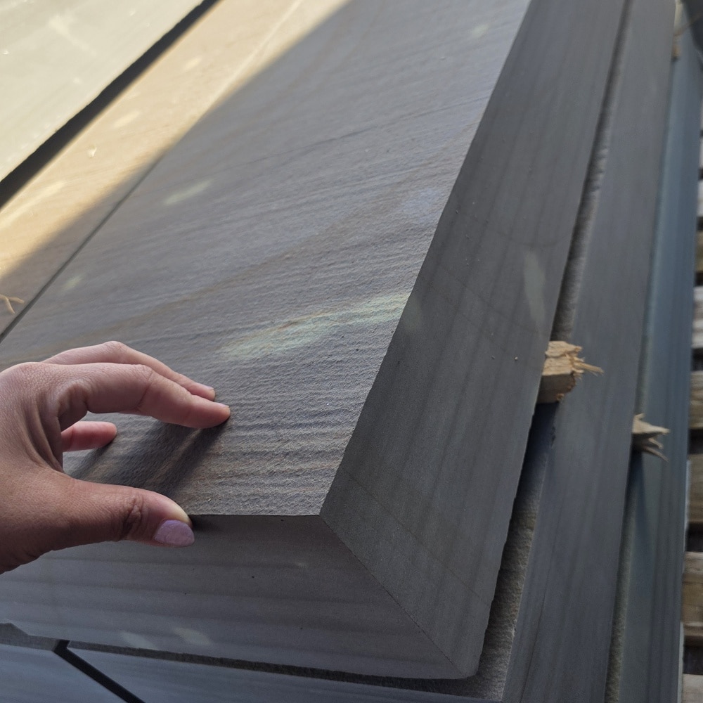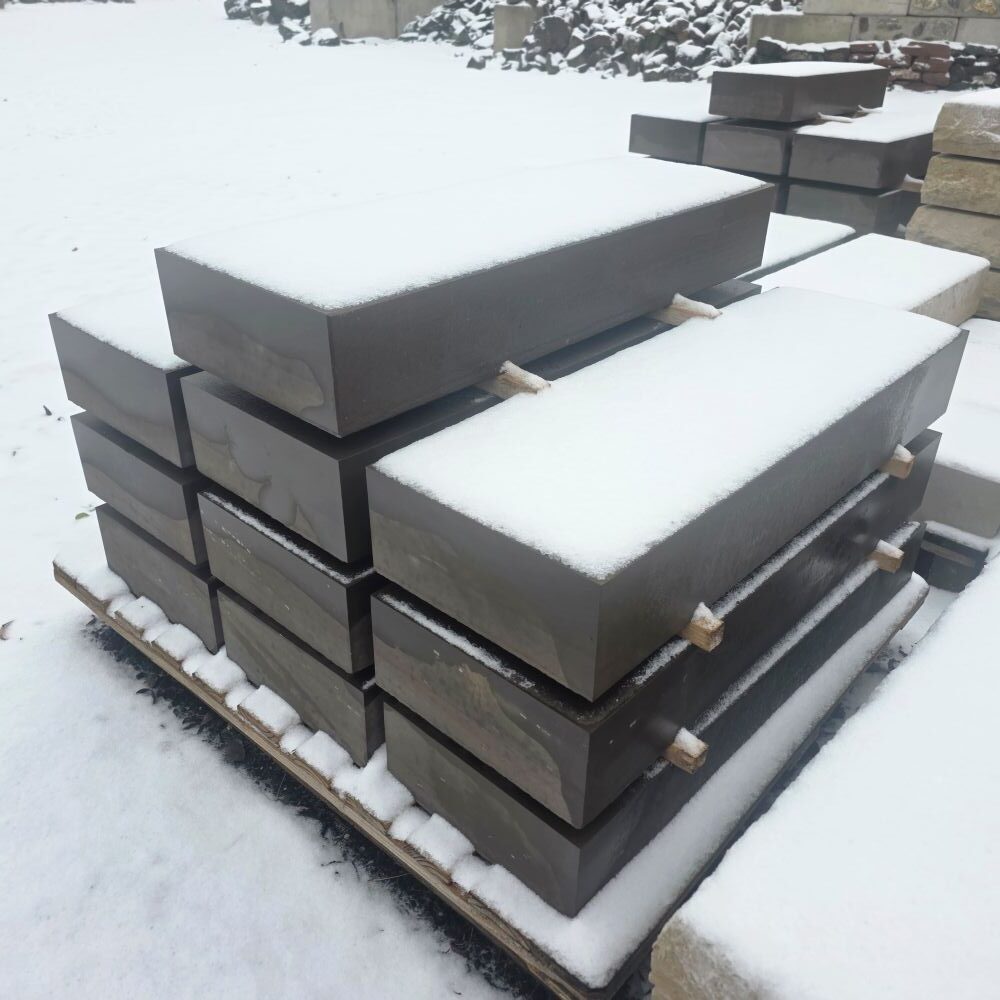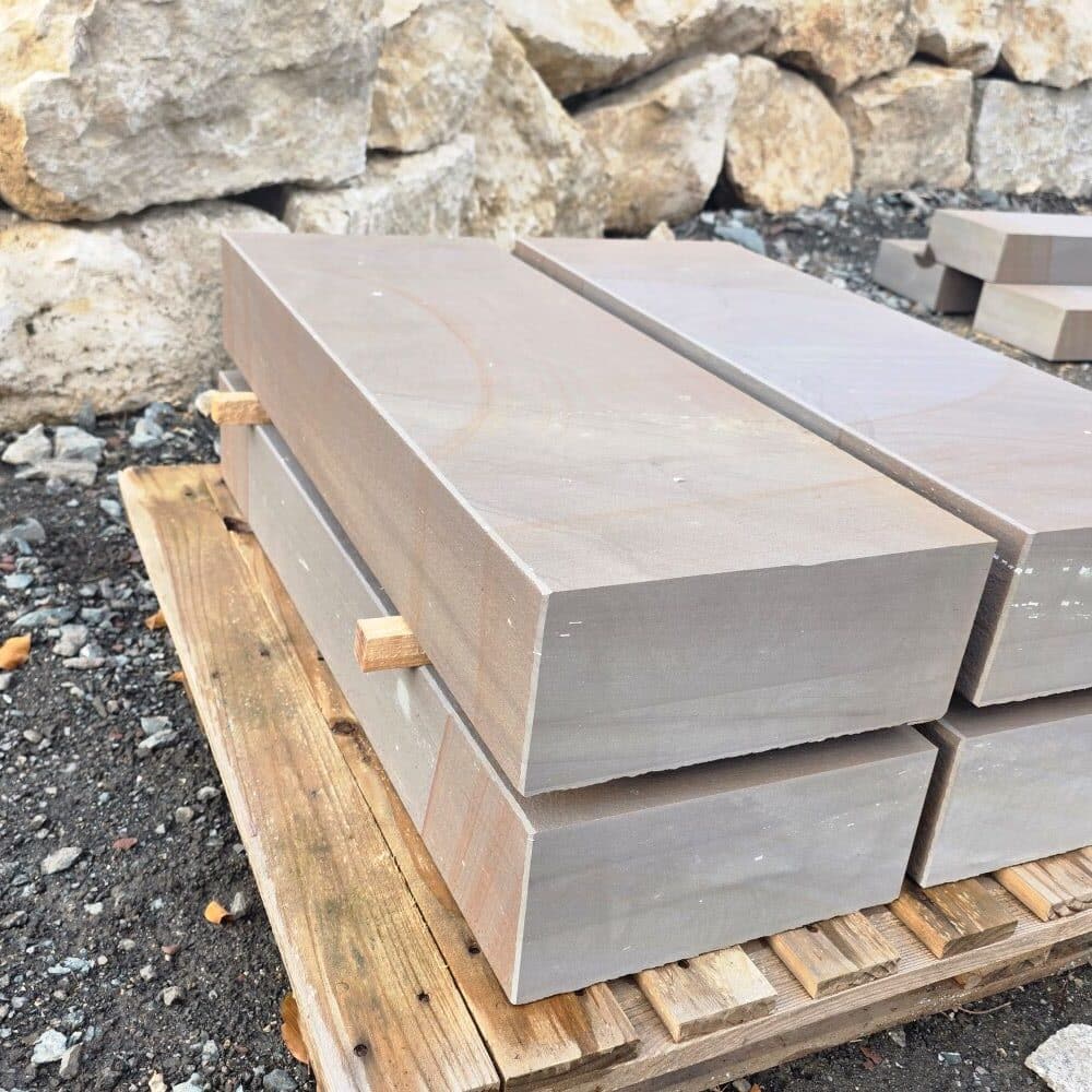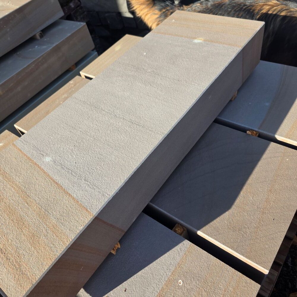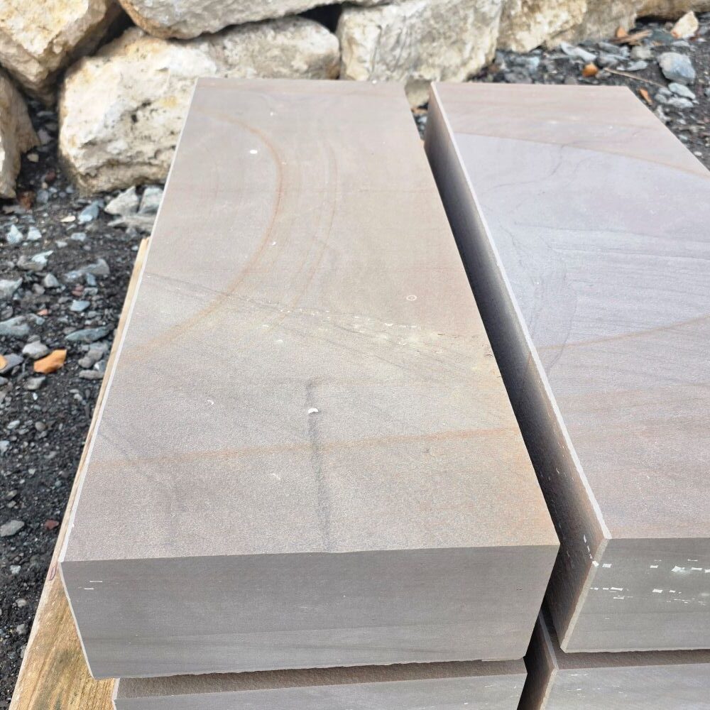 Die Steinstufe made in Germany ist maßhaltig gesägt, die Ansichtsseiten wurden geflammt!