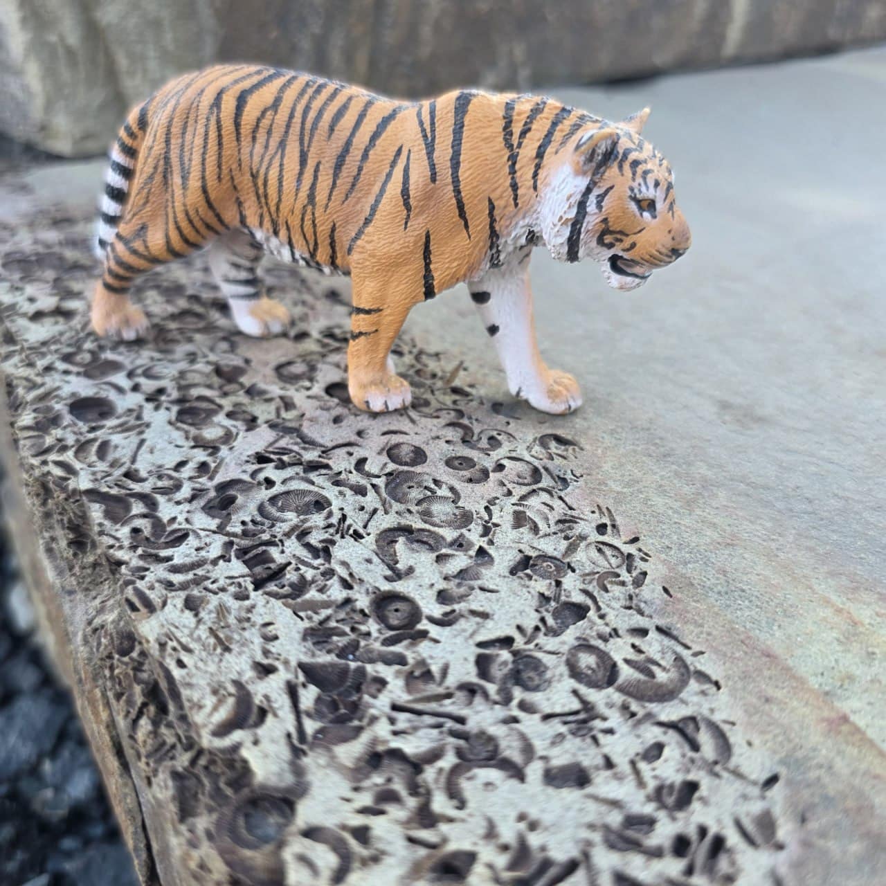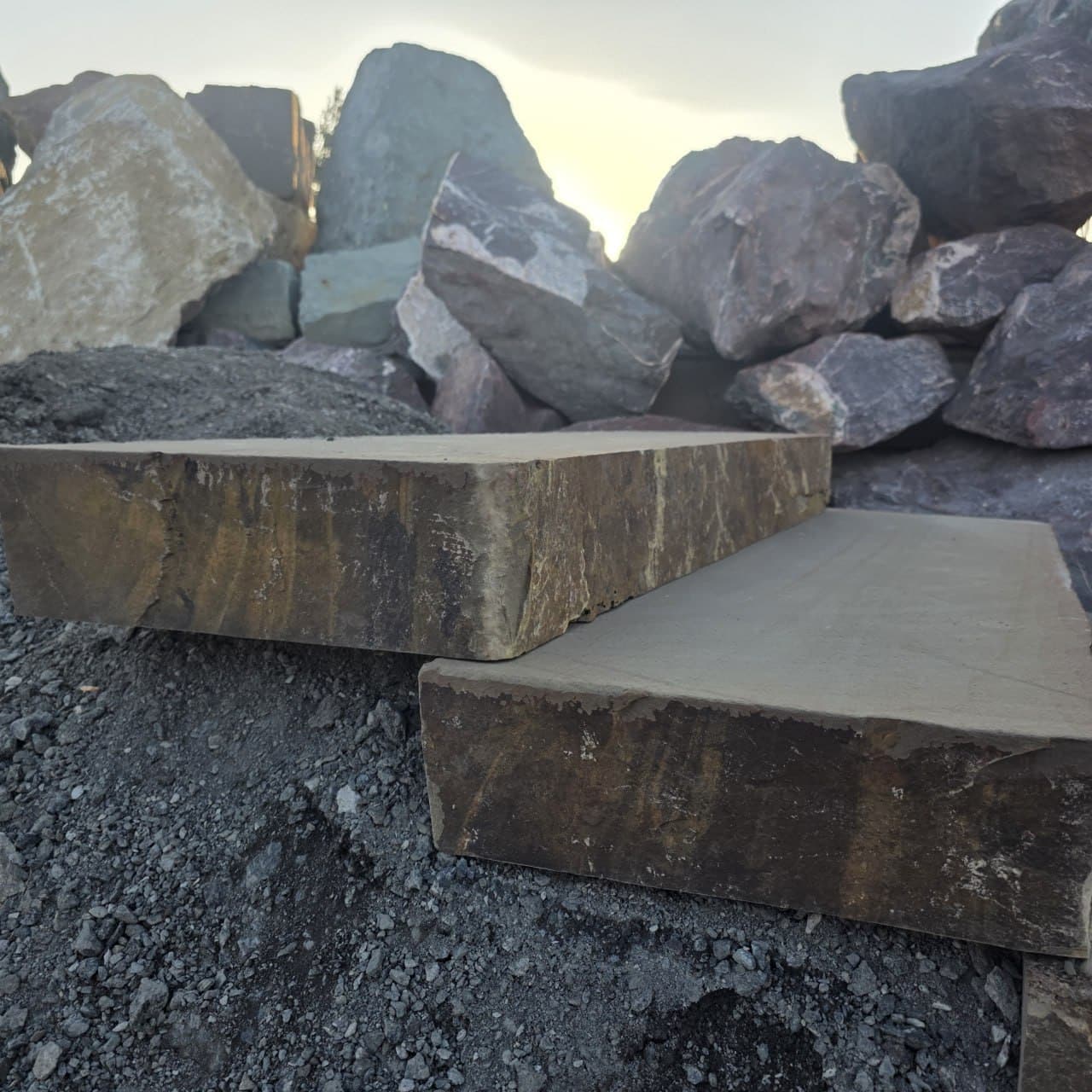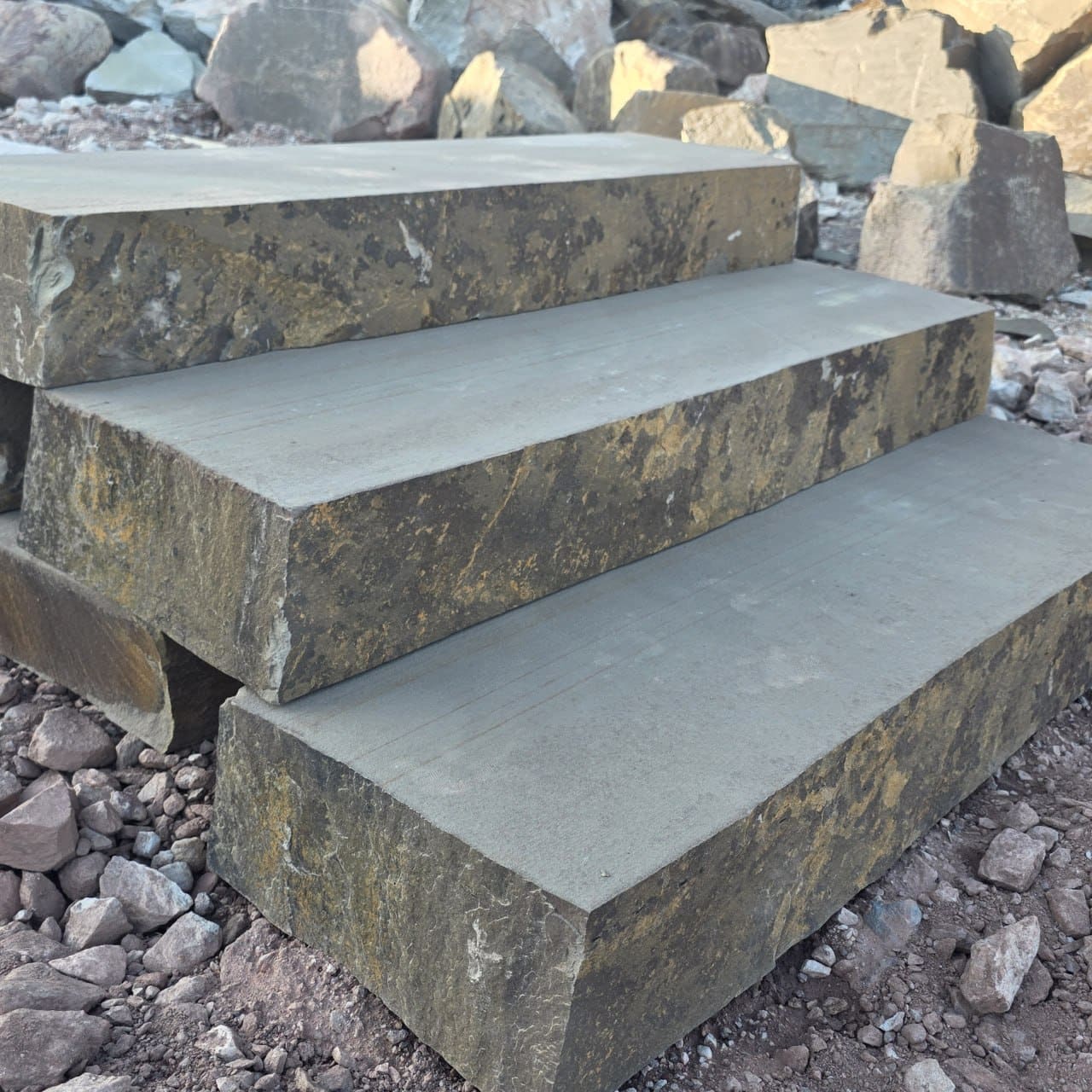 🌿 Typisch Grauwacke: buntes Farbspiel aus Grau und Braun mit lebendiger Struktur. Jede Stufe ein Unikat.