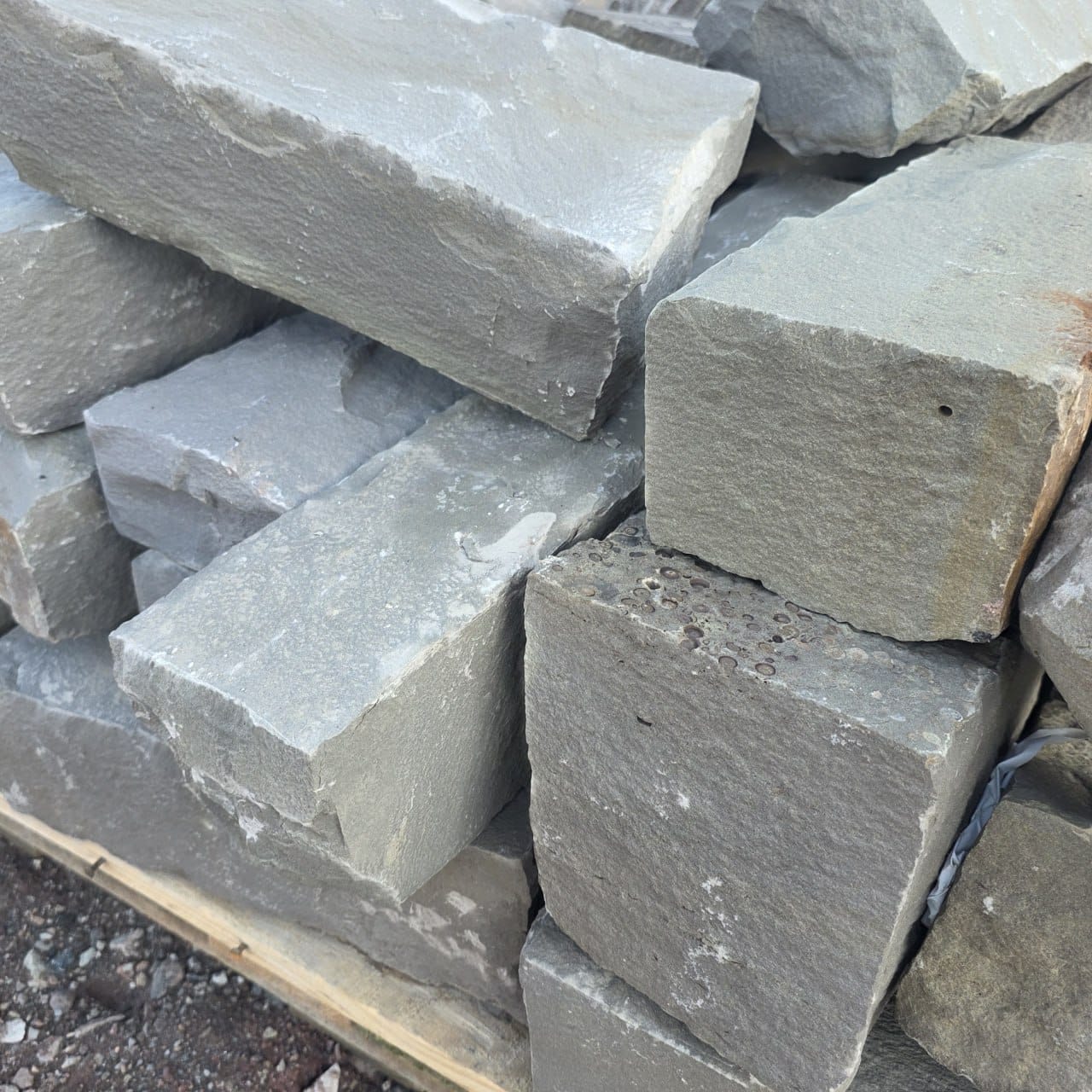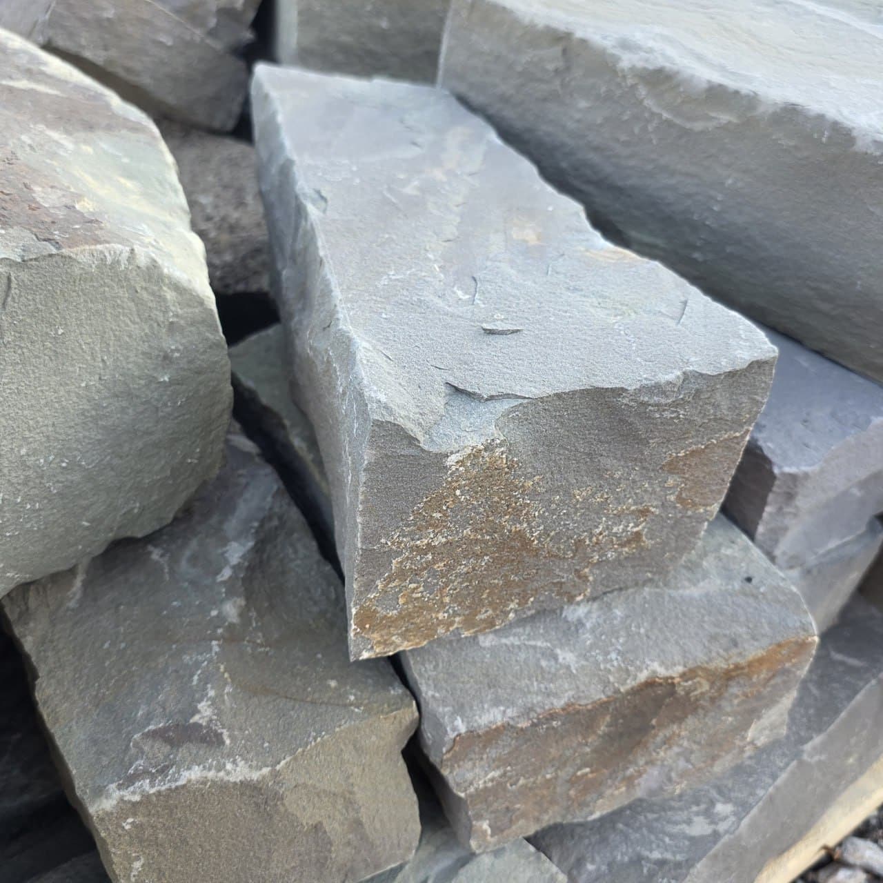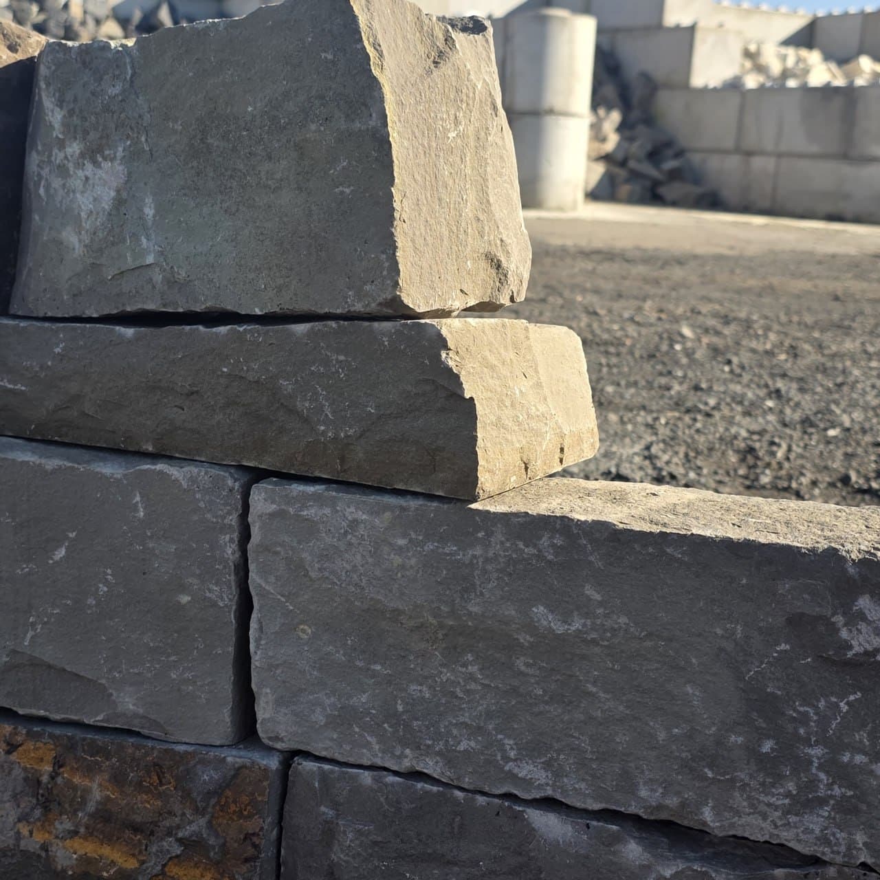 Unsere Grauwacke Mauersteine überzeugen durch ihre natürliche, rustikale Optik und hohe Beständigkeit. Die Steine sind hammerrecht behauen und eignen sich ideal für unregelmäßiges Schichtmauerwerk nach DIN 1053, Bild 18. Durch ihre robuste Struktur und die charakteristische Farbgebung der Grauwacke entsteht ein zeitloses und hochwertiges Erscheinungsbild, perfekt für Gartenmauern, Stützmauern, Sichtmauerwerke oder individuelle Landschaftsgestaltung.