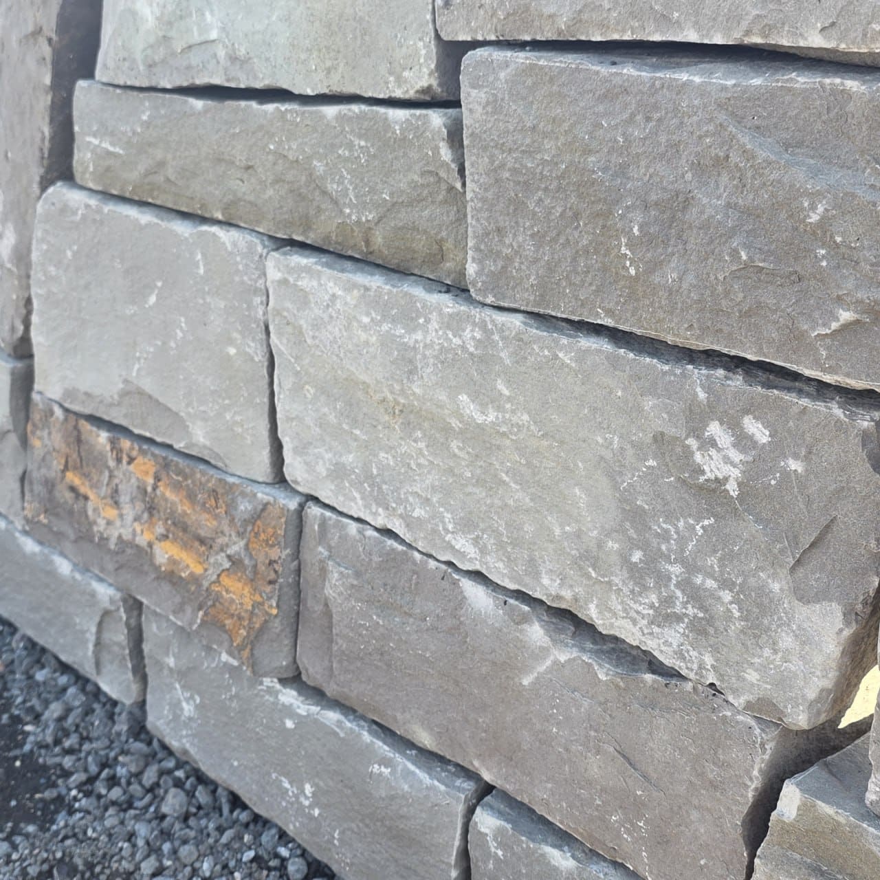 Alternativ finden Sie bei uns auch noch den günstigeren gespaltenen Grauwacke Mauerstein premium 6 – 25, der etwas unregelmäßiger ausfällt: