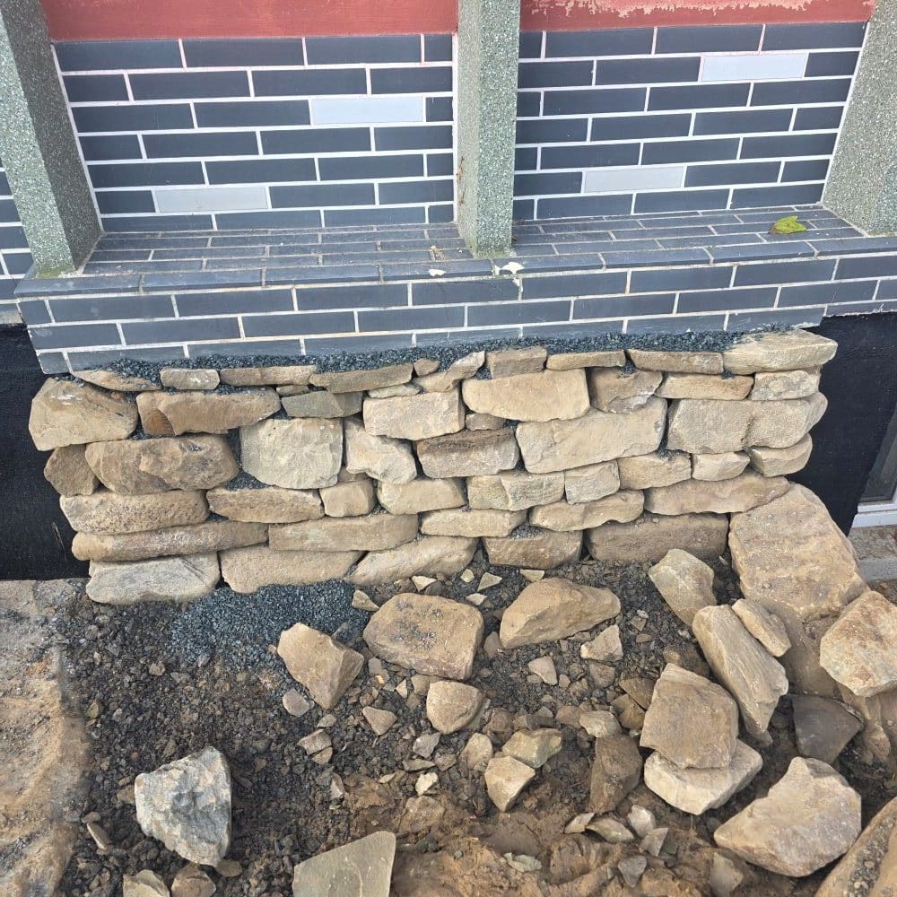 Setzen Sie die Steine außerdem im Versatz und leichter Neigung nach hinten um die bestmögliche Stabilität zu erzielen.