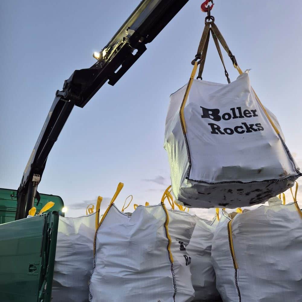 Für gewöhnlich werden die Steine lose gekippt geliefert, können aber auch in BigBags verpackt und per Kran-LKW oder Stückgutspedition verschickt werden.