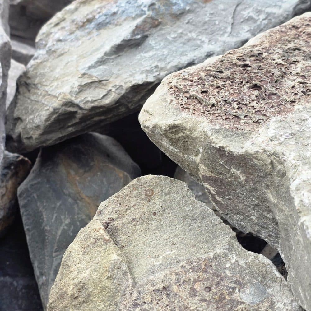 Diesen Stein finden Sie auch noch in einer größeren Sortierung, sowie gespaltene Mauersteine, Quader und viele weitere Produkte aus bergischer Grauwacke.