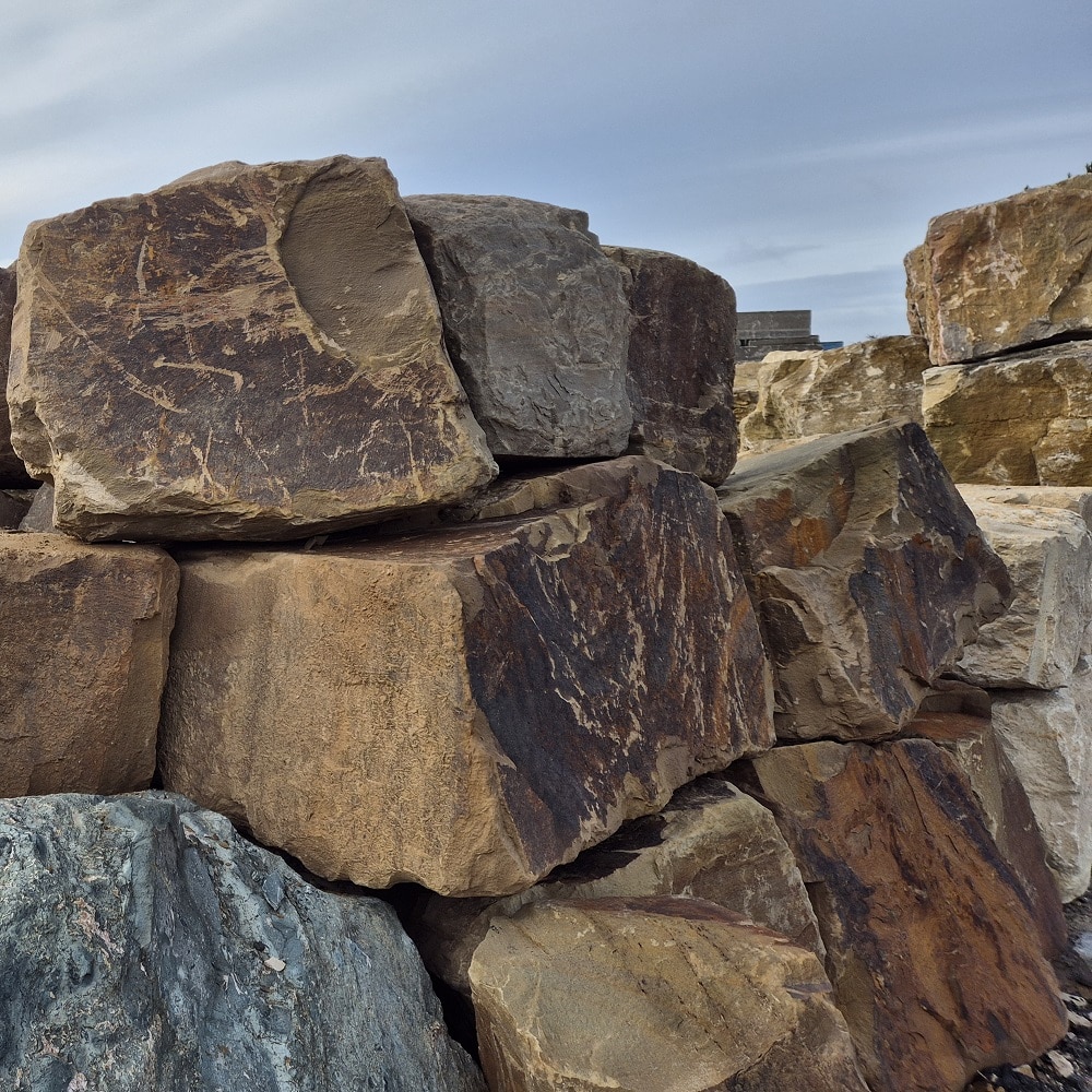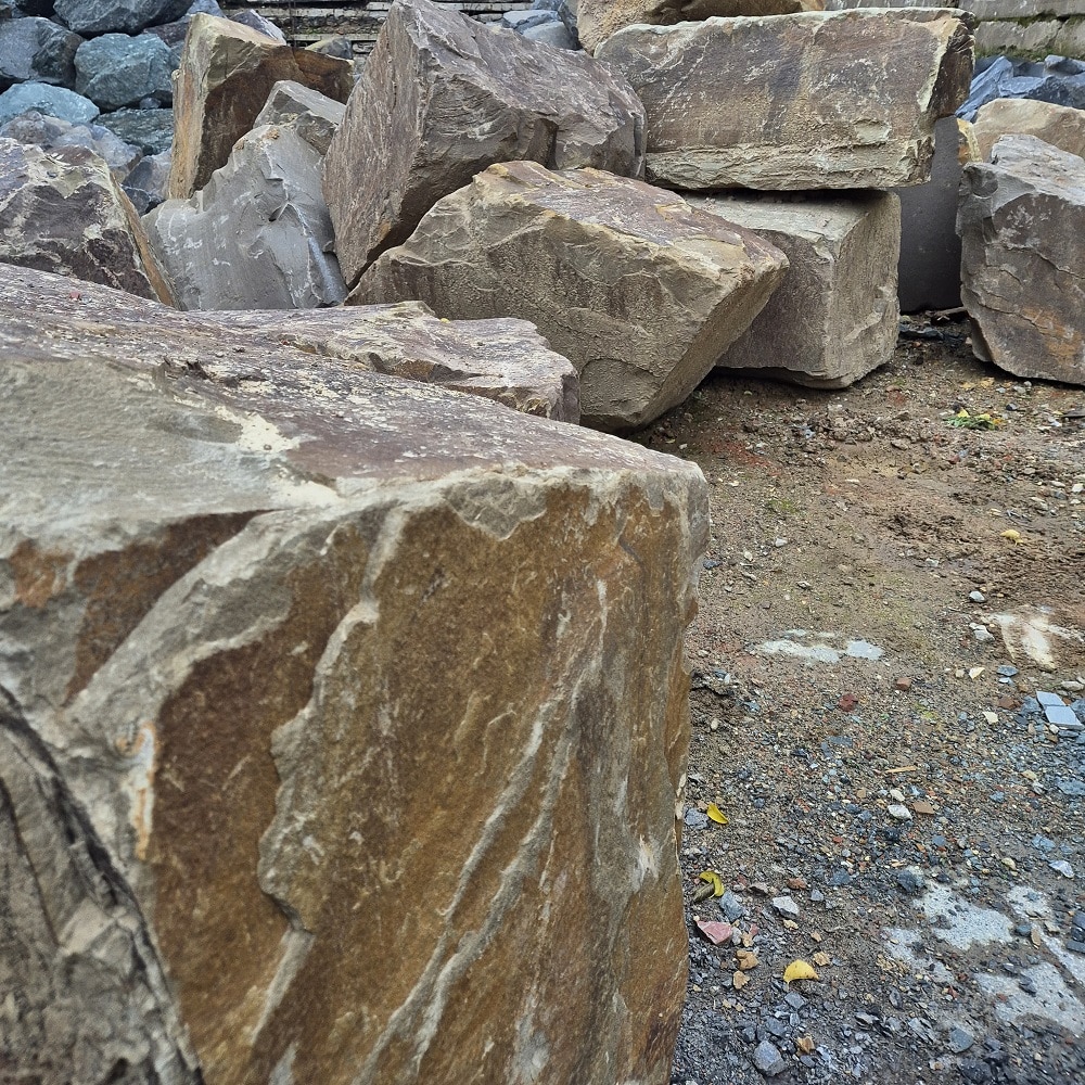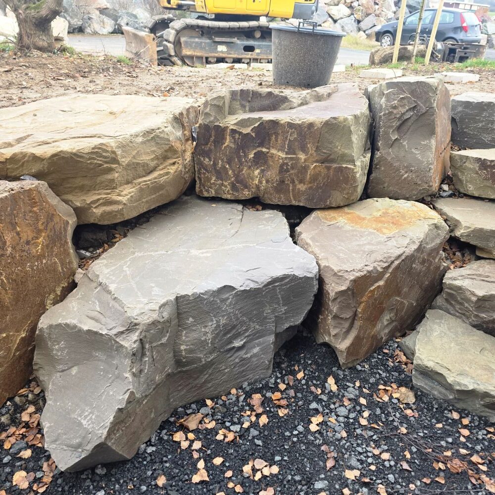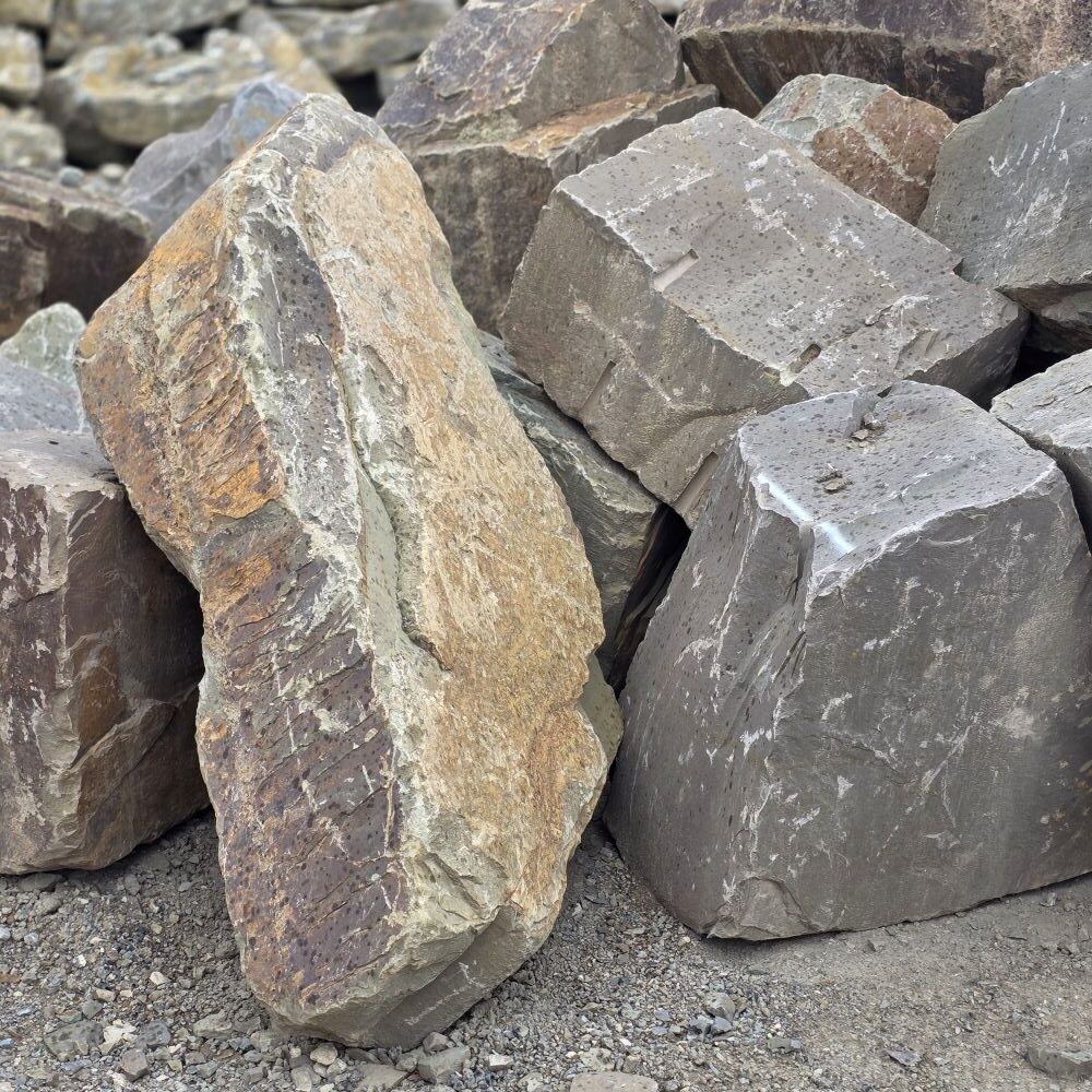 Natürliche Grauwacke Gestaltungssteine für Trockenmauern, Wasserbau und Geländemodellierung
