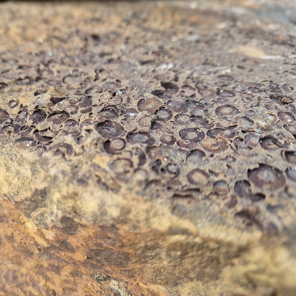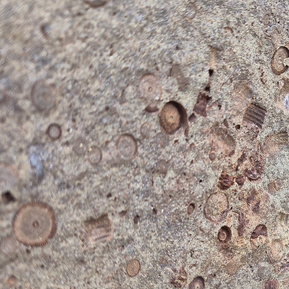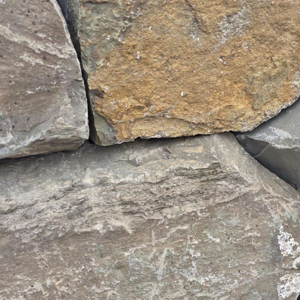 Die Bergische Grauwacke überzeugt nicht nur durch ihre hohe Festigkeit, sondern auch durch ihre natürliche Farbvielfalt. Typisch sind graue, anthrazitfarbene und braun-graue Töne mit teils leicht grünlichen oder bläulichen Einschlägen. Diese lebendigen Farbschattierungen machen jede Natursteinmauer, Hangbefestigung oder Quadermauer optisch einzigartig. Zusätzlich enthalten einige Steine fossile Einschlüsse von Seelilien (Crinoiden), die aus urzeitlichen Meeresablagerungen stammen. Diese sichtbaren Fossilien unterstreichen den ursprünglichen Charakter des Materials und machen jede Gartenmauer zu einem echten Unikat. Gerade für massive Stützmauern, Böschungsbefestigungen und gestaltete Quadermauern ist Bergische Grauwacke daher eine langlebige, robuste und optisch hochwertige Wahl.