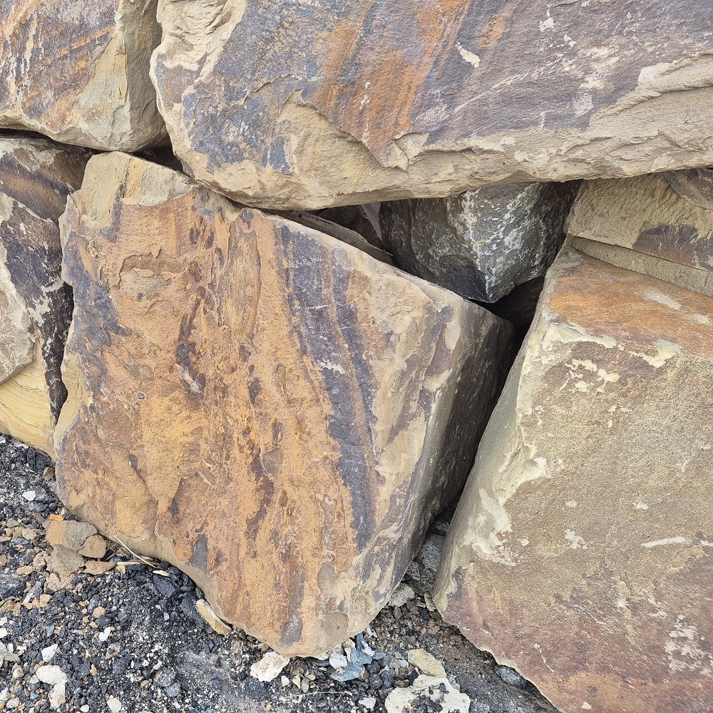 Die Steine lassen sich dank Ihrer kantigen Form gut vermauern und auch zu Sitzsteinen und ansprechenden Sitzgruppen kombinieren.