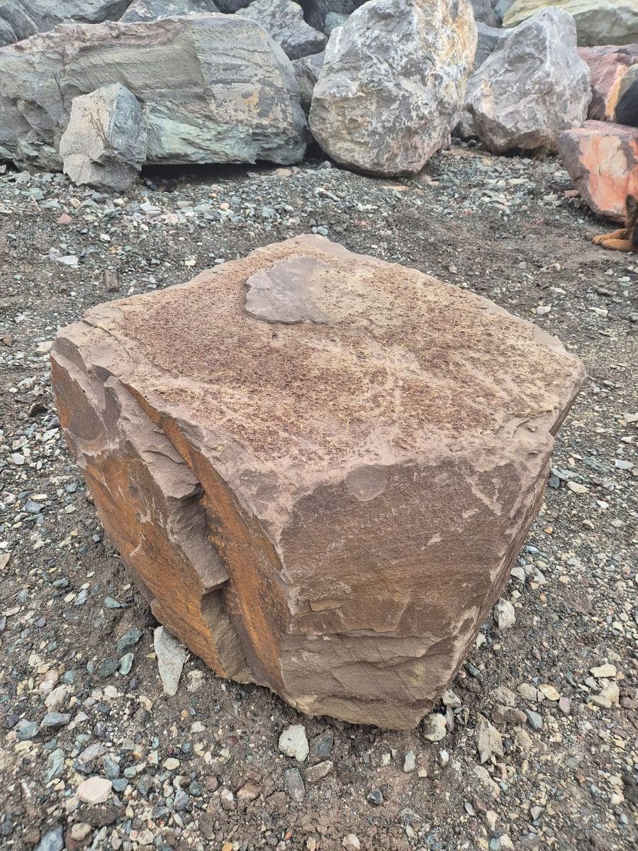 Mit seiner robusten Struktur und der markanten, quaderförmigen Form eignet sich der „Wüstenrot“ ideal als Sitzstein, Blickfang im Garten, Akzent im Steingarten oder als dekoratives Element im Landschaftsbau. Natürlich, langlebig und voller Charakter – ein Stein, der Atmosphäre schafft.