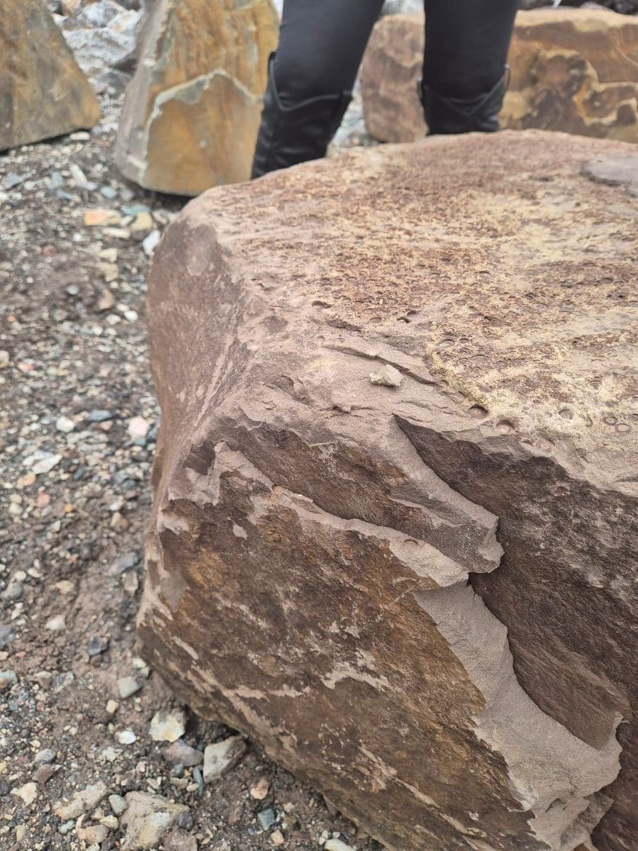 Der „Wüstenrot“ ist ein außergewöhnlicher Sitz- und Zierfelsen aus hochwertiger Grauwacke, dessen warme Braun- und Sandtöne sofort ins Auge fallen. Seine einzigartige Oberfläche zeigt zahlreiche fossile Abdrücke, die dem Stein eine besondere, fast historische Ausstrahlung verleihen. Jeder Abdruck erzählt ein Stück Naturgeschichte und macht diesen Felsen zu einem Unikat.