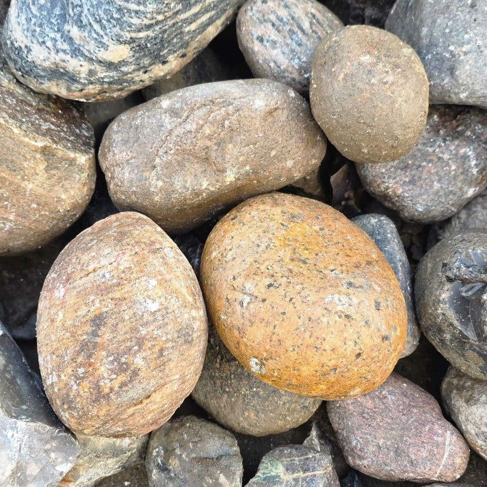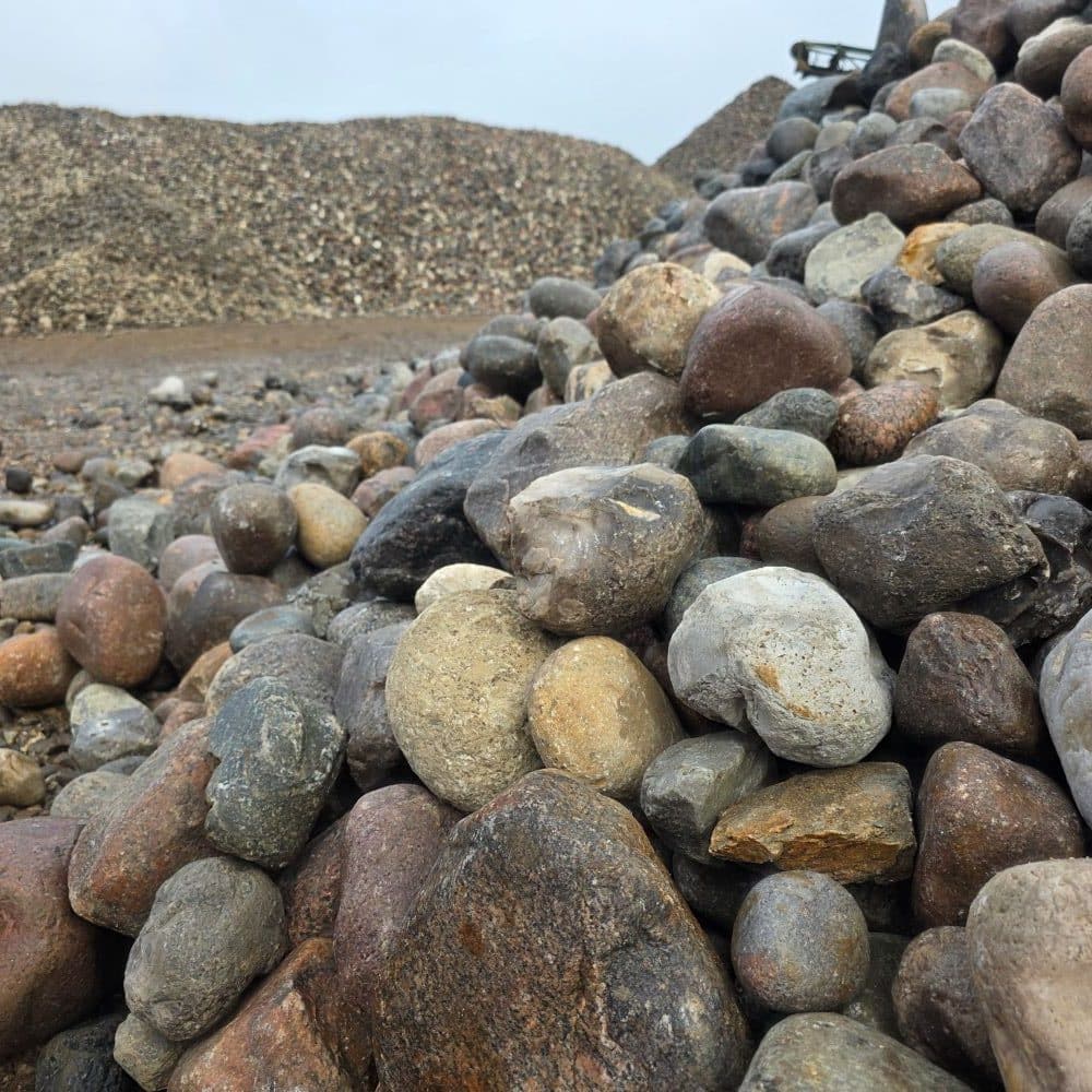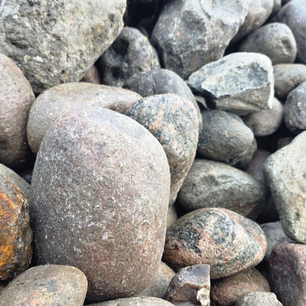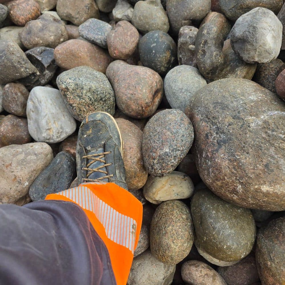 Unsere Jütlandfindlinge Deluxe sind die preiswerteste Sortierung für Friesenwälle im Format 150–300 mm. Sie entsprechen derselben Sieblinie wie die handsortierten Standardsteine, wurden jedoch nicht per Hand nachsortiert. Dadurch bleiben im Material ein kleiner Anteil Fremdgestein – überwiegend Flintsteine (Feuerstein) – sowie vereinzelt etwas kantigere Steine enthalten. Für die meisten Bauvorhaben stellt dies jedoch keinen Nachteil dar und bietet zugleich einen deutlichen Preisvorteil.