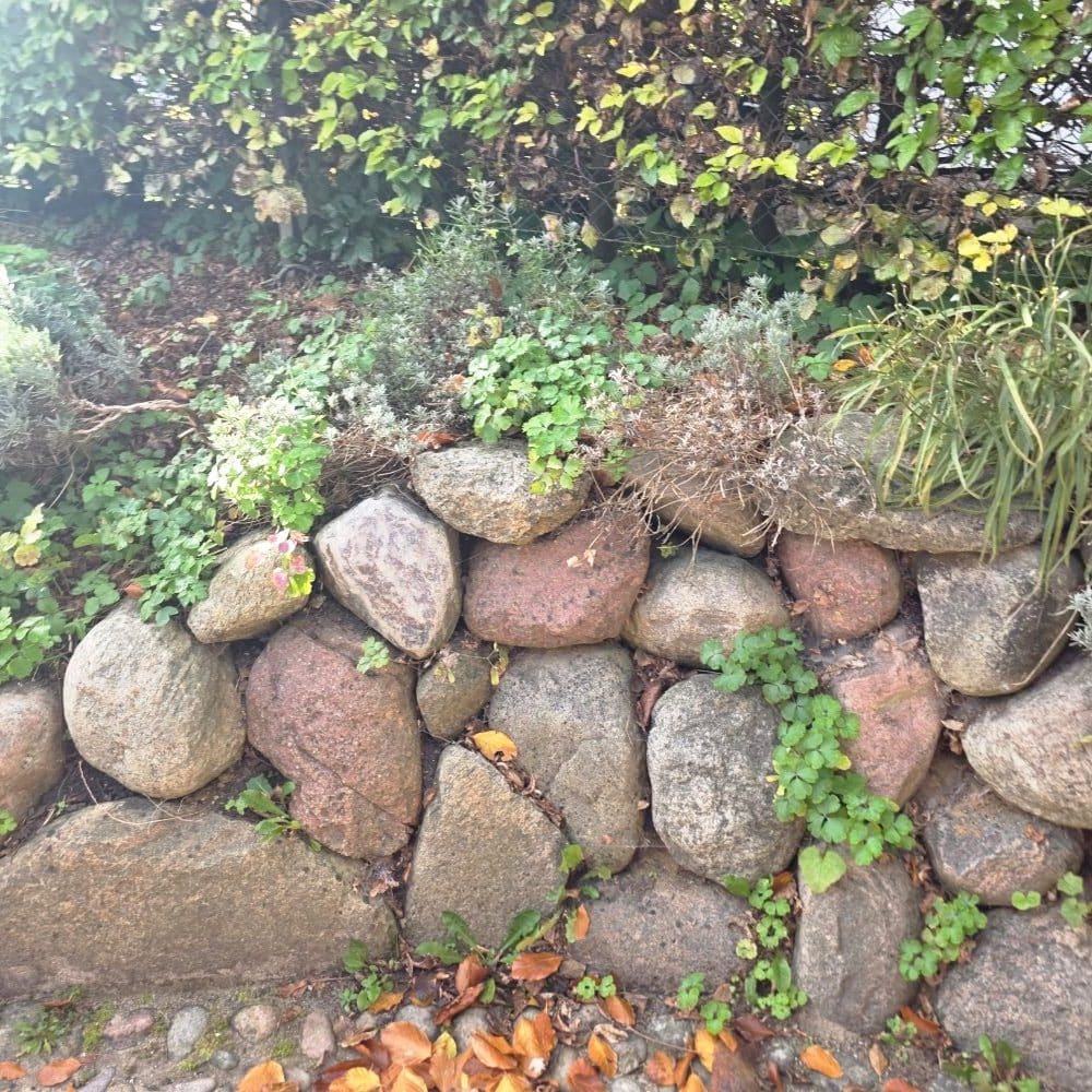 Gerade im hinteren Mauerbereich benötigt man oft einen stabilisierenden Stein – hier eignen sich Flintsteine ideal und helfen gleichzeitig, die Kosten im Griff zu behalten.
