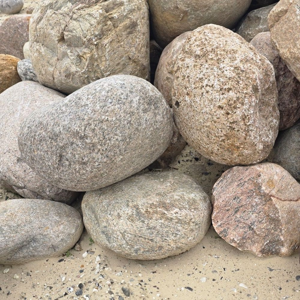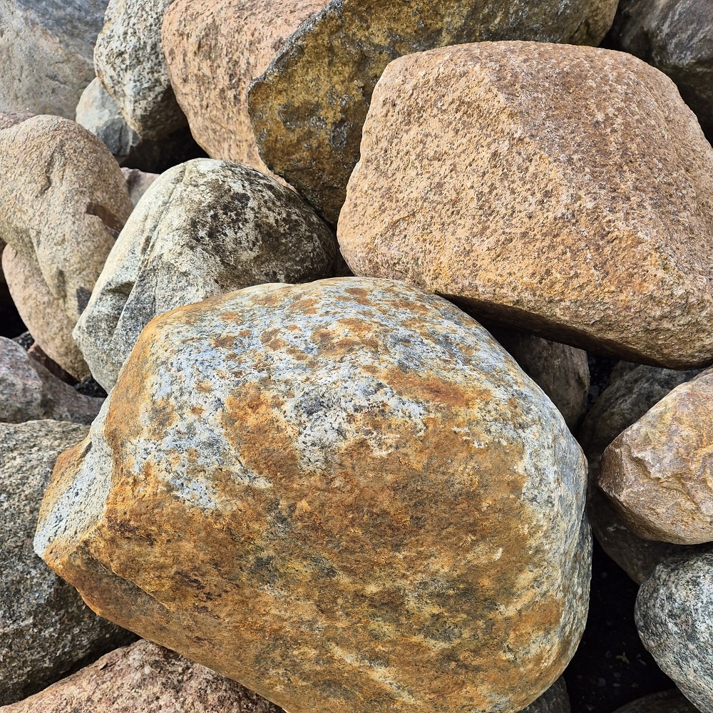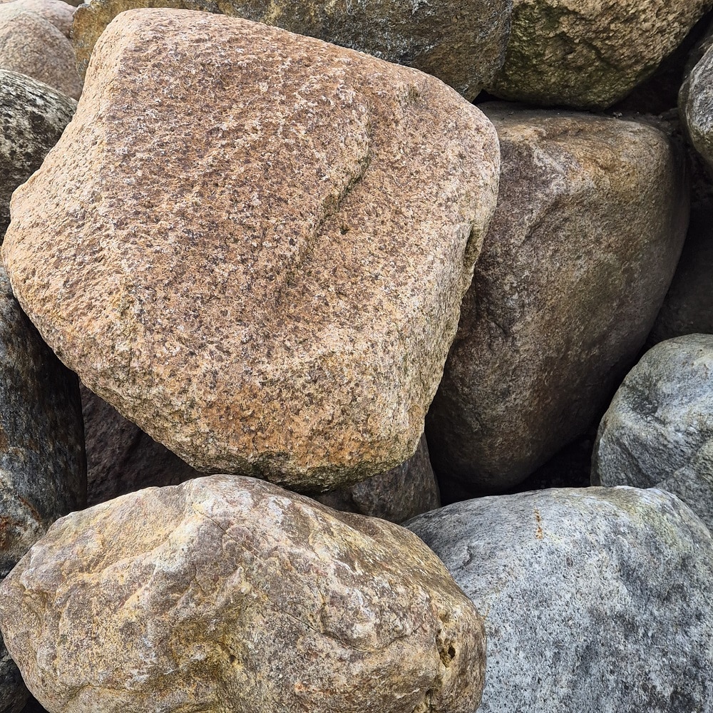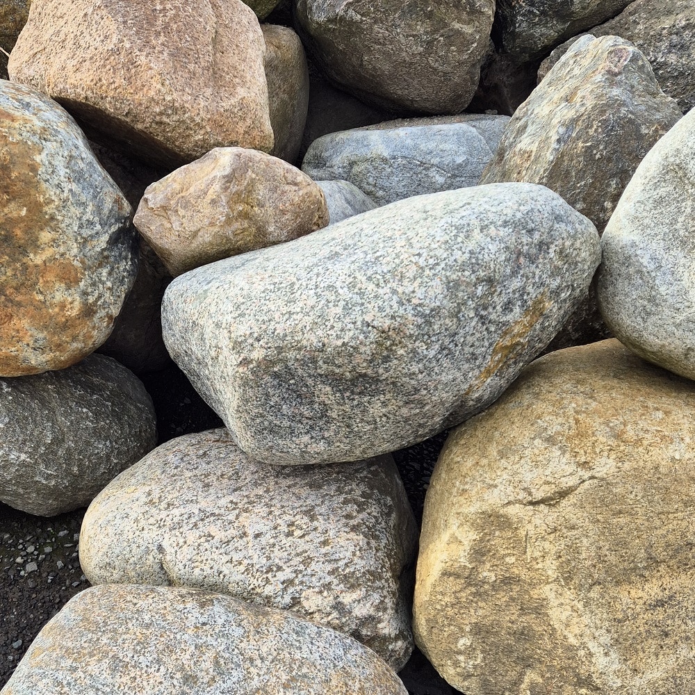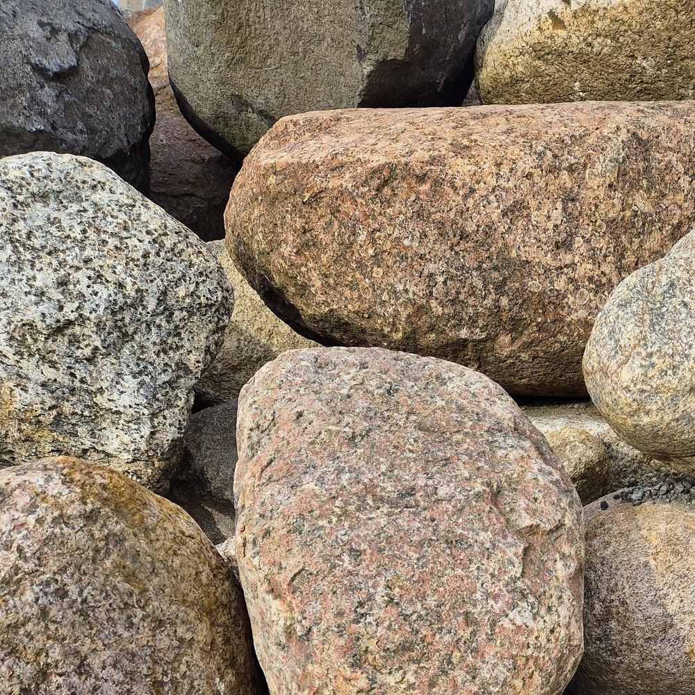 Im Gegensatz zu den kleineren 150–300 mm Steinen sind die 200–500 mm Steine nicht handsortiert. Das bedeutet: Es können kantige Granitsteine oder andere Gesteinsarten wie Feuerstein oder Grauwacke auftreten.