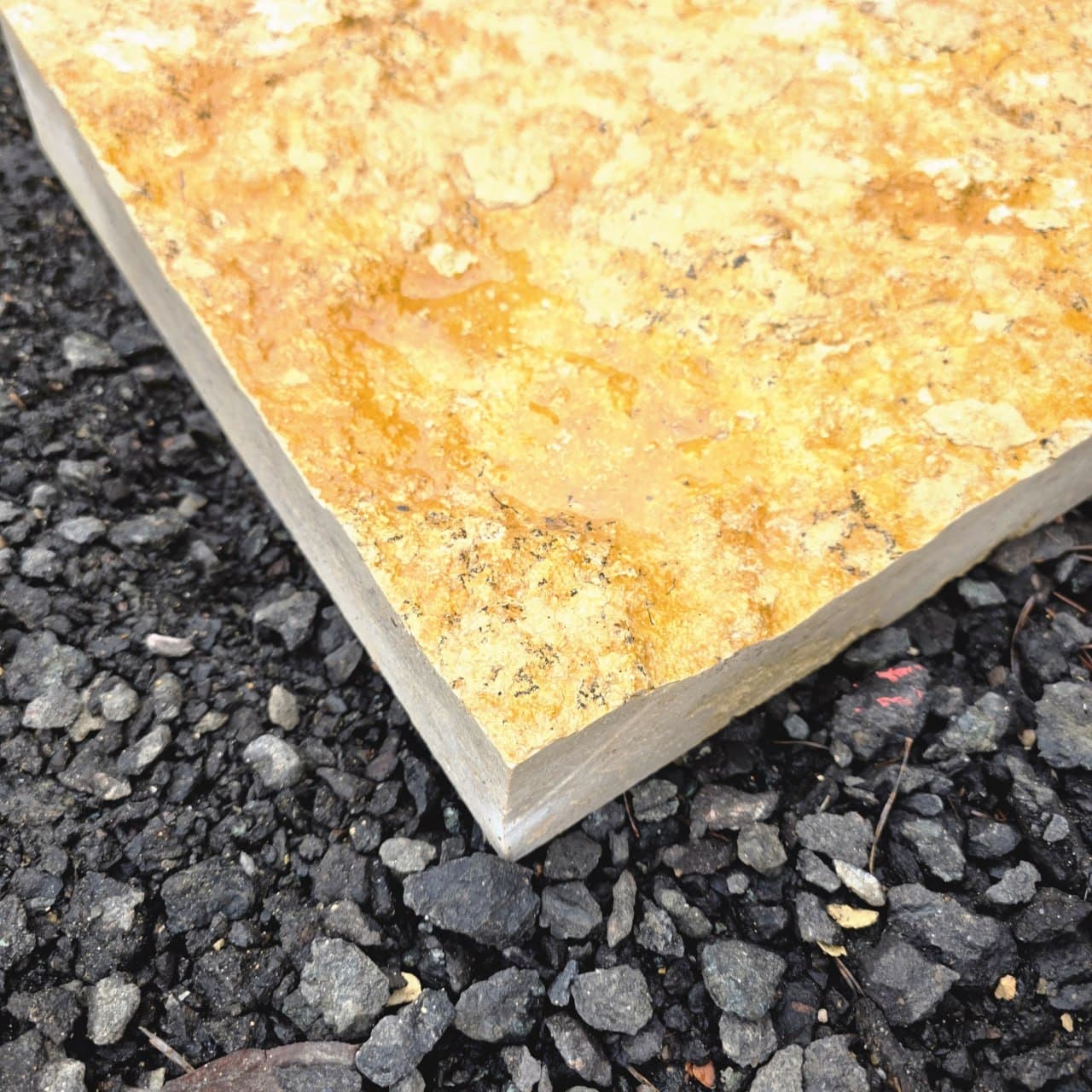 Durch die gesägten Kanten und die gesägte Rückseite lassen sich die Platten sauber und stabil verlegen. Die natürliche Oberfläche sorgt für eine ruhige, authentische Optik 🪨
