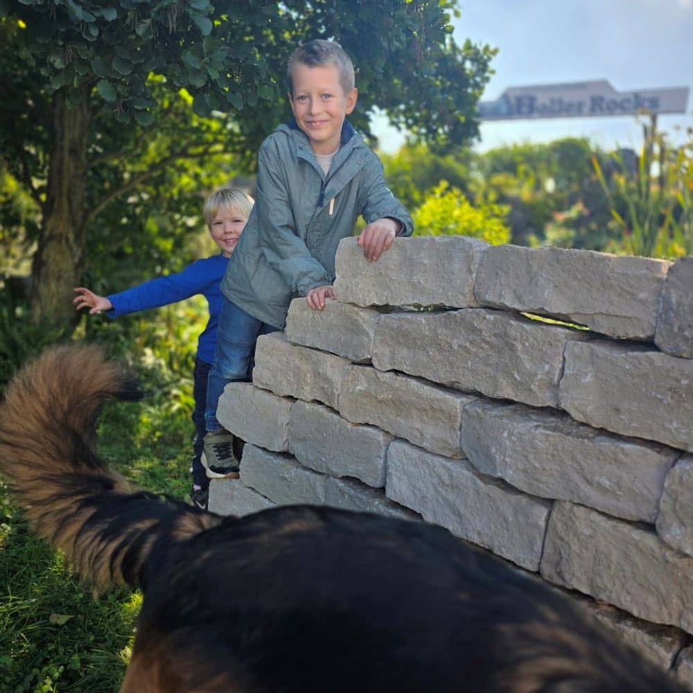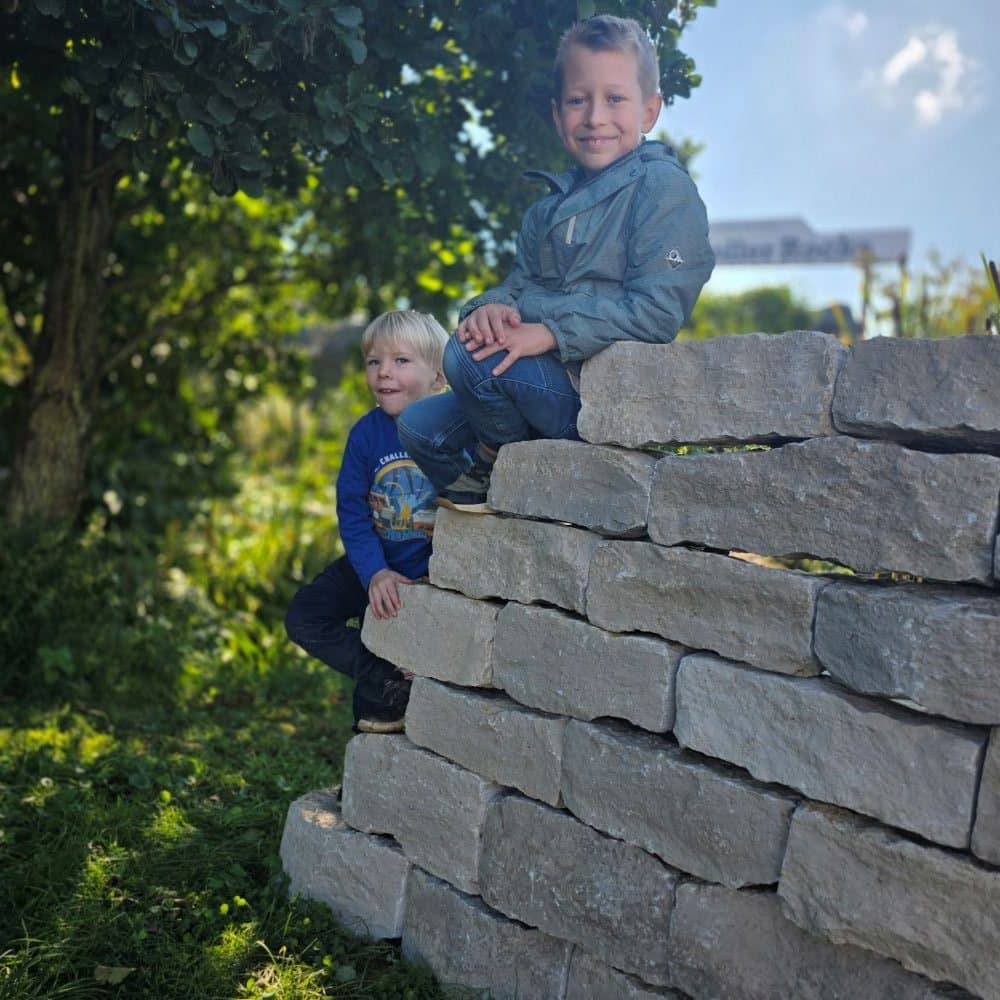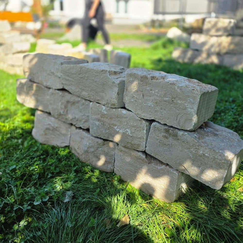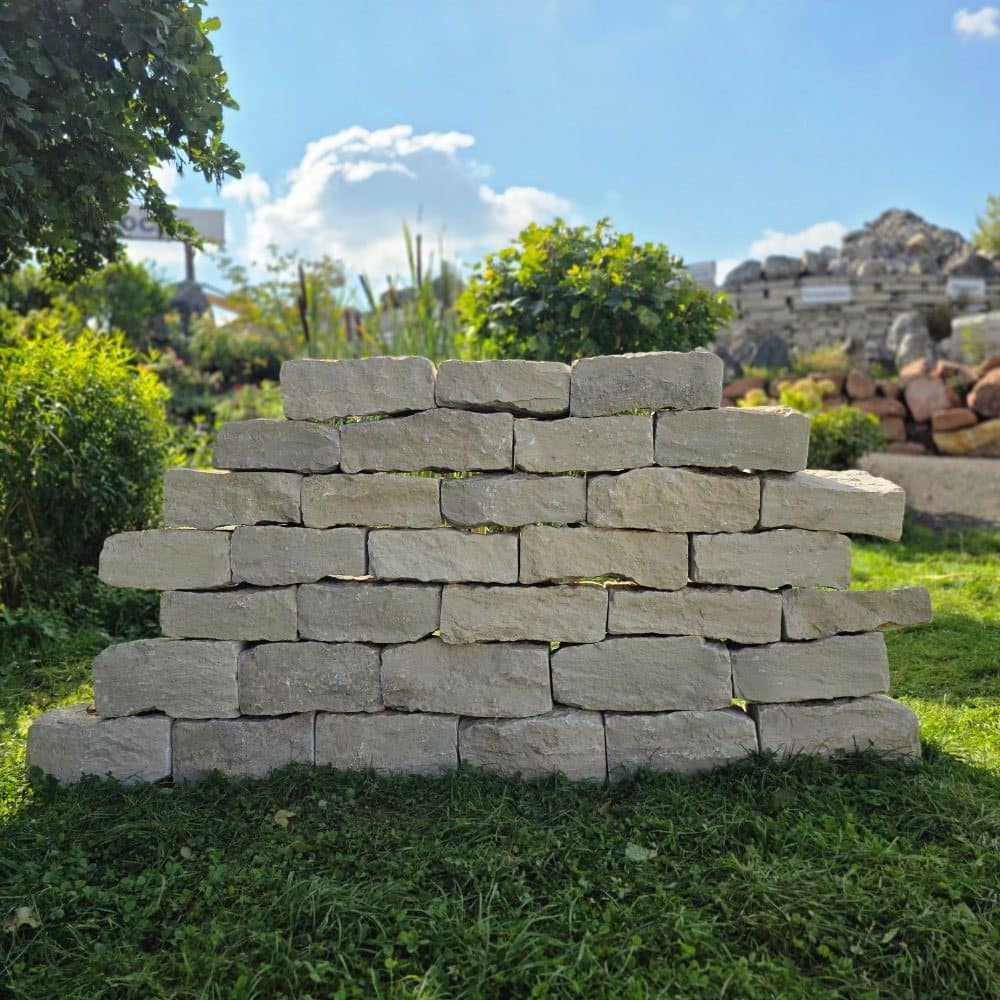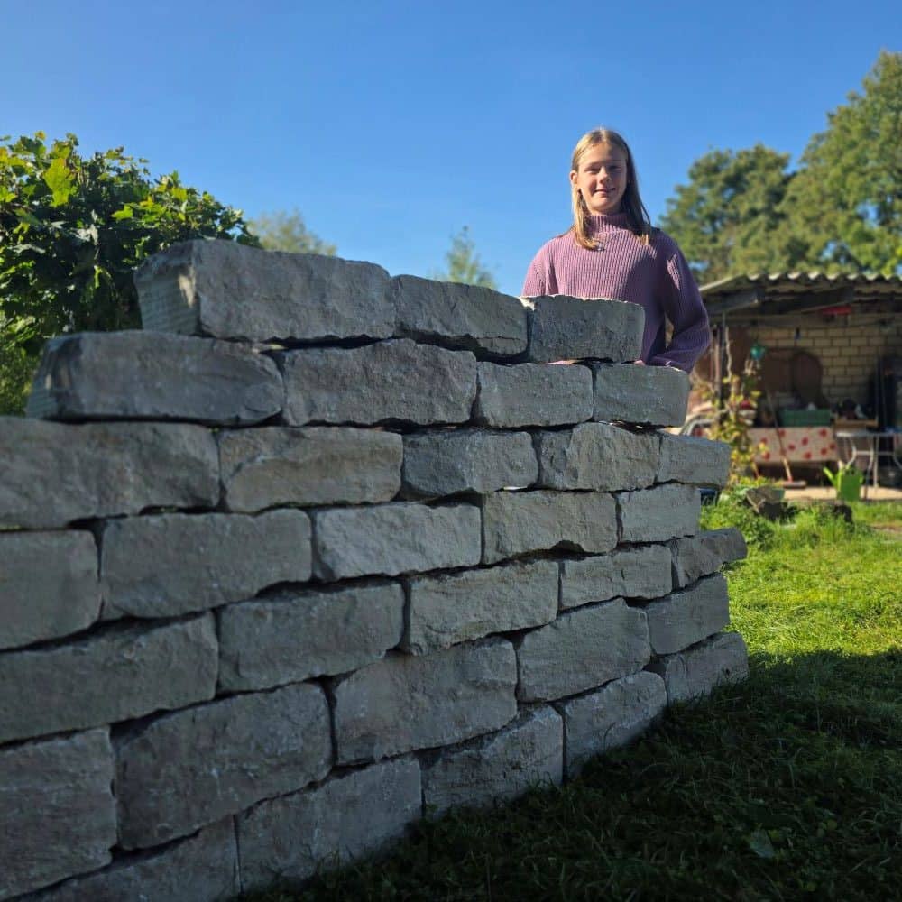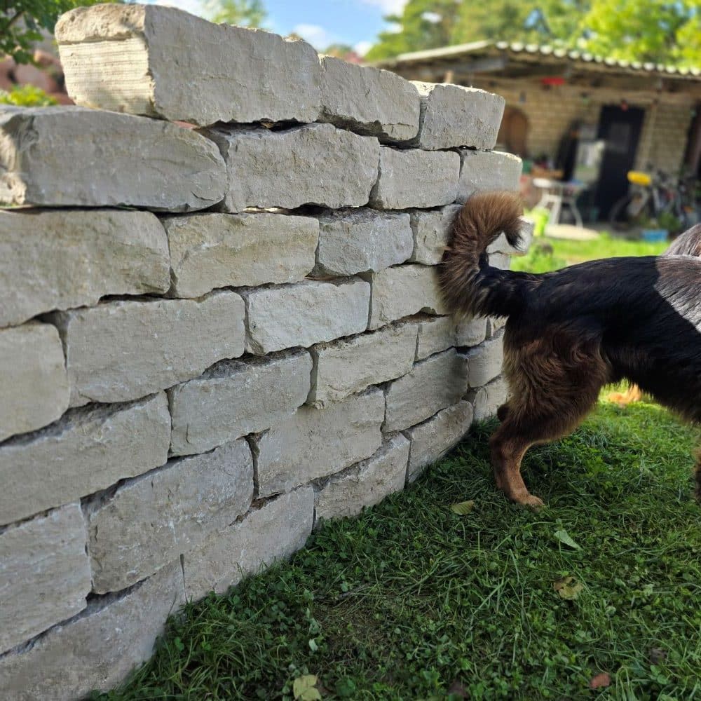 Für den der vor dem Gewicht nicht zurückschreckt geht der Bau einer Mauer erstaunlich einfach: Die Steine werden trocken aufgesetzt, fügen sich harmonisch ineinander, und schon nach kurzer Zeit entsteht ein fertiger Quadratmeter Mauer stabil und natürlich.