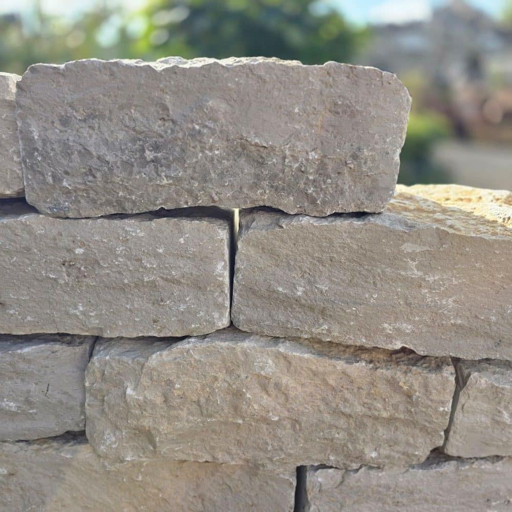 Die gesägten Köpfe erleichtern das Aussuchen der passenden Steine und sorgen für ein Tolles Mauerbild sowie schellen Verbau.