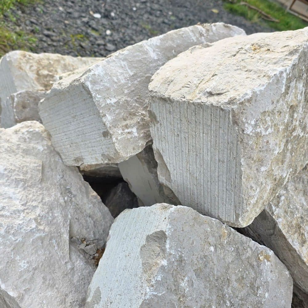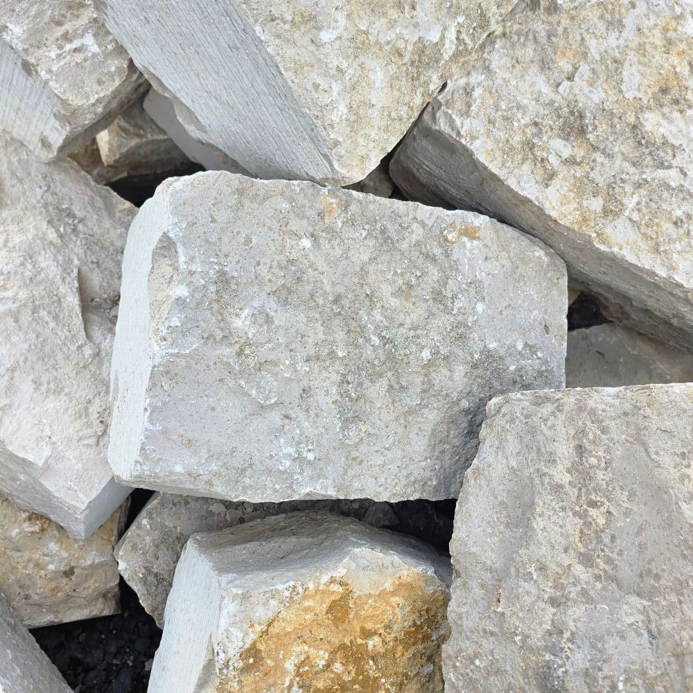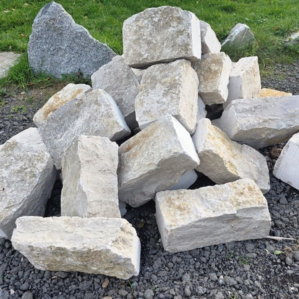 Diese Jura Marmor Mauersteine werden lose abgekippt oder können bei einer Lieferung ab Lager gegen Aufpreis in BigBags gefüllt werden.