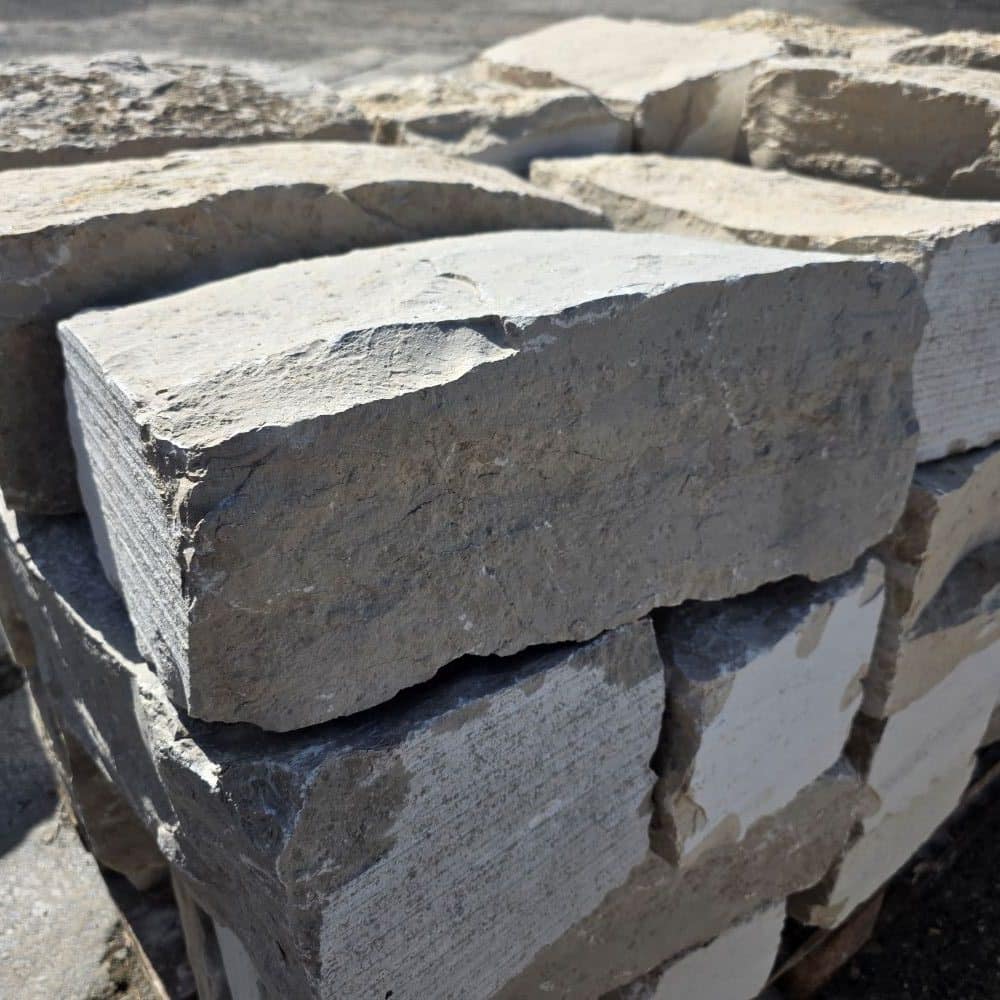 Diese handlichen Mauersteine aus Jura Marmor vereinen natürliche Struktur mit präziser Verarbeitung. Die gespaltenen Sichtseiten verleihen der Mauer eine lebendige, authentische Steinoptik, während die gesägten Köpfe eine exakte und stabile Verlegung ermöglichen, ideal für gerade Abschlüsse und saubere Übergänge.