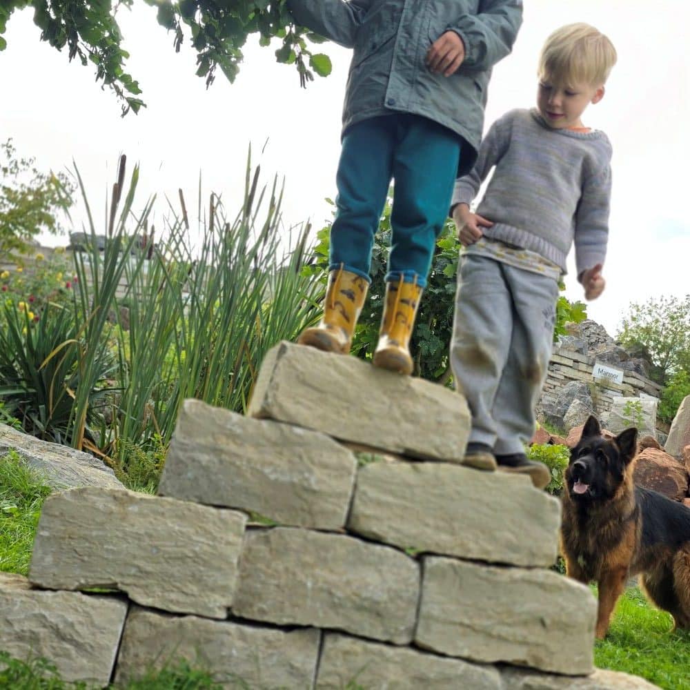 Diese Steine sind wie die kleineren 10 – 15 cm hohen und größeren 20 – 25 cm hohen Trockenmauersteine schnell und einfach zu verarbeiten.