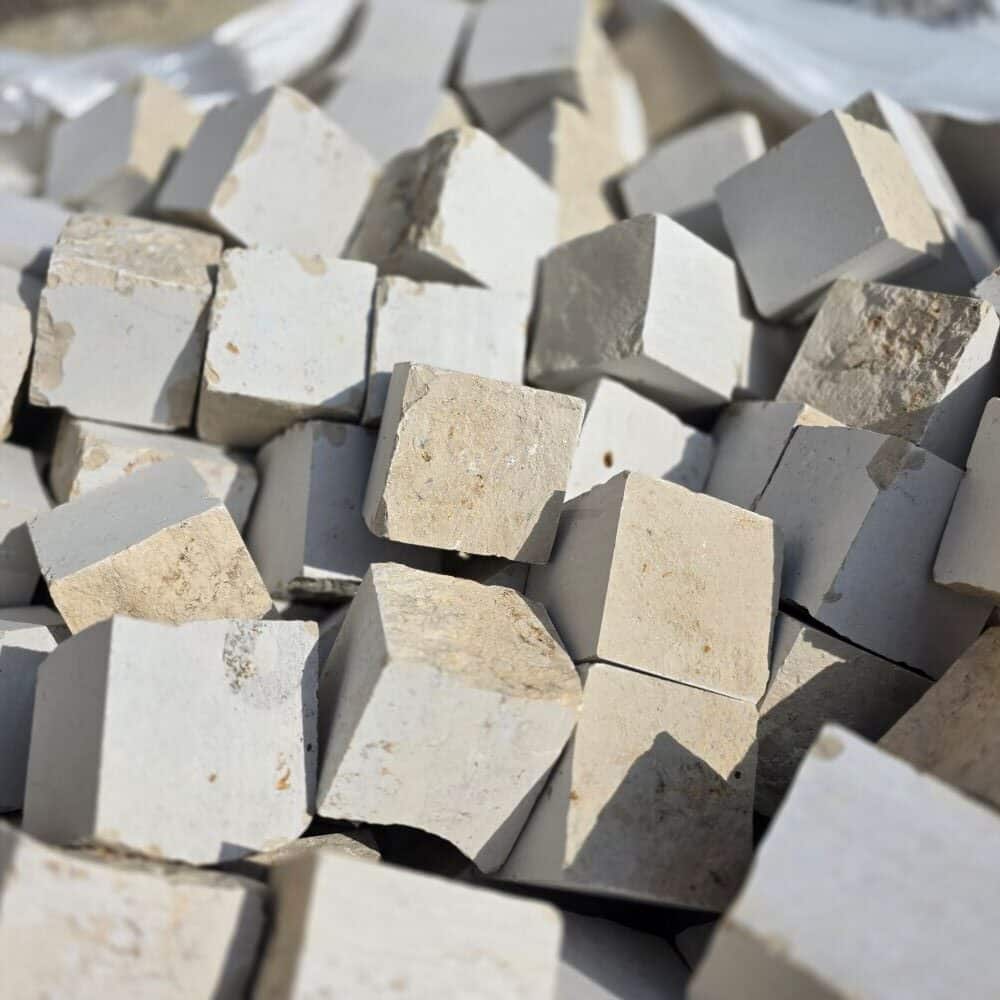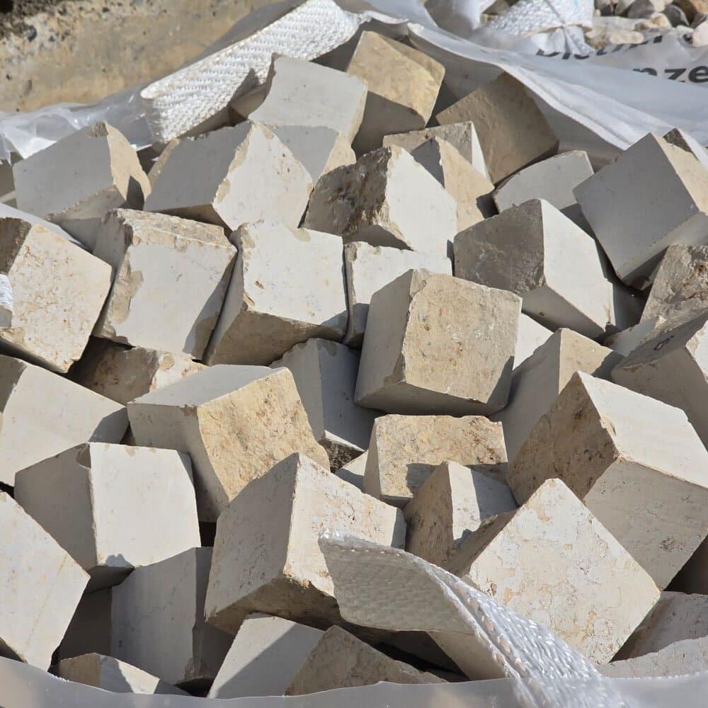 Dieses helle Jura Kalk Pflaster wird lose oder im Big Bag geliefert.