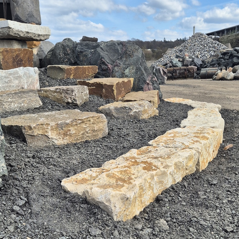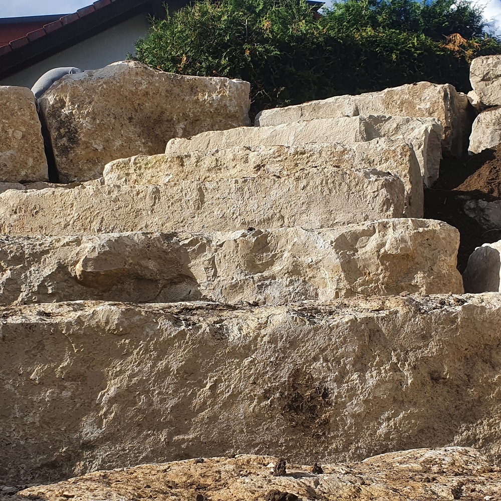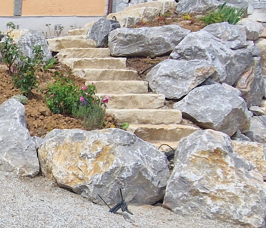 Andere Gesteinsarten haben wir ebenso auf Lager wie Muschelkalk, Sandstein oder Granit. Wir bieten auch eine rustikale Variante der Jura-Stufen an. Die unterschiedliche Formgebung sorgt für einen besonderen Charme der Treppenanlage. Diese Art der Natursteinstufen setzen sich natürlich zusammen und geben jeder Außenanlage ein ganz besonderes Bild.