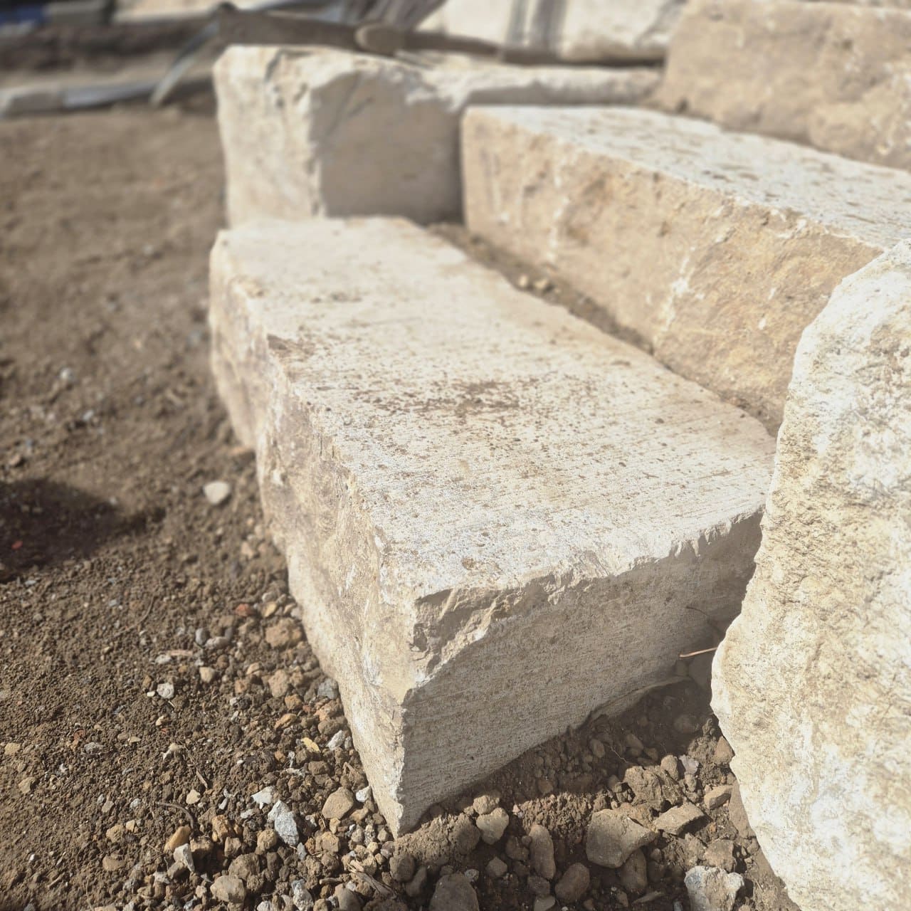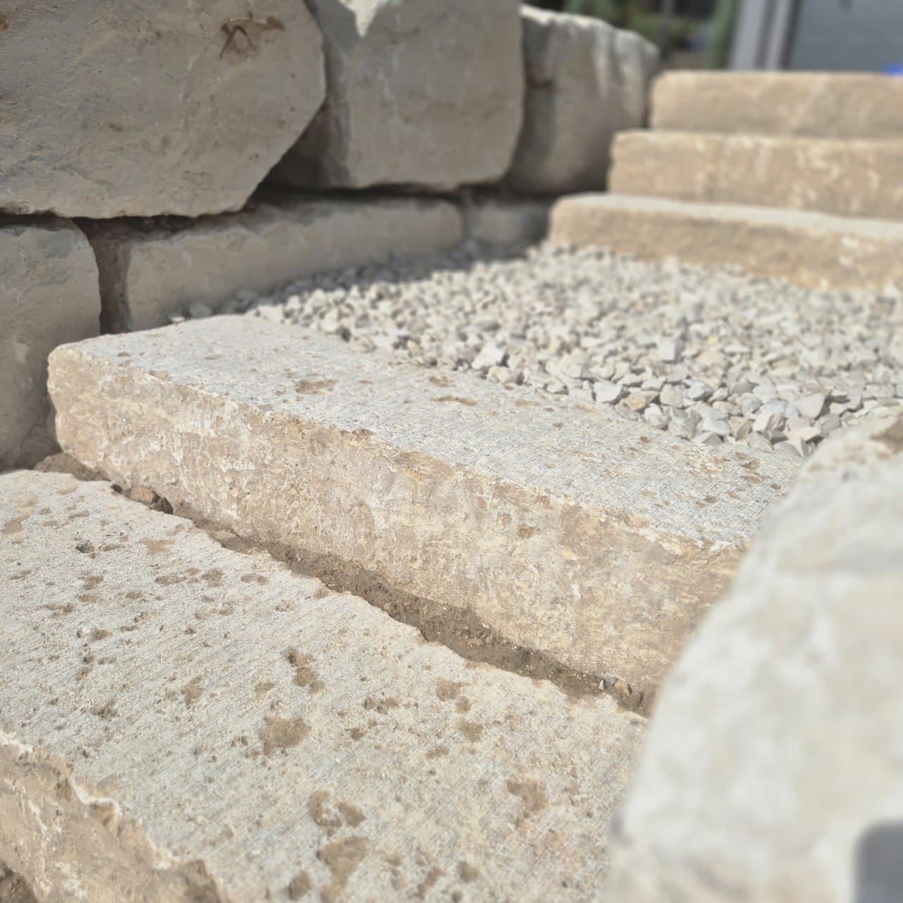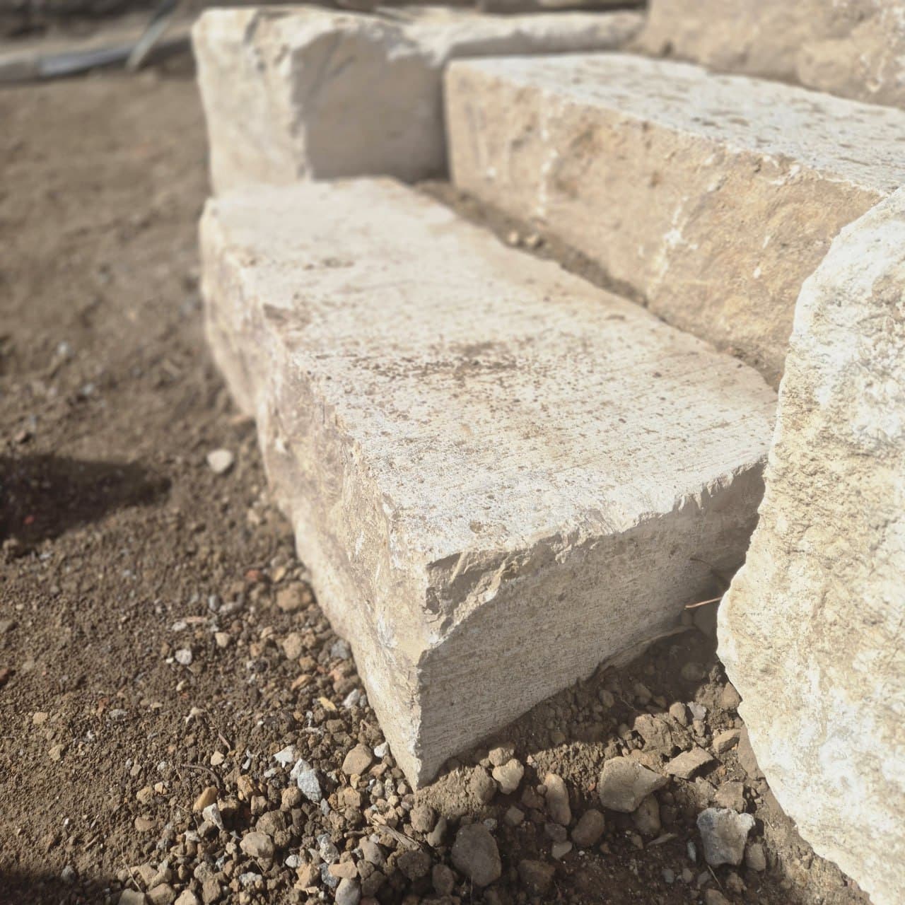 Diese günstige Natursteinstufe muss hintereinander in den Boden eingelassen werden um auf die Gewünschte Tritthöhe zu kommen.