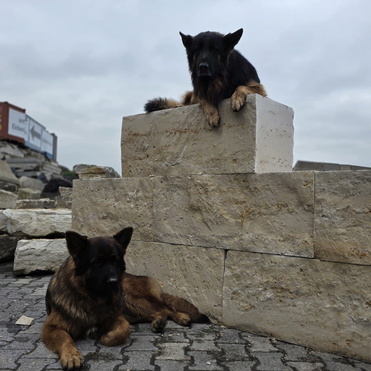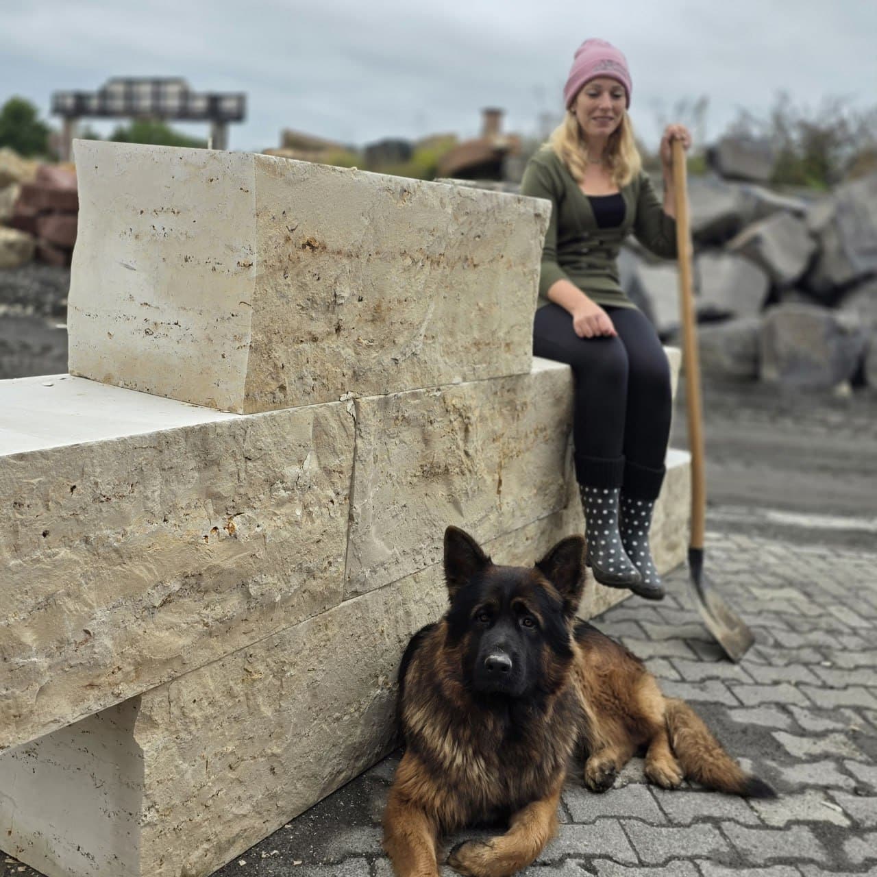 Diese Naturstein Quadersteine werden auf Paletten geliefert.