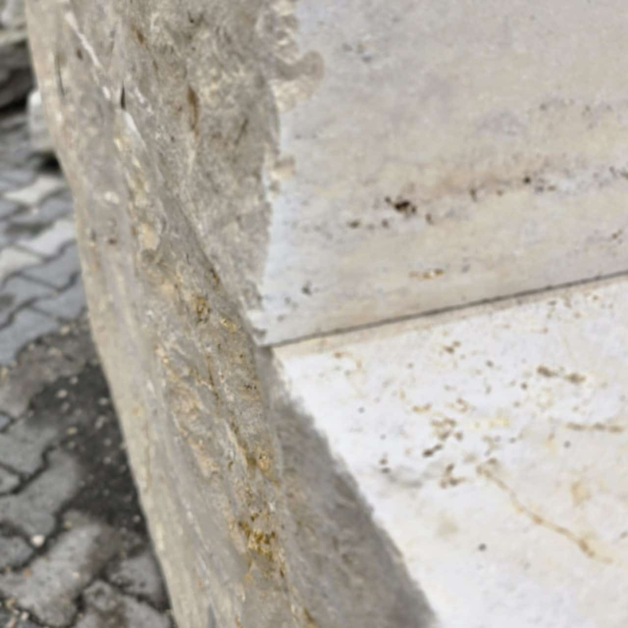 Diese beige- weißen Steinquader, mit vereinzelt grauen Farbeinschlüssen sind aus einem fossilem Kalkstein und sehr widerstandsfähig. Ihre natürliche Schönheit verhilft jedem Außenprojekt zum Strahlen. Gerade die helle Farbgebung eignet sich hervorragend, um dunklere Ecken ein wenig aufzuhellen. Auch ergänzt das Gestein ausgezeichnet einen mediterranen Stil, kann aber durch die klaren Kanten genauso gut eine moderne Baurichtung unterstreichen.