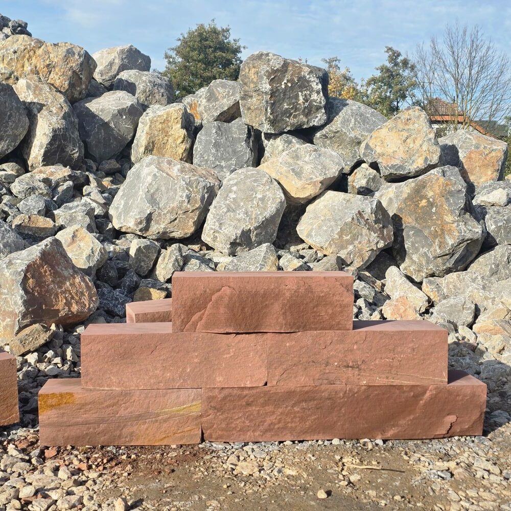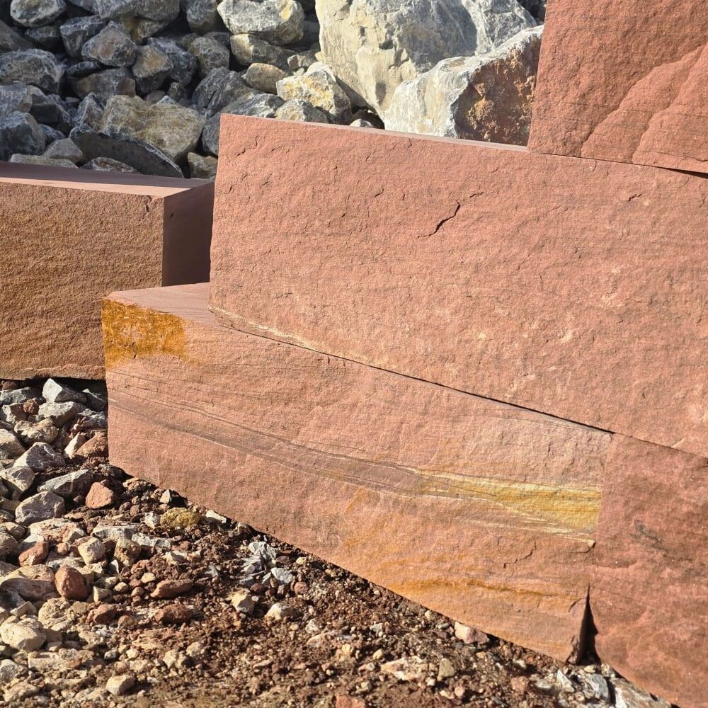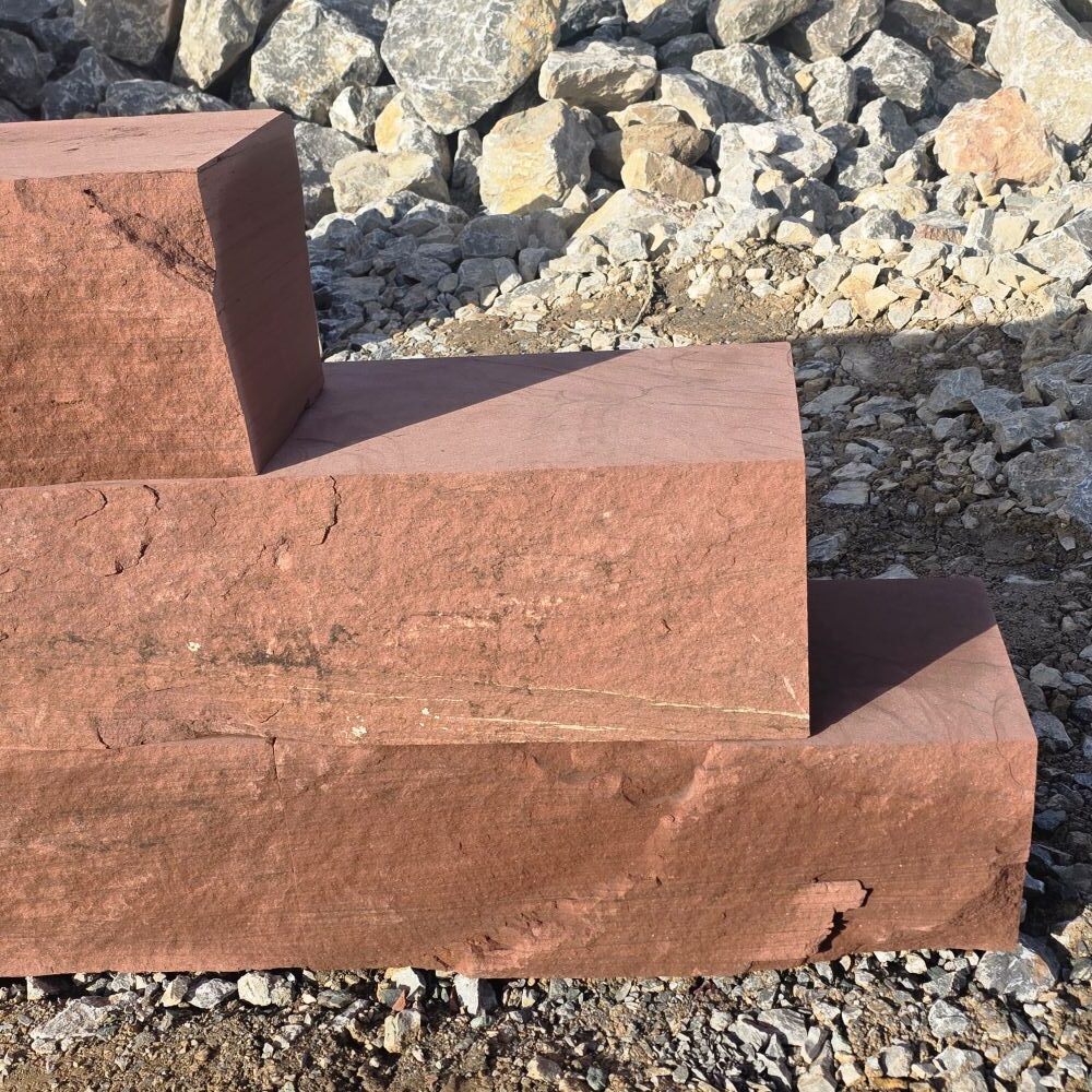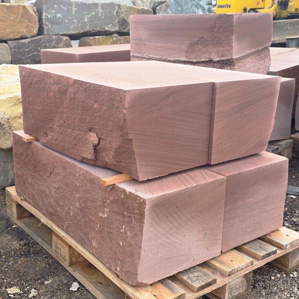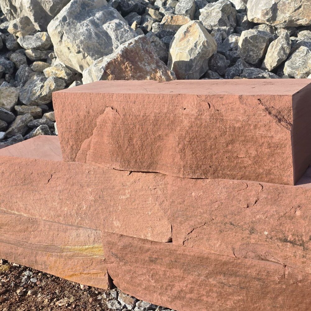 Der rote Mainsandstein Quader ist ein lokales Naturprodukt mit warmen Farben und natürlicher Ausstrahlung.