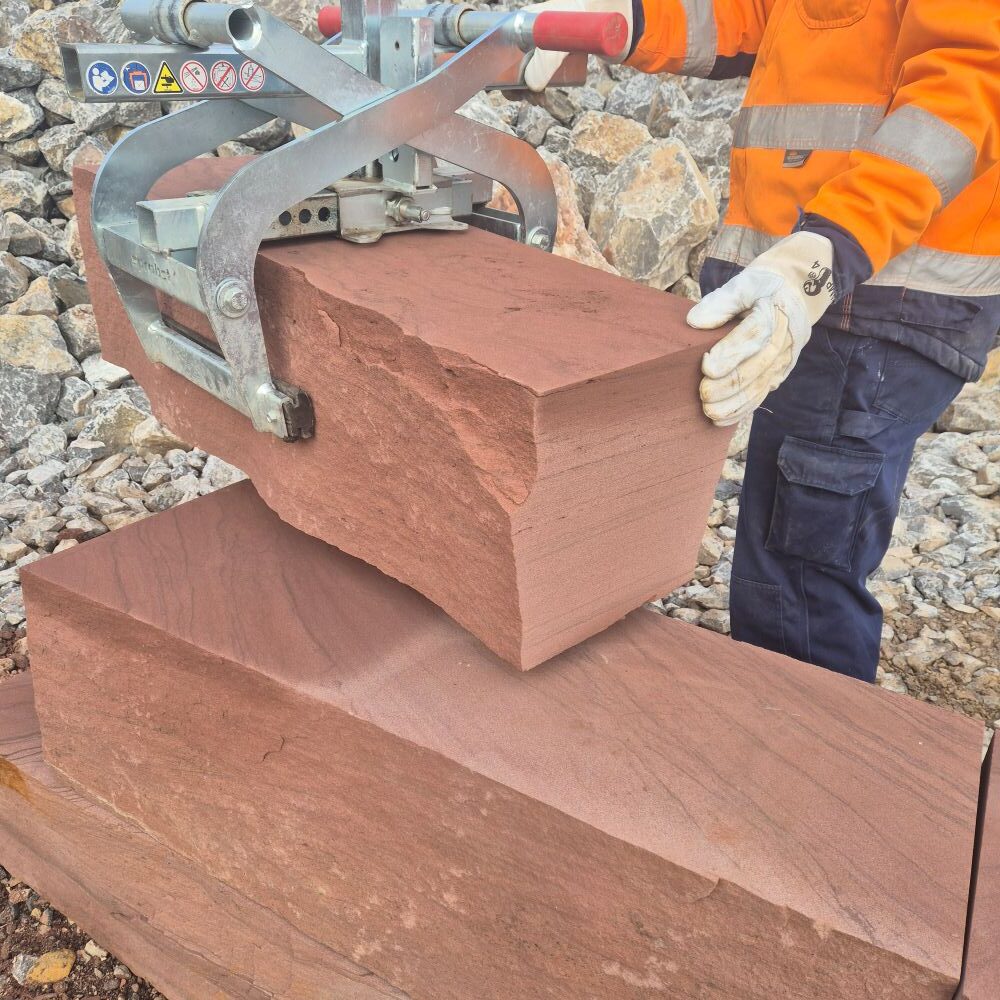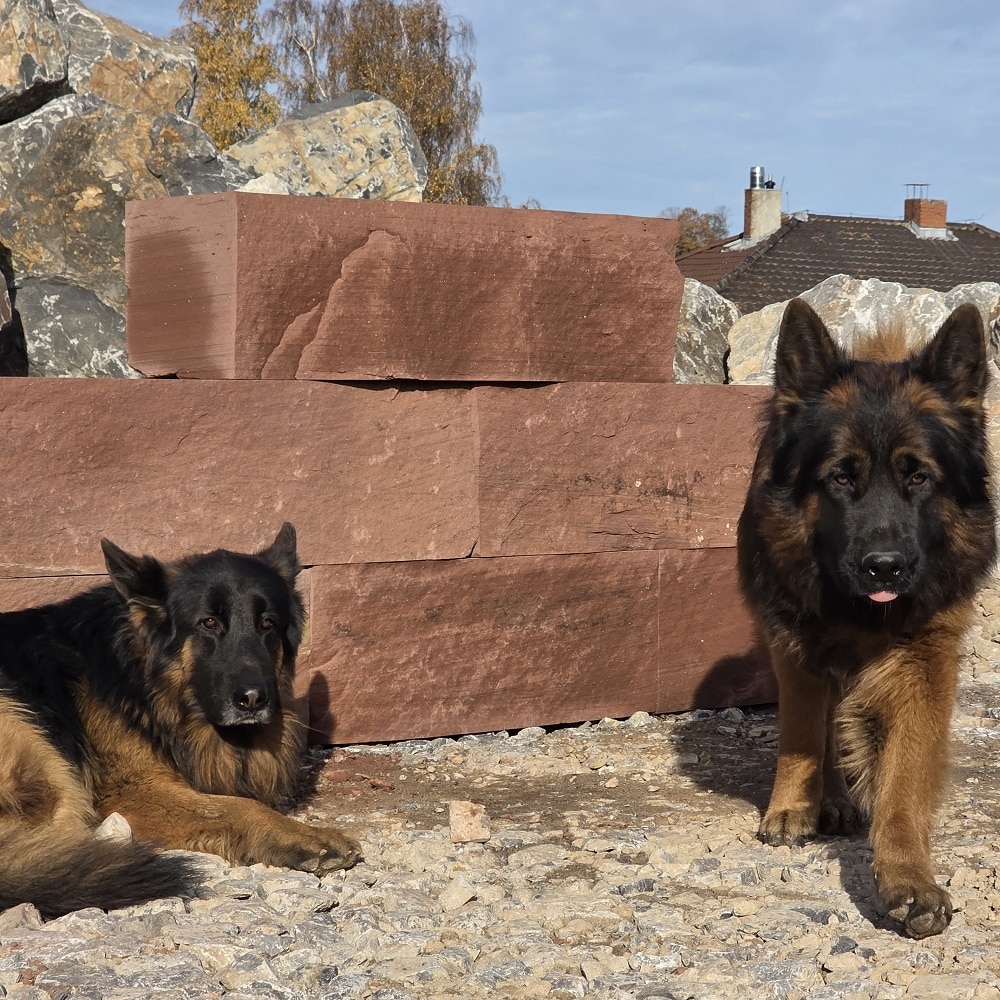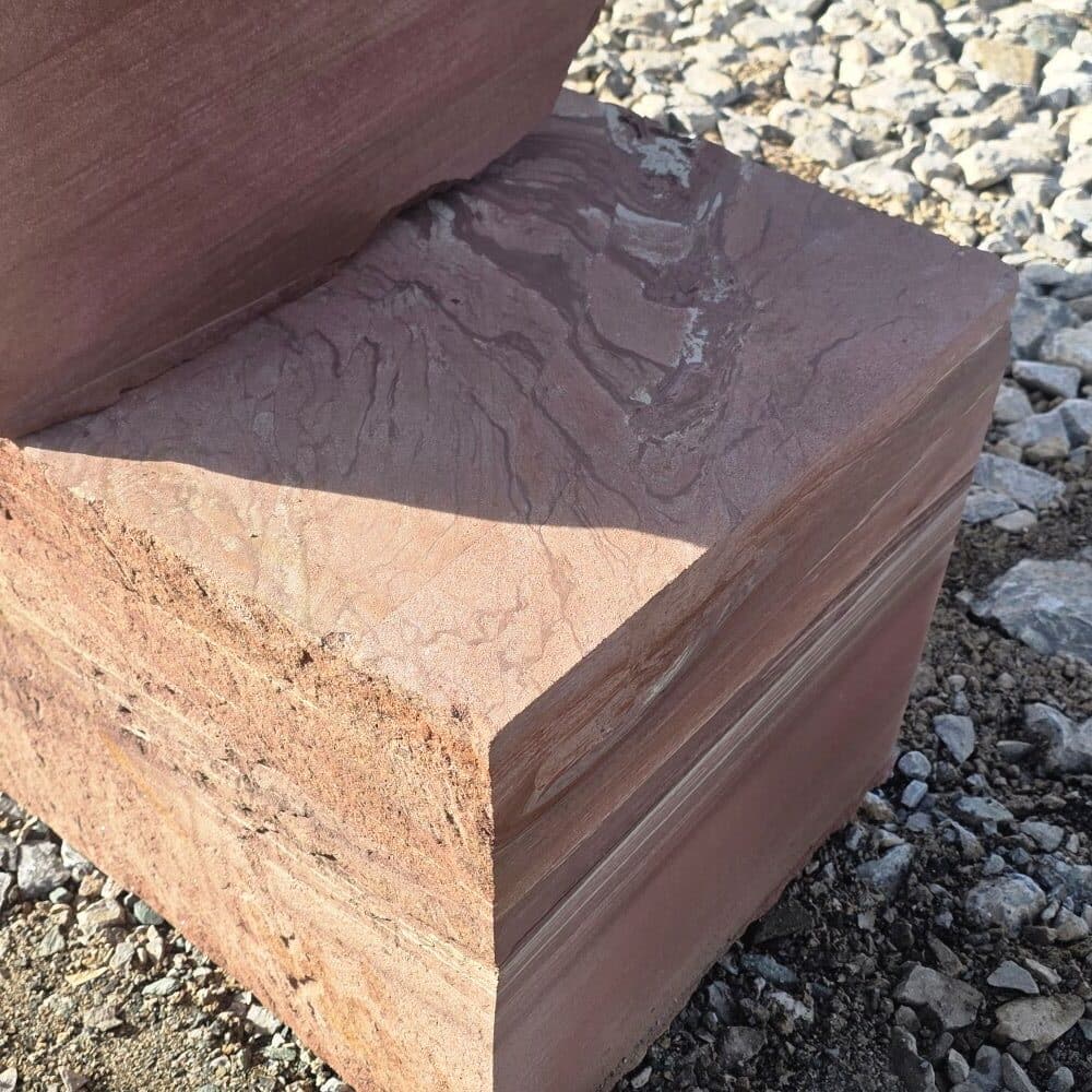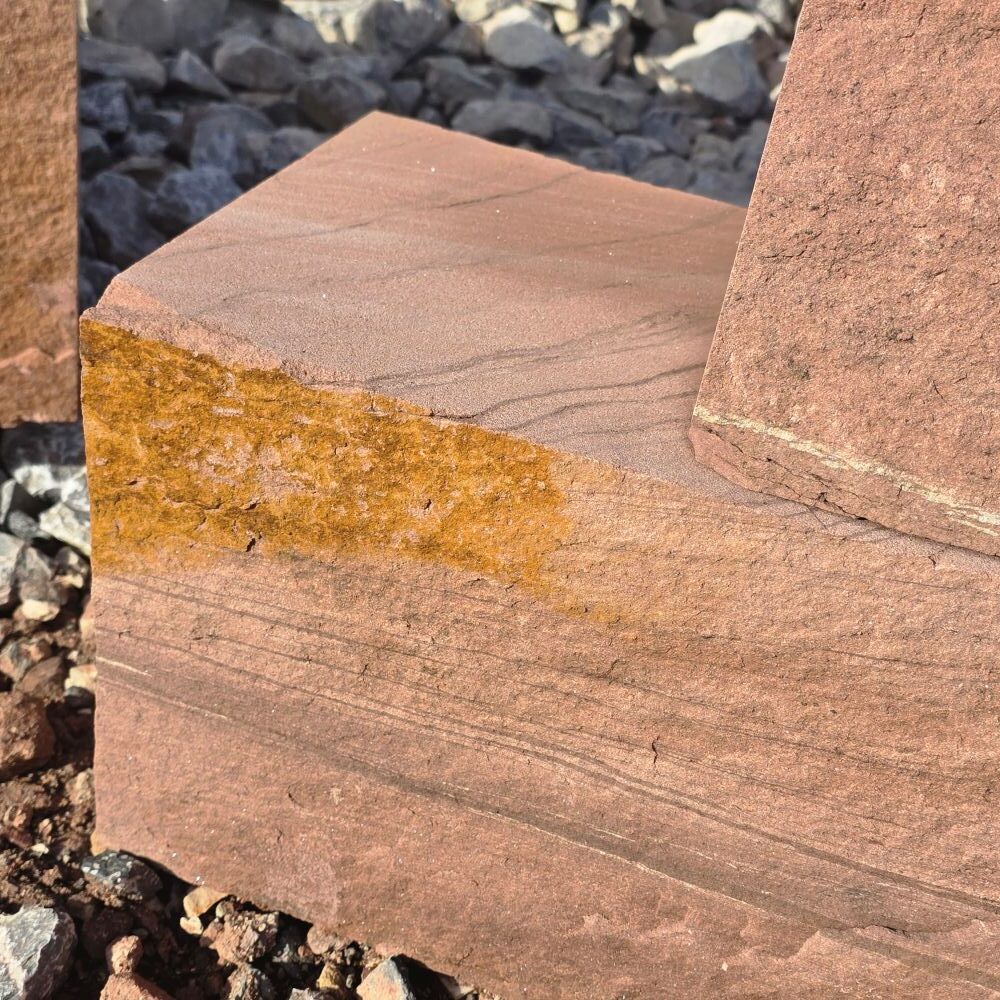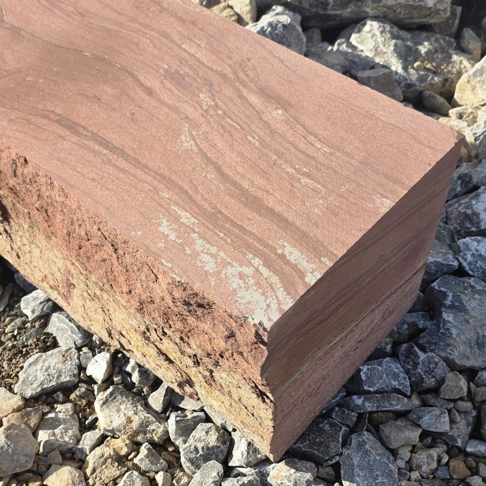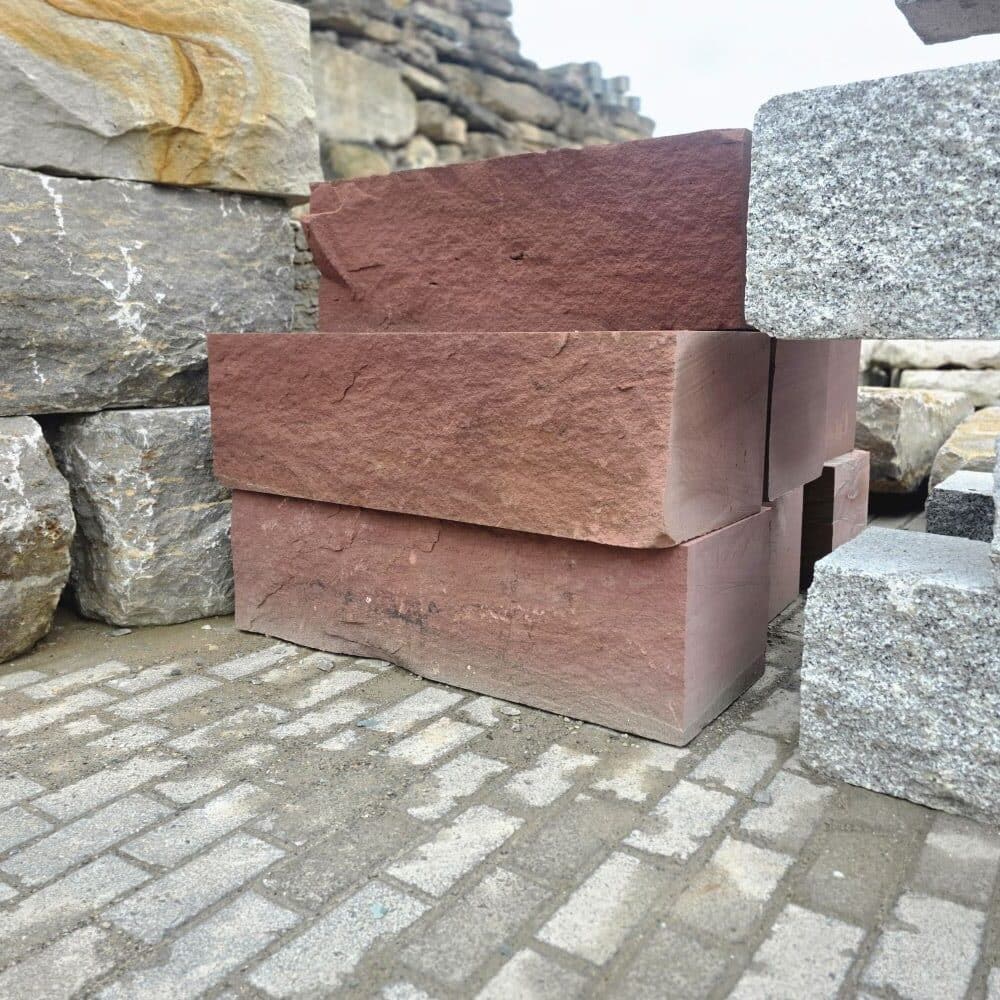 Der rote Mainsandstein Quader ist ein lokales Naturprodukt mit warmen Farben und natürlicher Ausstrahlung.
