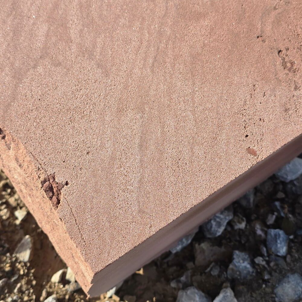 Der charakteristische Rotton des regional gewonnenen Natursteins zeigt je nach Lichteinfall warme bis kräftige Nuancen und verleiht jeder Anlage eine natürliche, wertige und zugleich zeitlose Wirkung. Dadurch eignet sich dieser Quader sowohl für klassische als auch für moderne Gestaltungen.